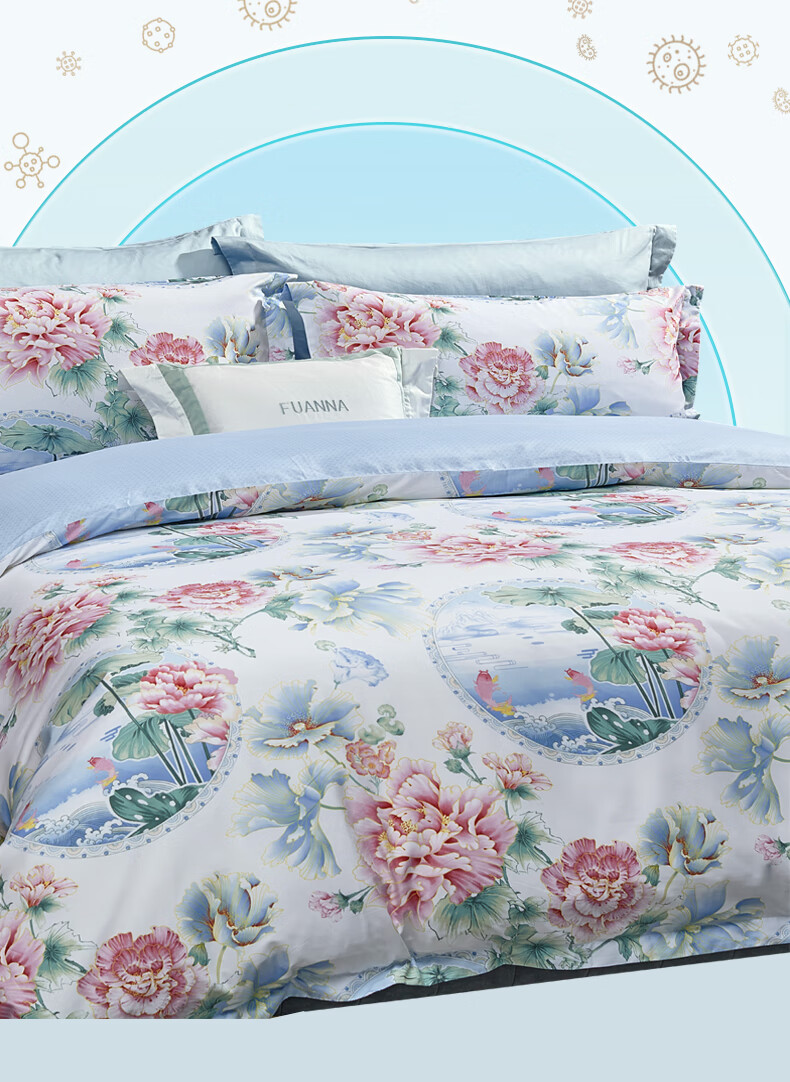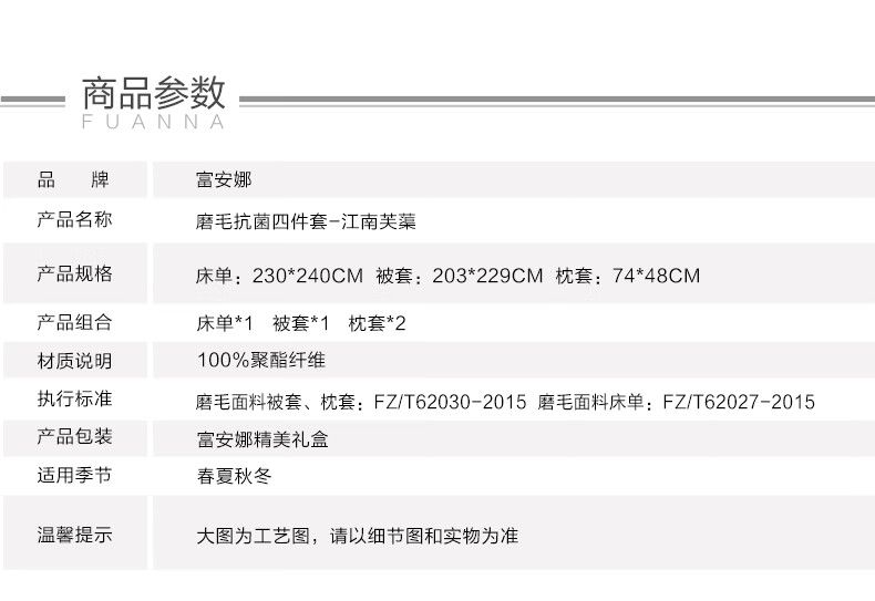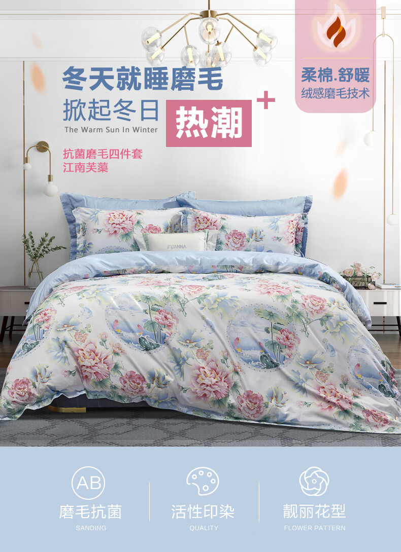 【2.0*2.2】富安娜磨毛四件套-江南芙蕖XHR