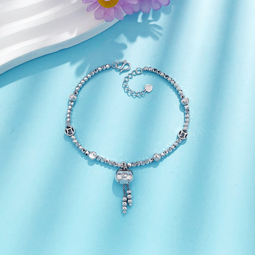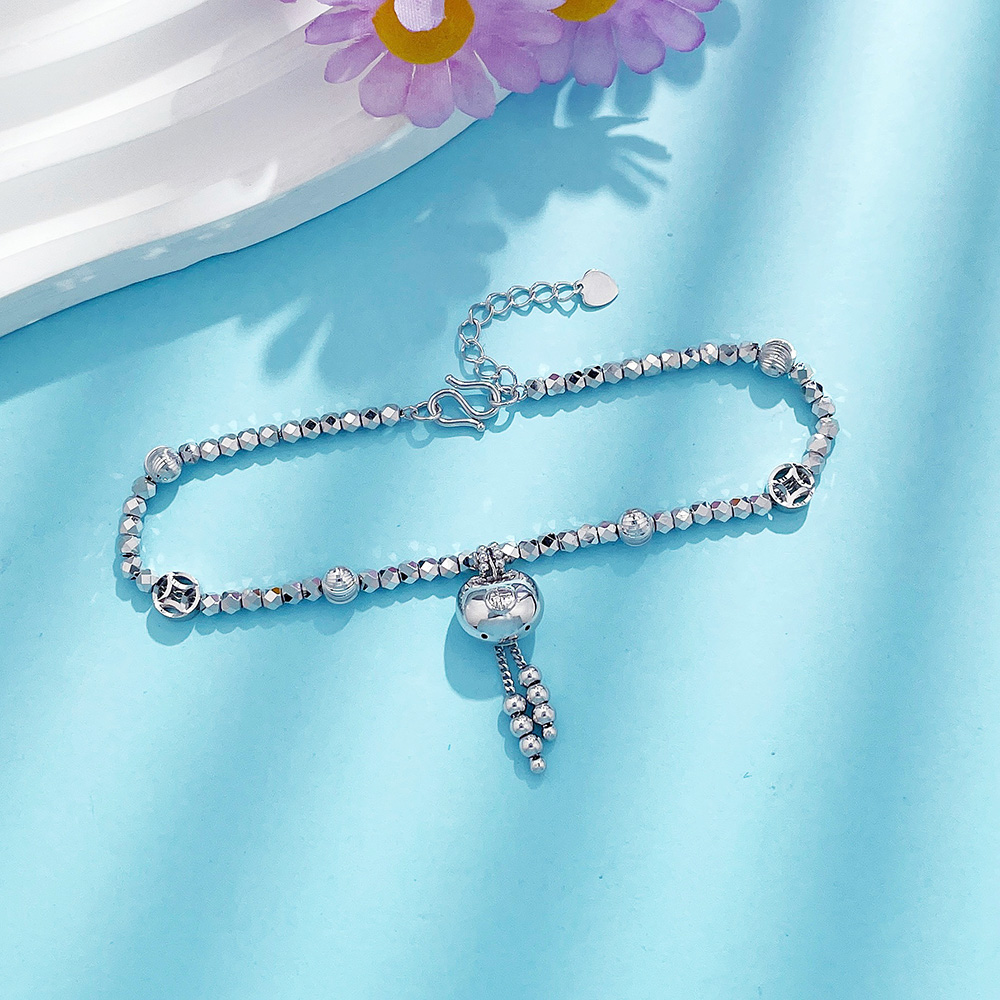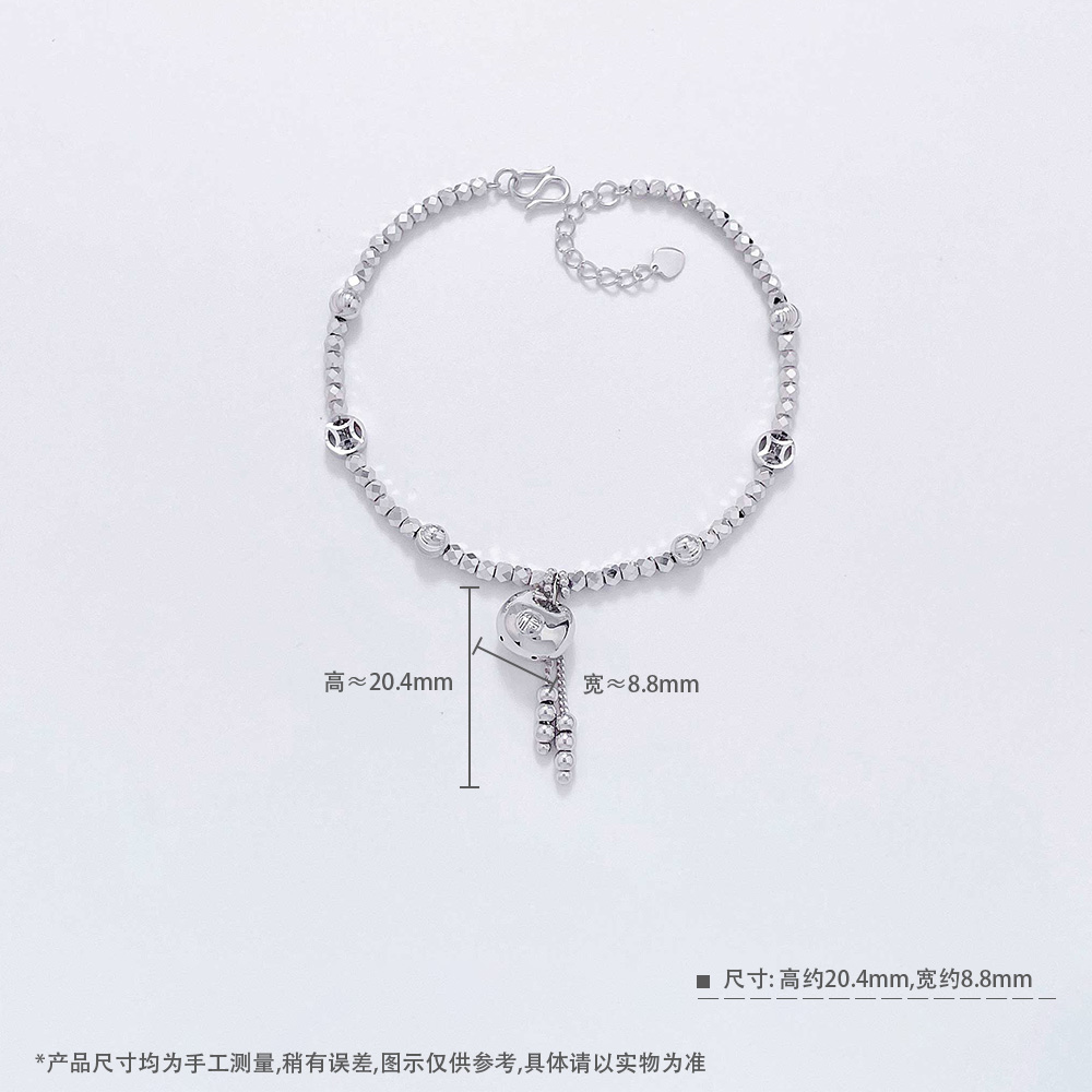 【限时8.8折】【线上铂金馆】PT950 #小胖福 #招财纳福 铂金空心调节胖福吊饰间金币蹦迪珠手链(内里为铂金链)(PTSL00034)预售产品下单后不退款不退货不换货不补差价)
