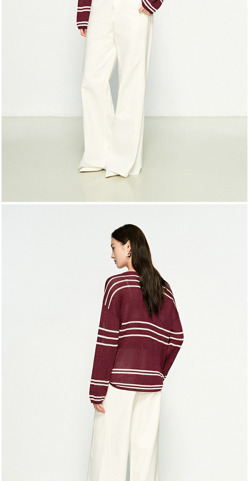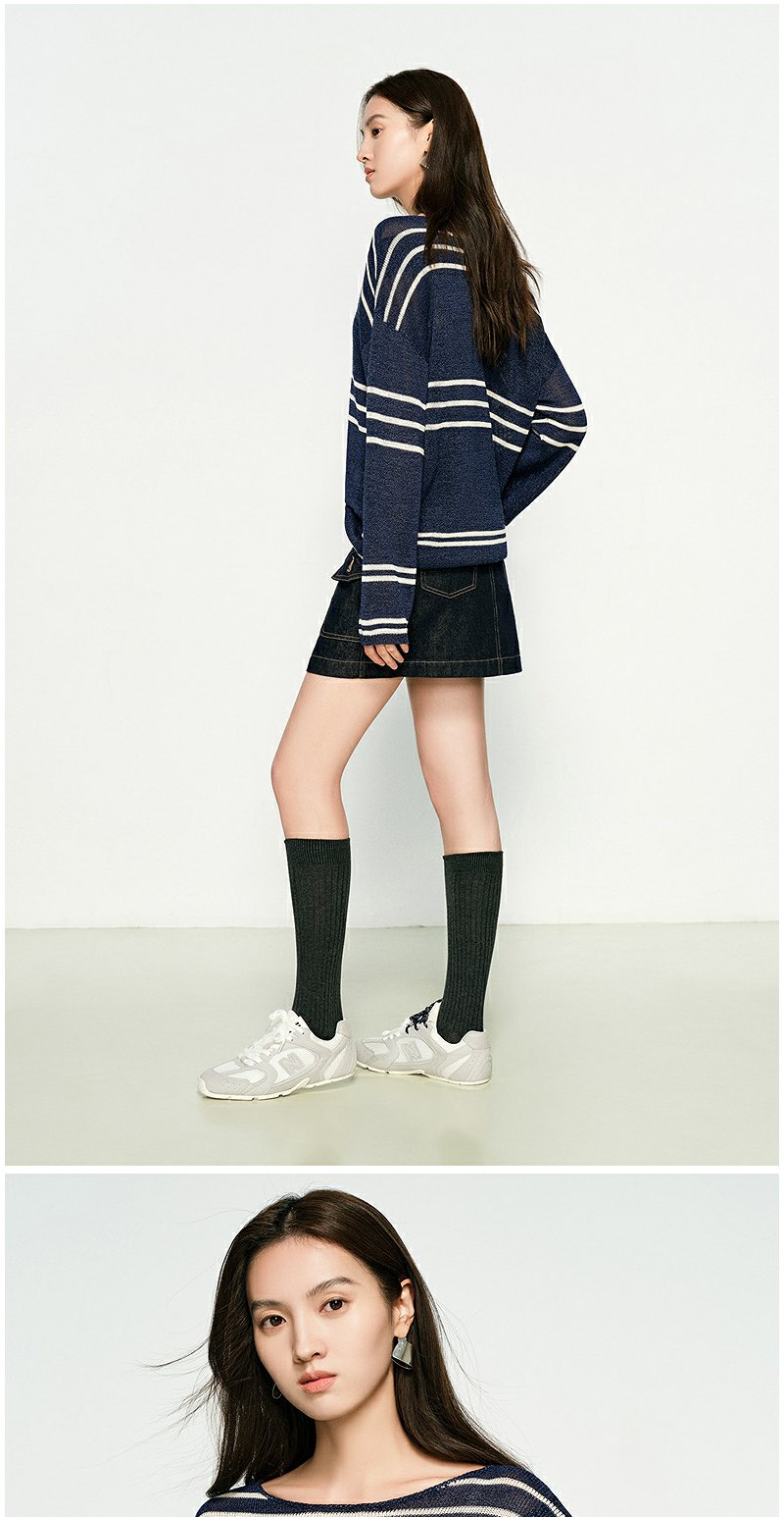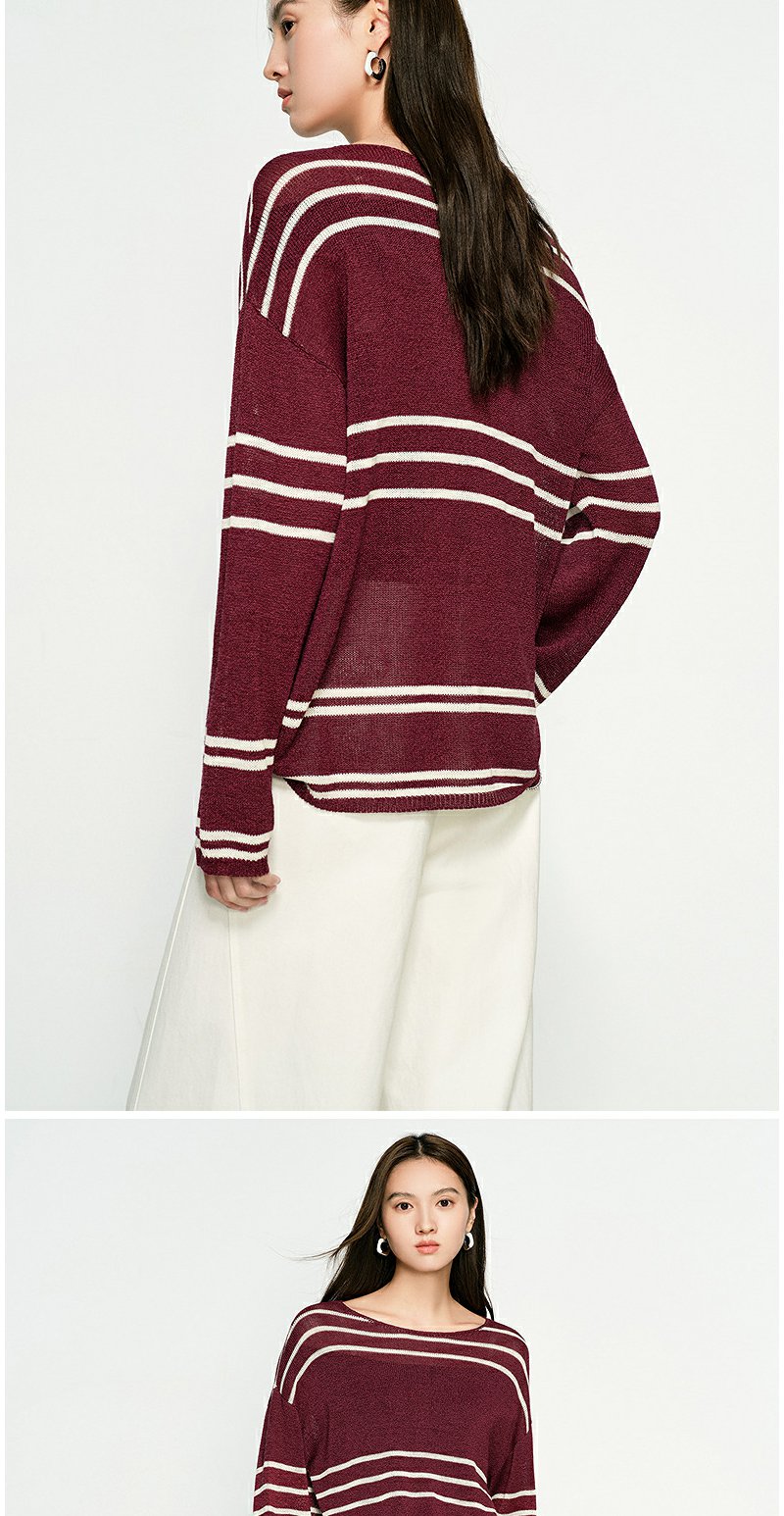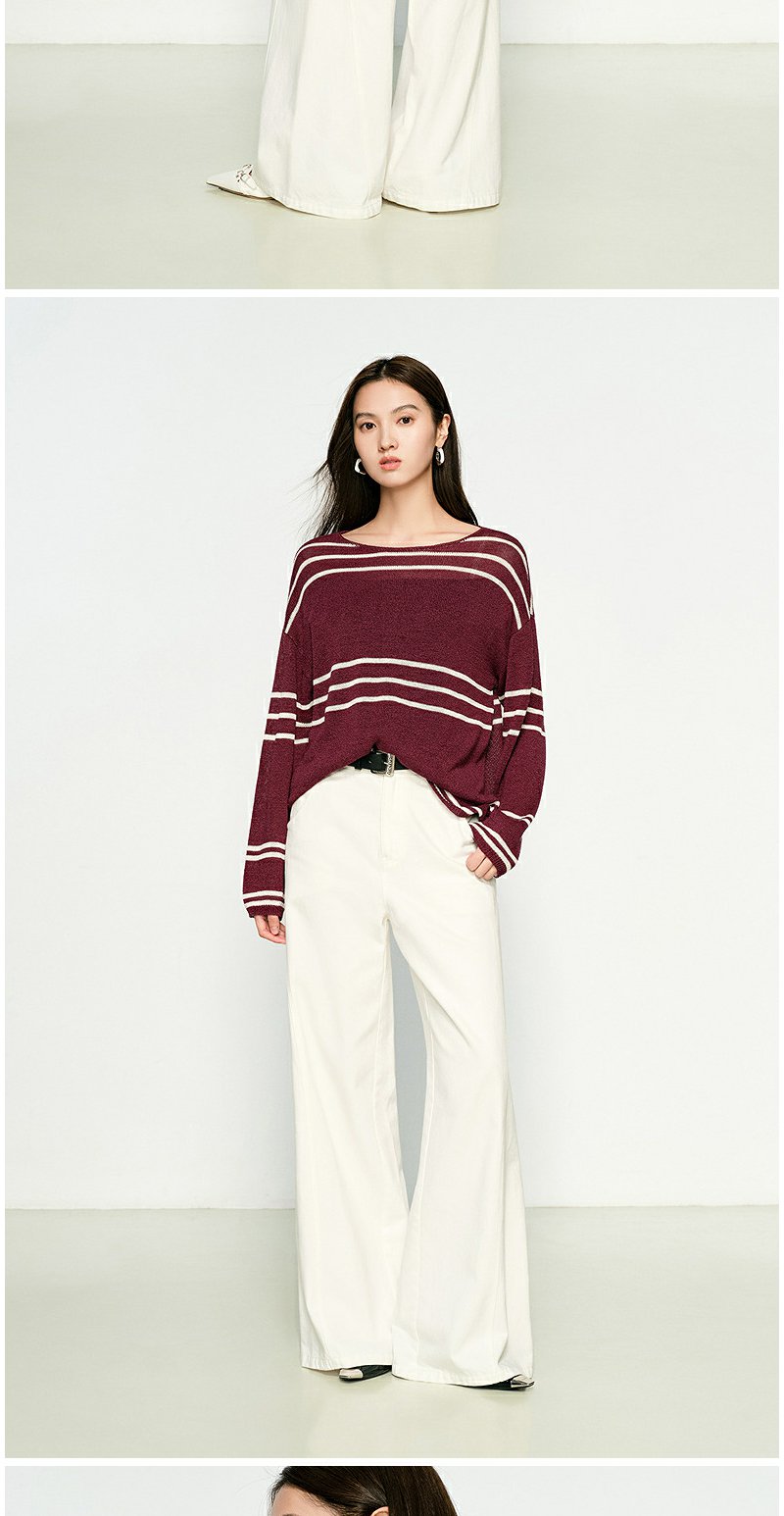 NEELLY纳俪商场同款春季新款条纹一字肩针织衫女圆领显白修身毛衣N25074A04558