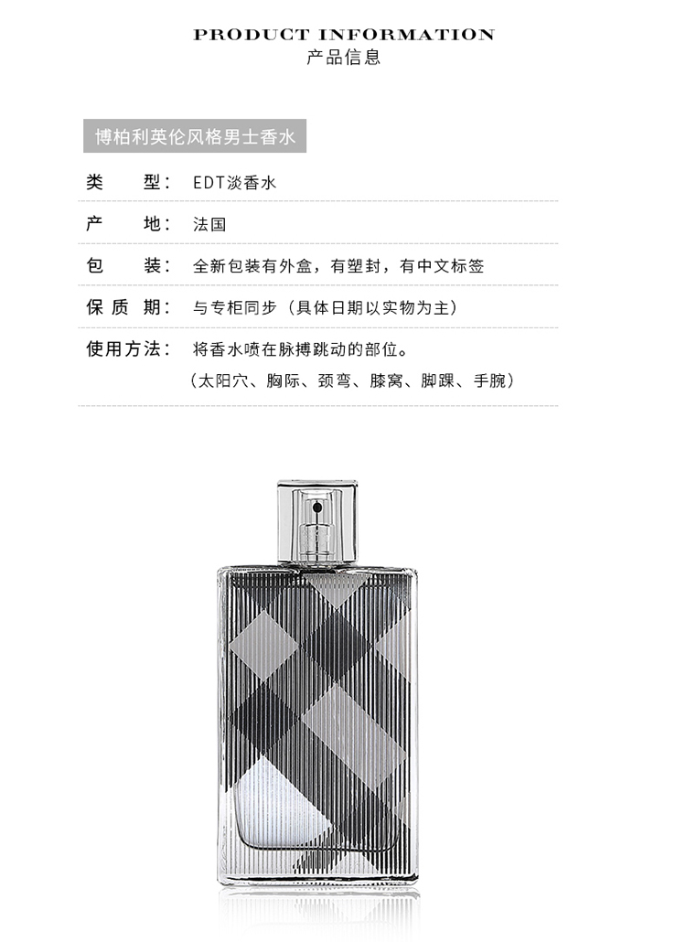 BURBERRY/博柏利英伦风格男士淡香水持久木质香调