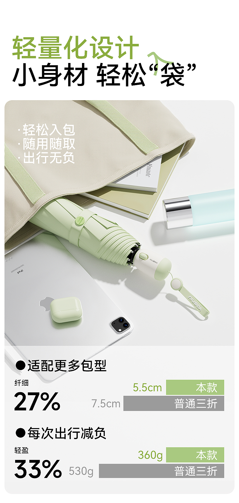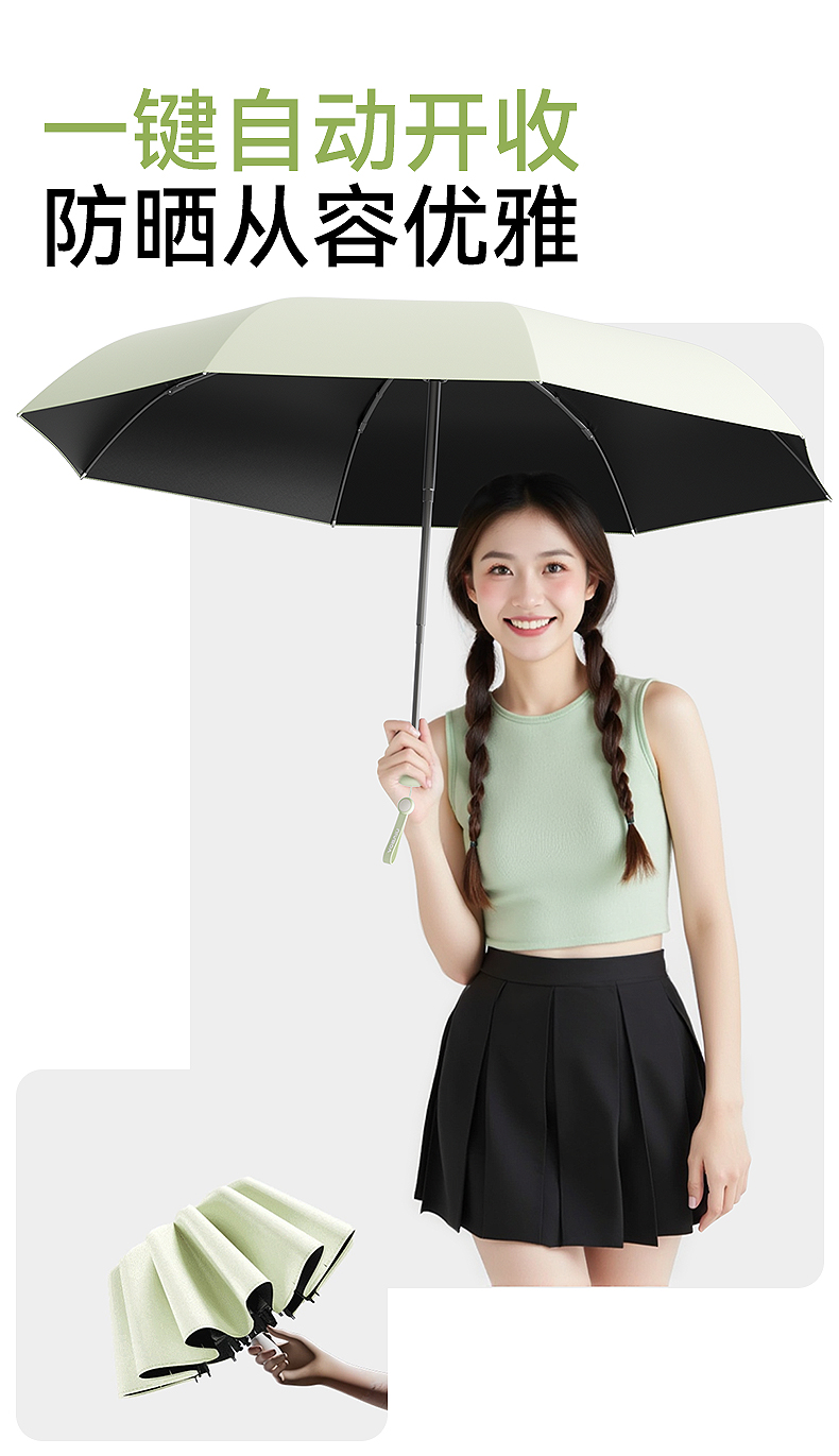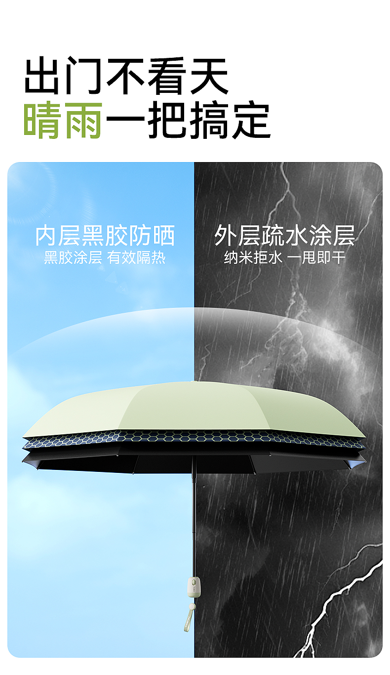 左都 防晒伞蛋仔撞色三折节节收 8K黑胶(21寸)ZD2565
