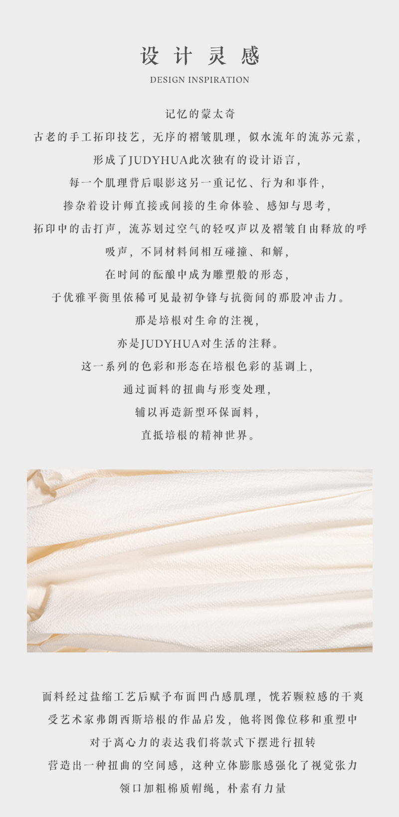 以极简建筑风格,诠释对生活美学之独特理解,JUDYHUA以作品触动您心。更多新款上架,请亲临JUDYHUA STUDIO试穿选购。预约电话:021-62663449,18201881913