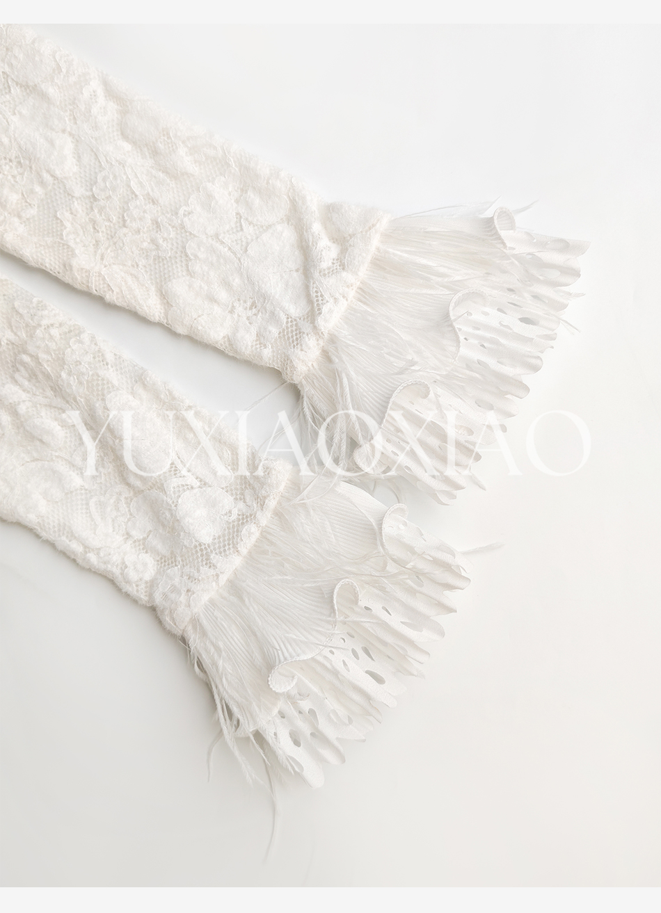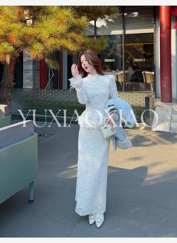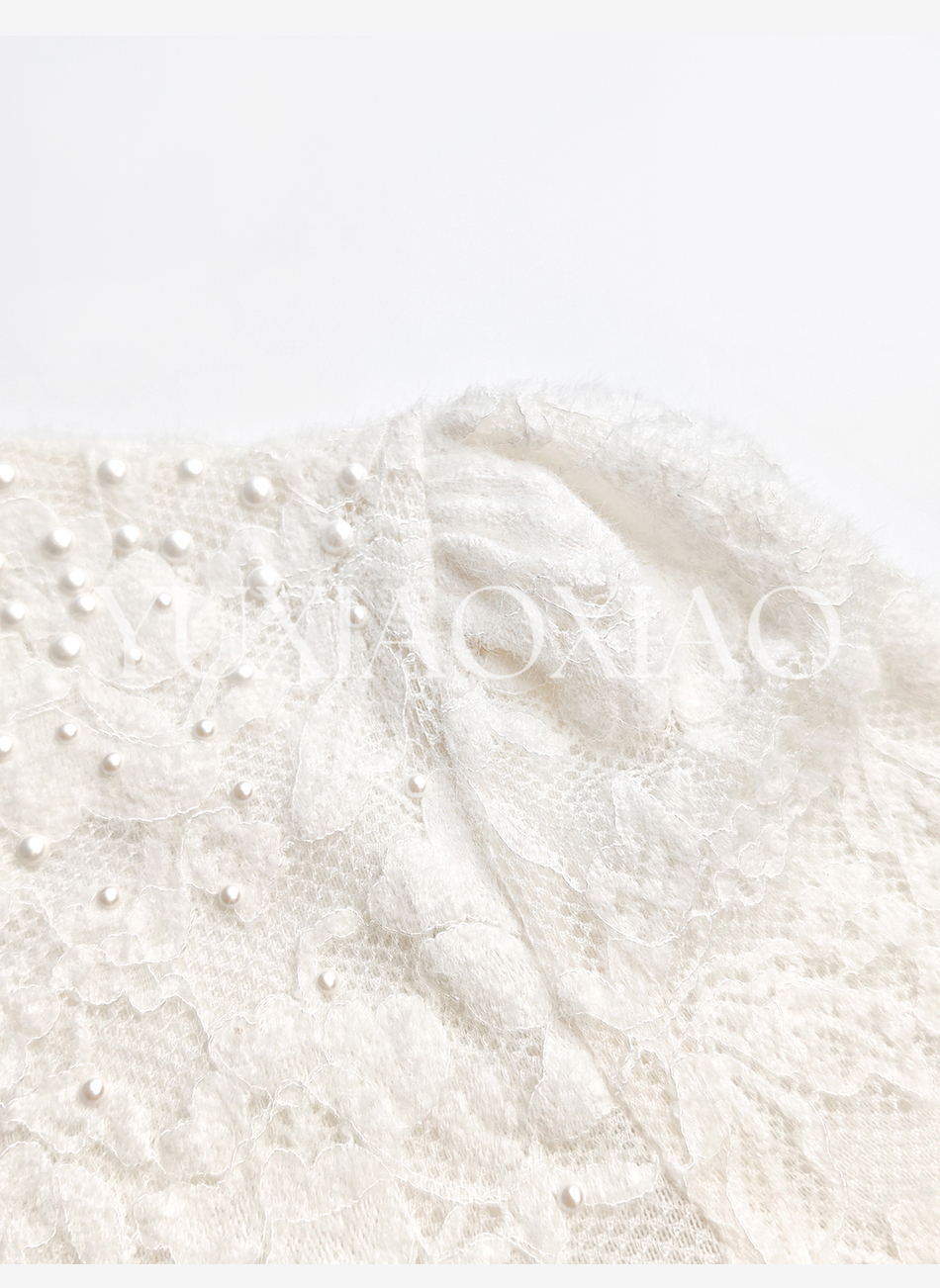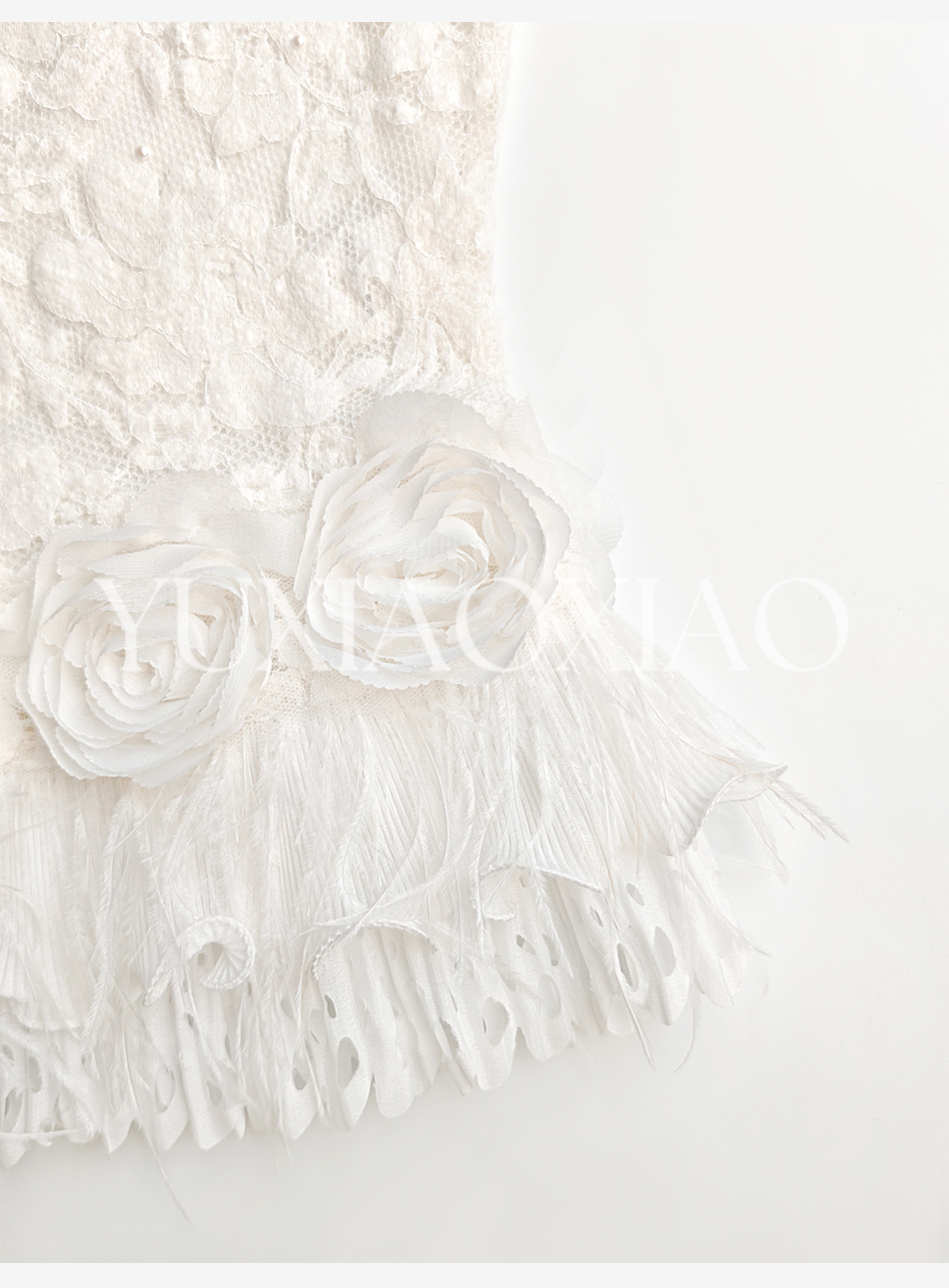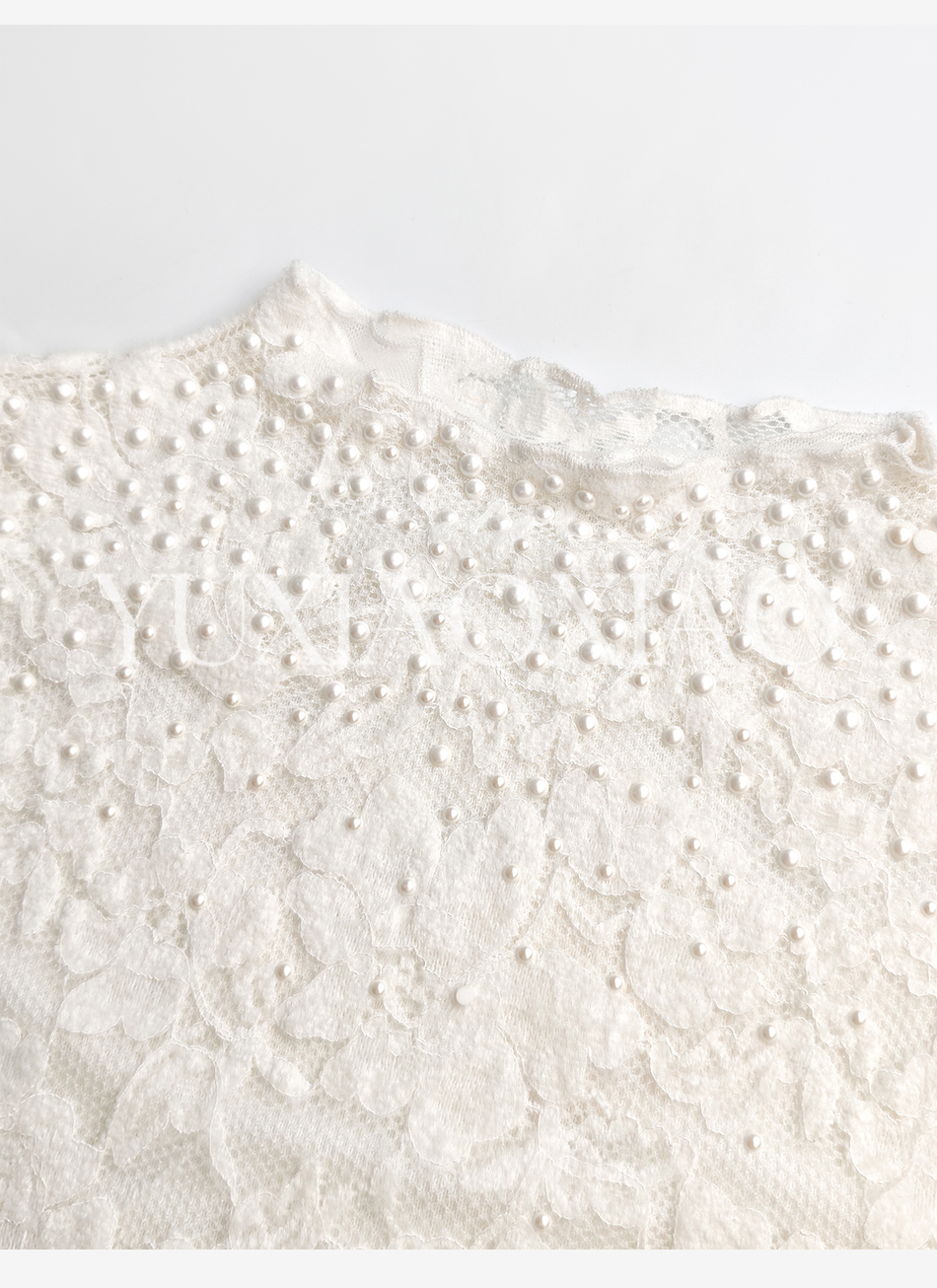 余潇潇【玫瑰纯恋】法式浪漫蕾丝陶瓷烫钻立体花朵修身上衣&长半裙