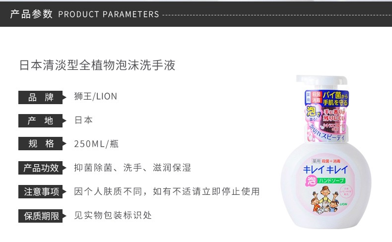 日本狮王lion全植物泡沫洗手液清淡型250ML 全植物泡沫洗手液果香型250ML