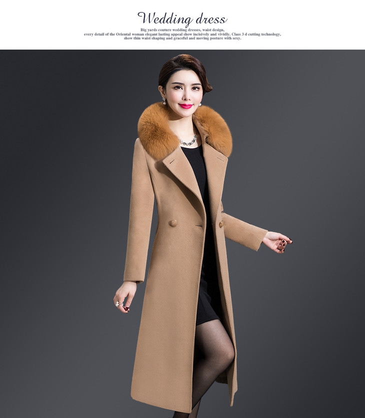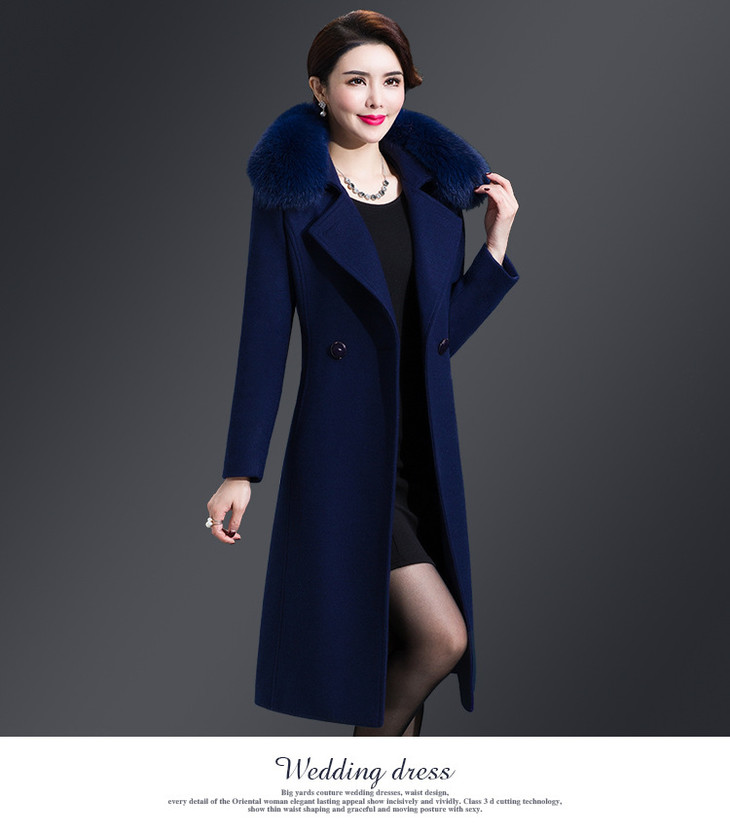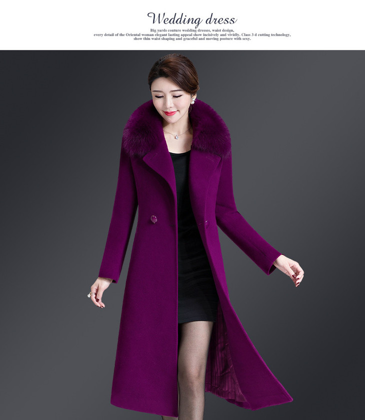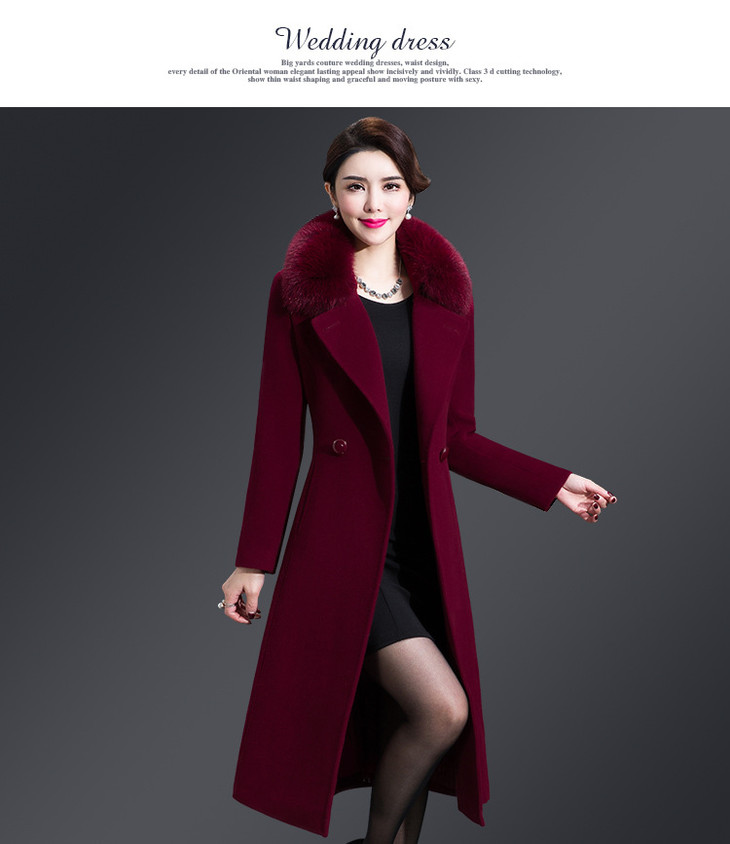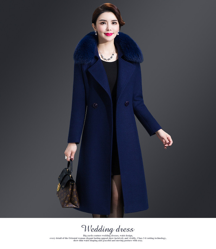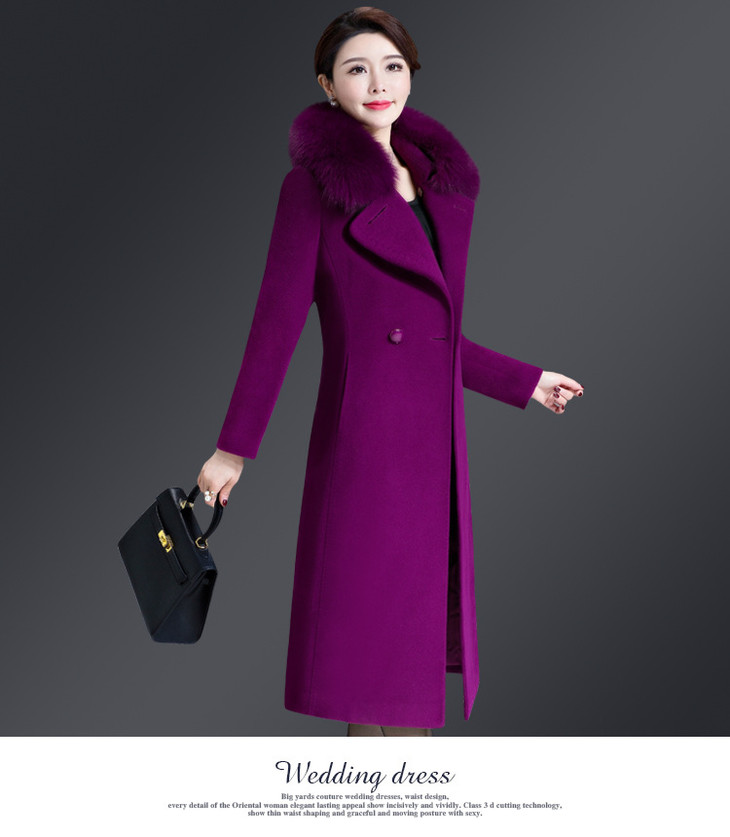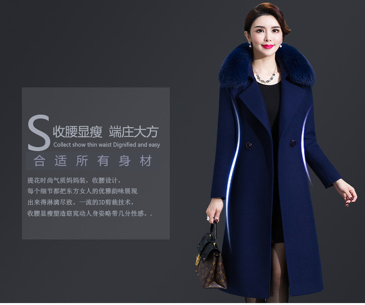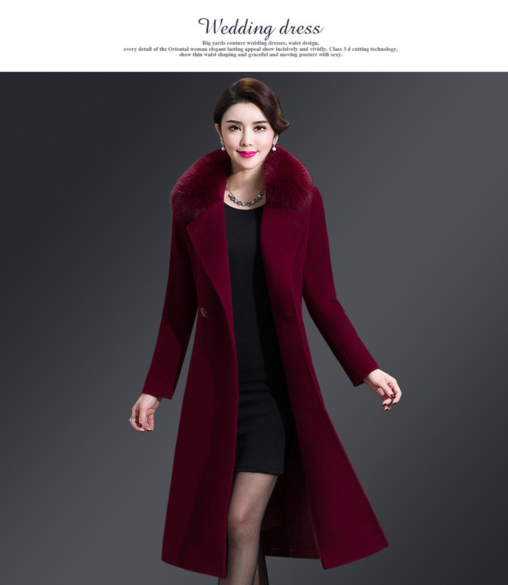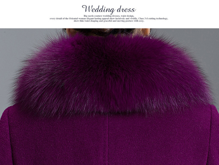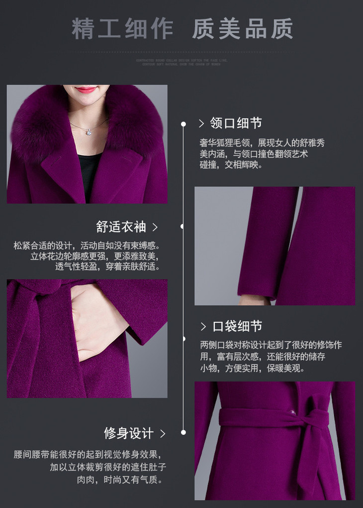 韩版修身,大毛领中长款羊毛呢外套YMR-8155