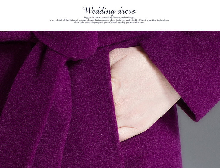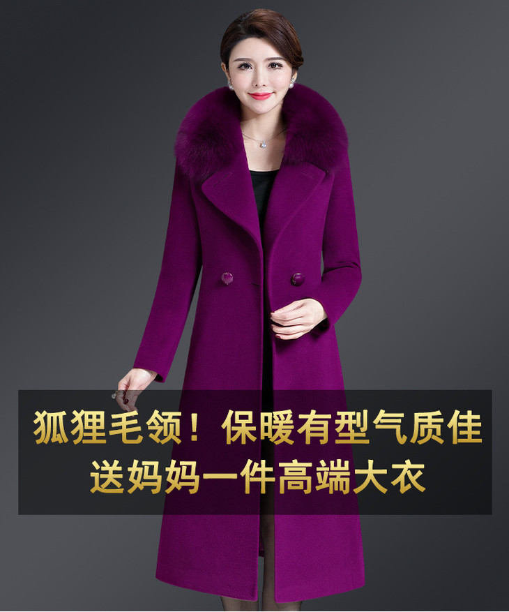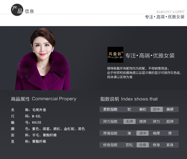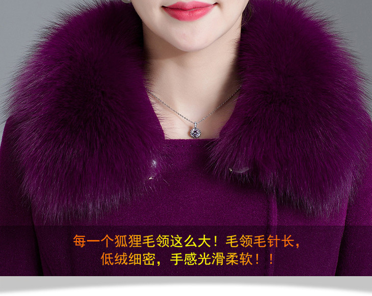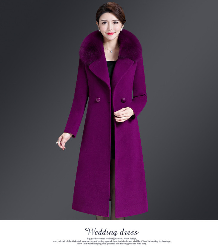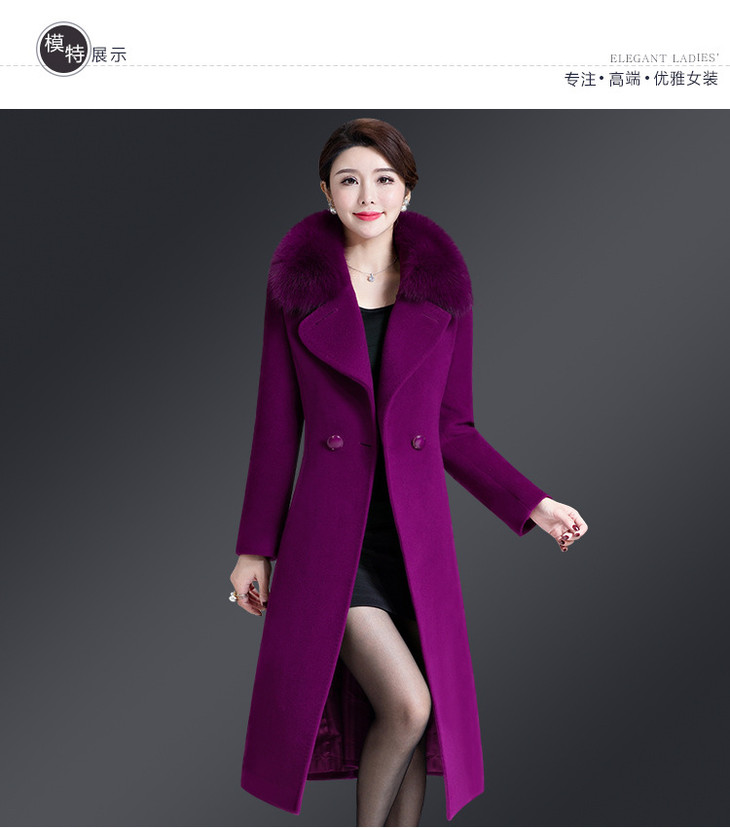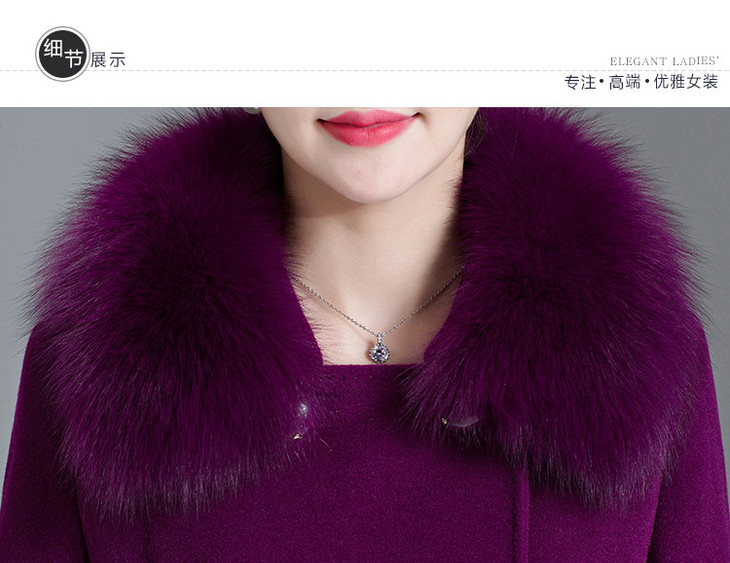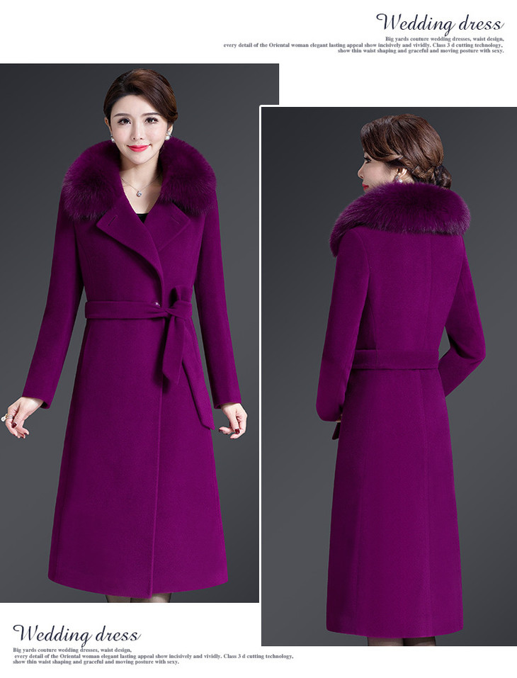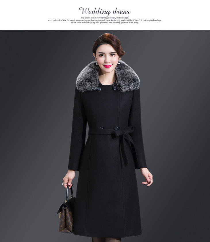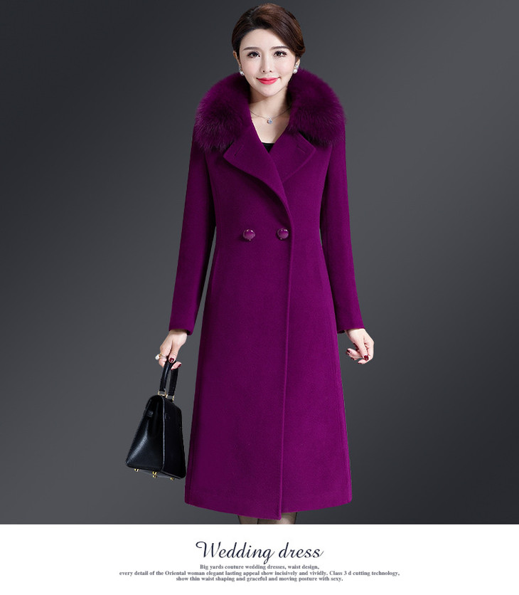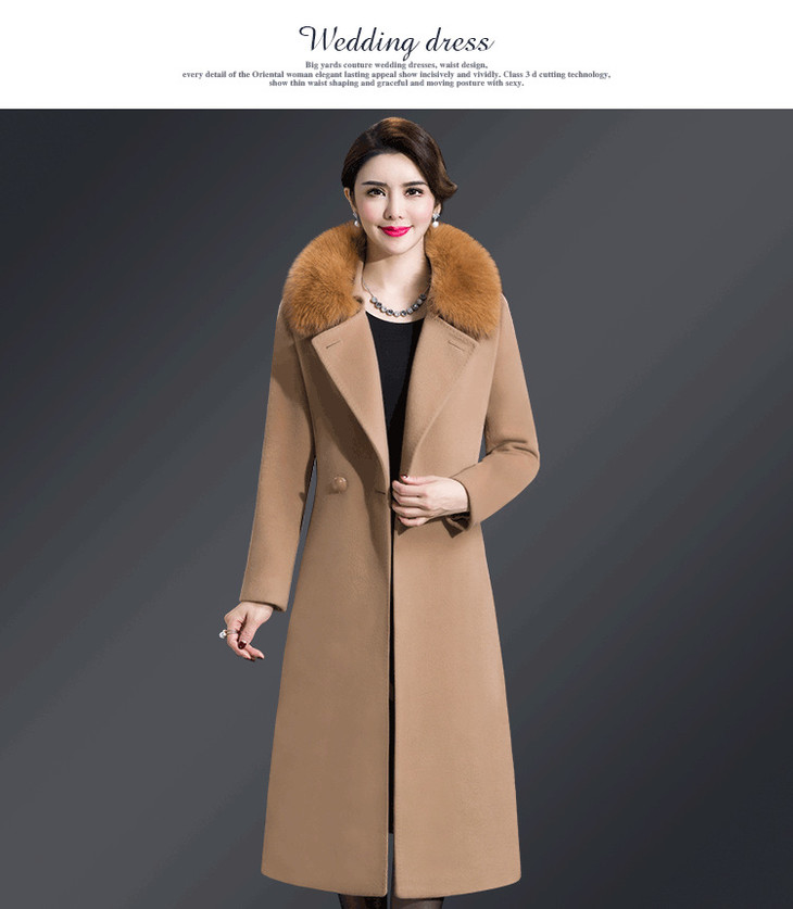 韩版修身,大毛领中长款羊毛呢外套YMR-8155