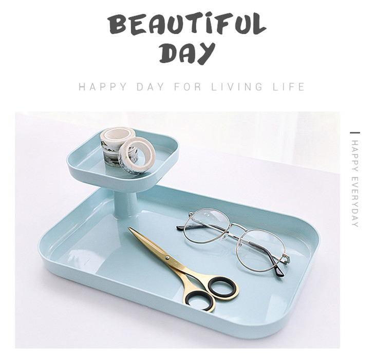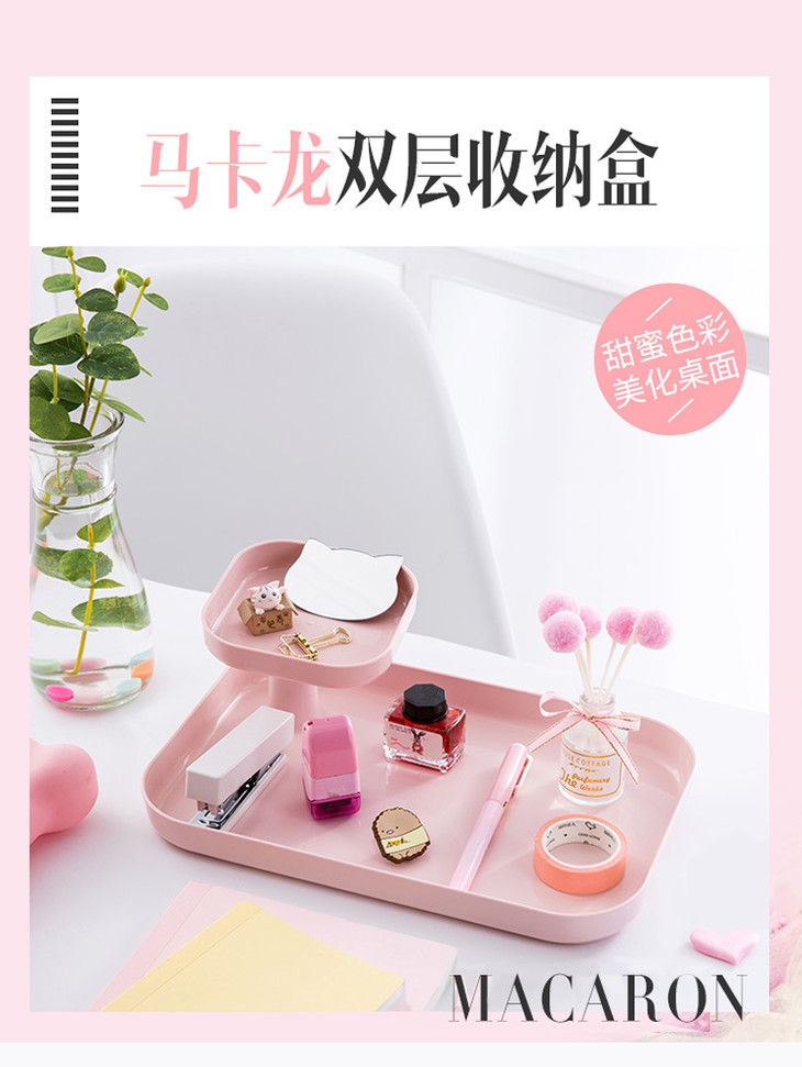 韩版设计可爱结实马卡龙双层收纳盘清新色系