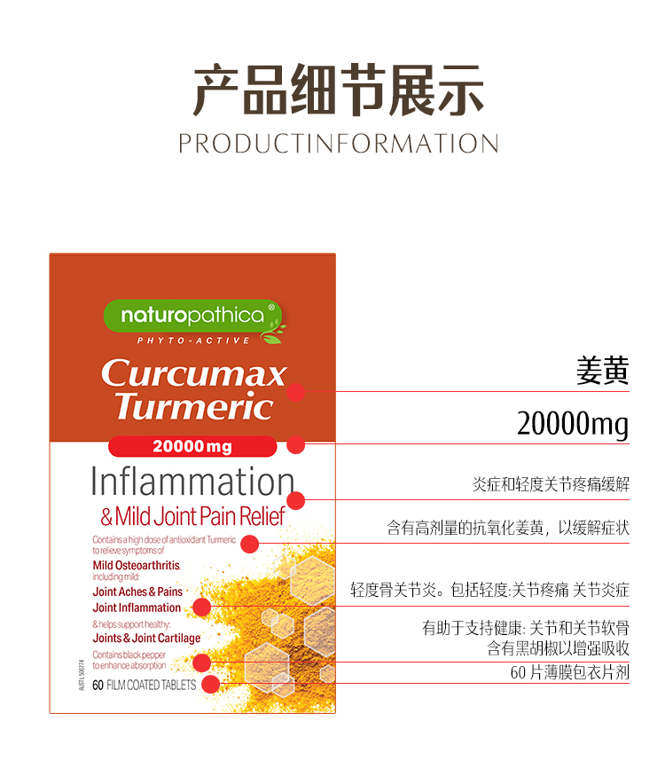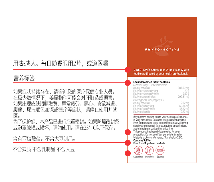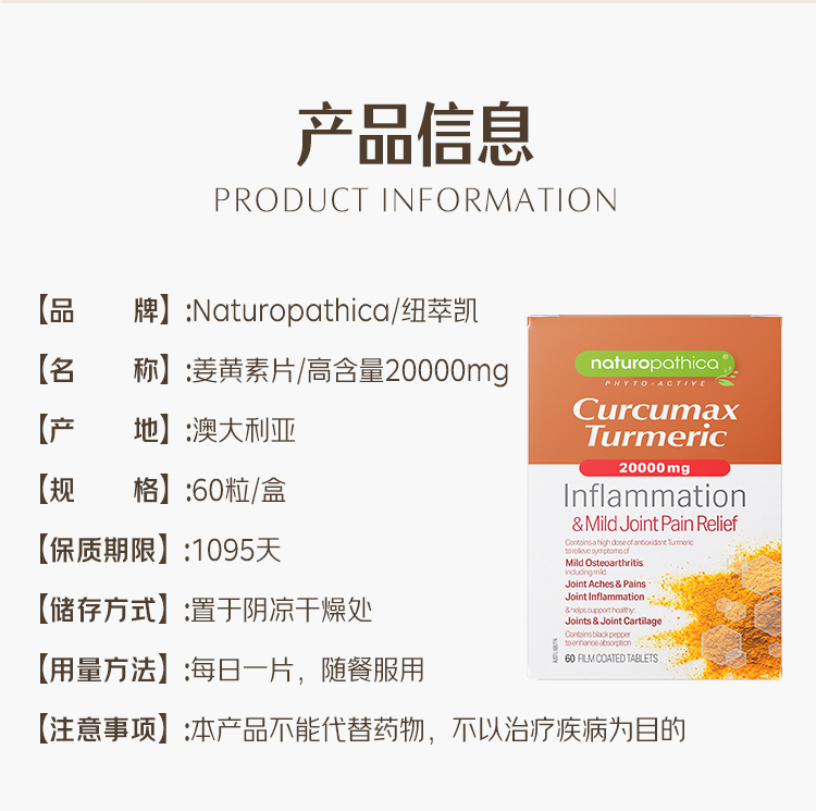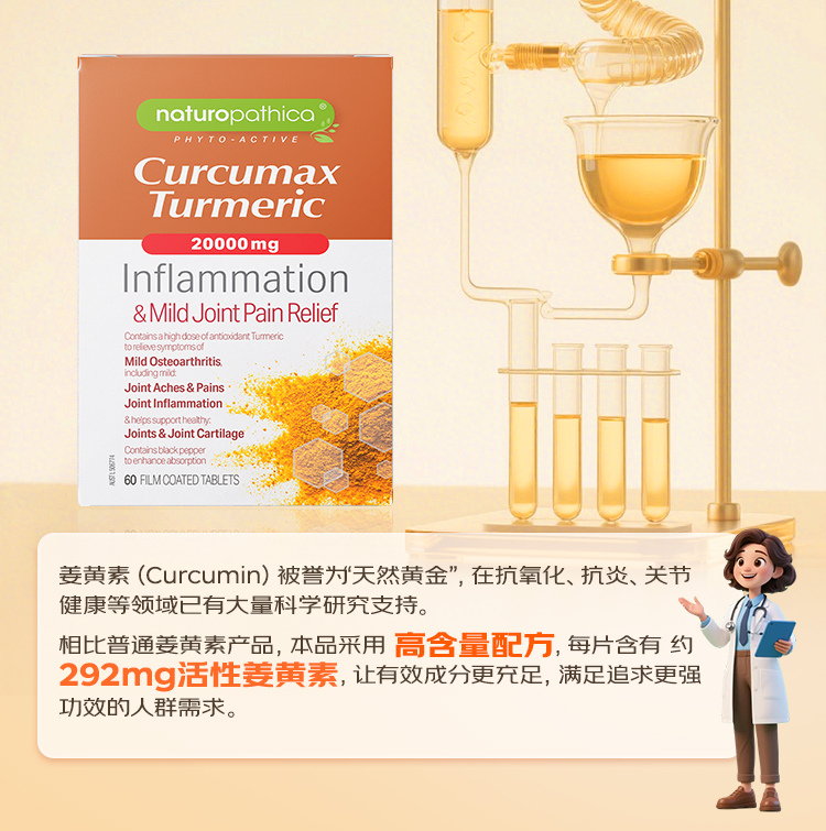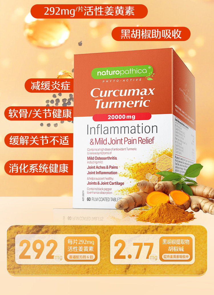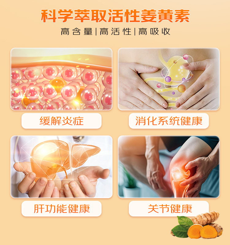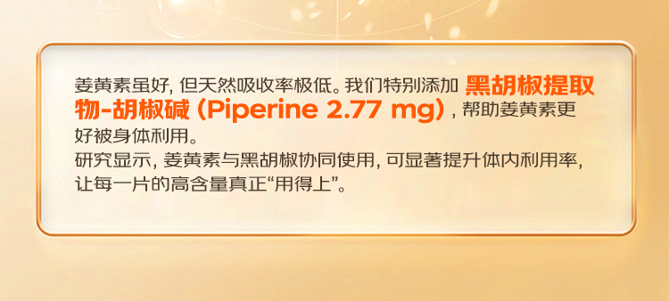 姜黄素黑胡椒精华片95%高活性养肝护肝 减缓炎症消化关节养护熬夜 高含量姜黄素*60粒/盒【普通的6倍】