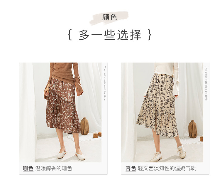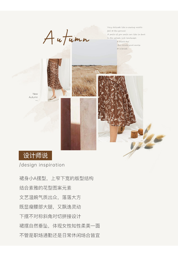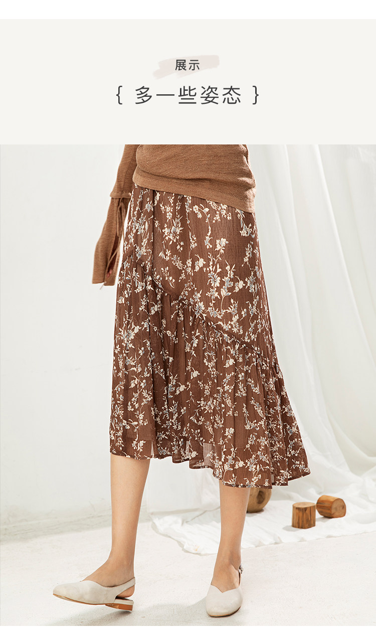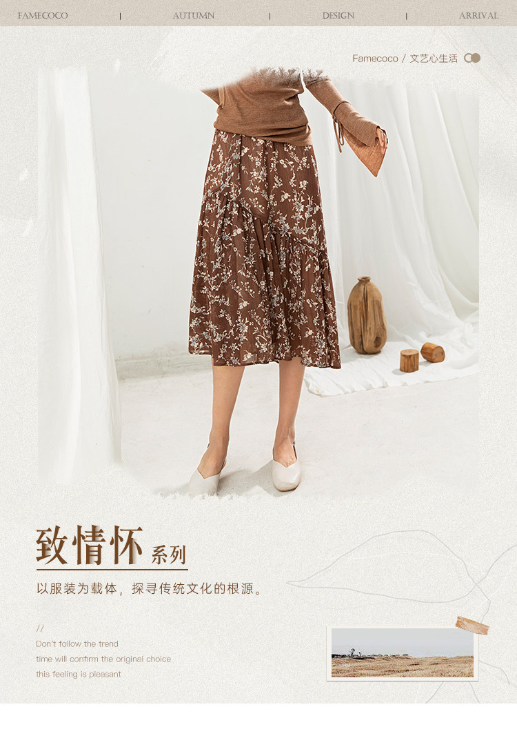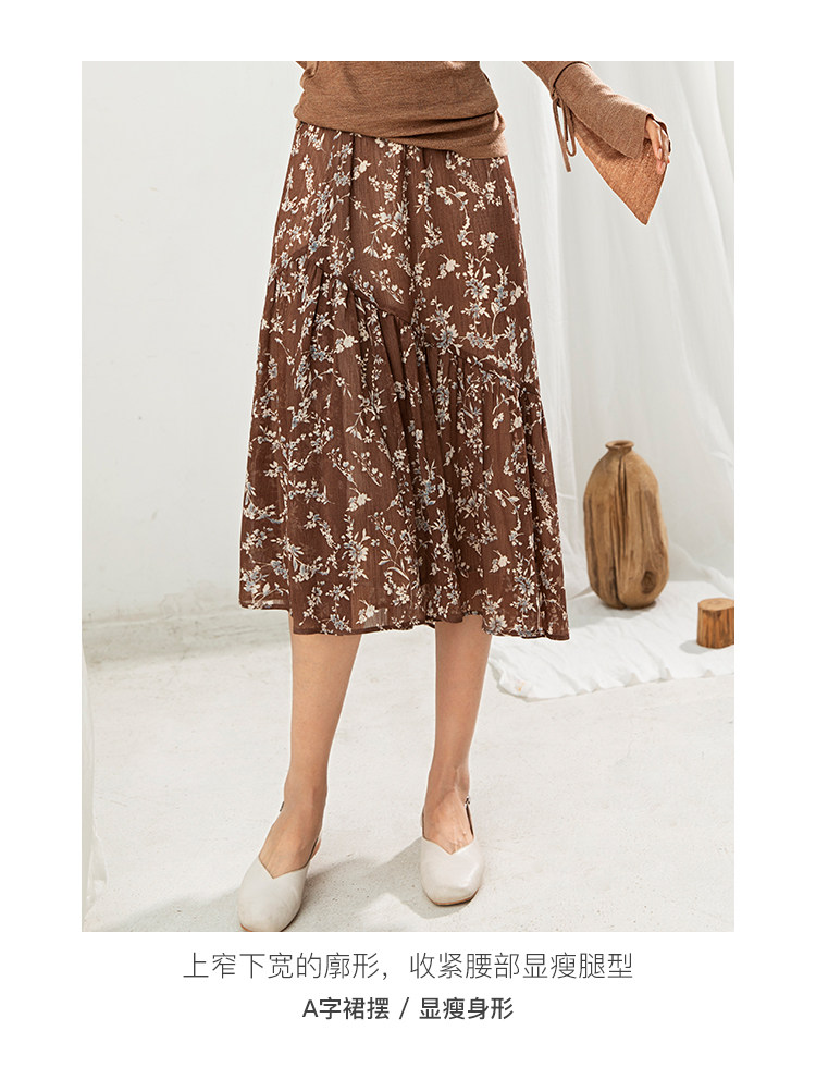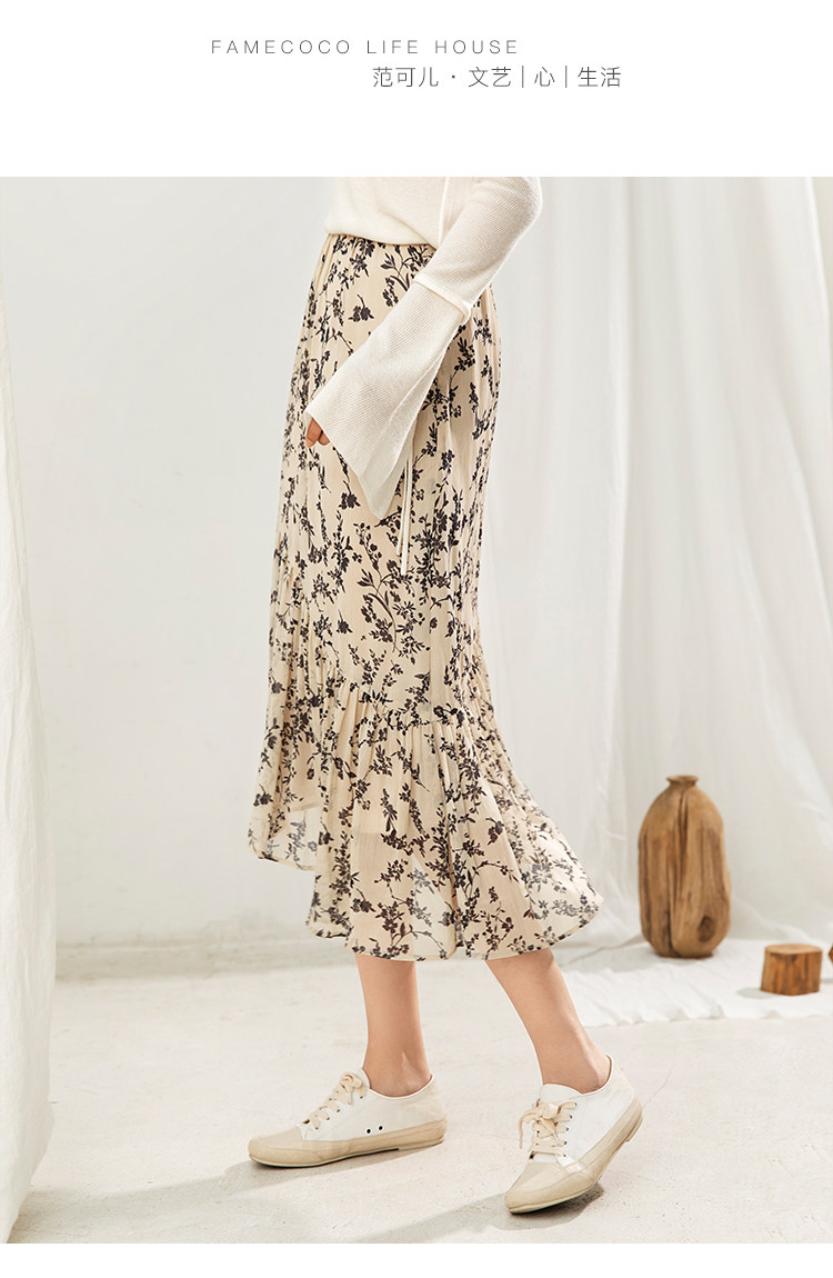 famecoco范可儿碎花半身裙中长款女秋装雪纺印花a字裙F205HA008