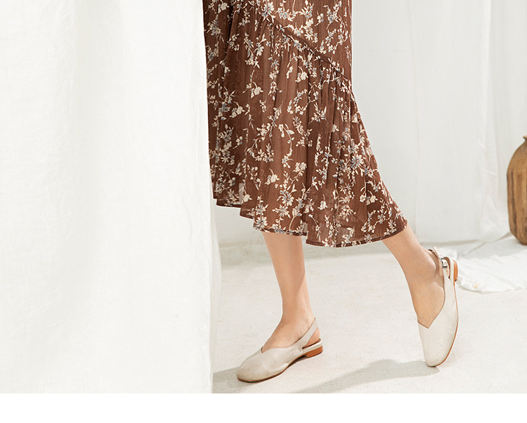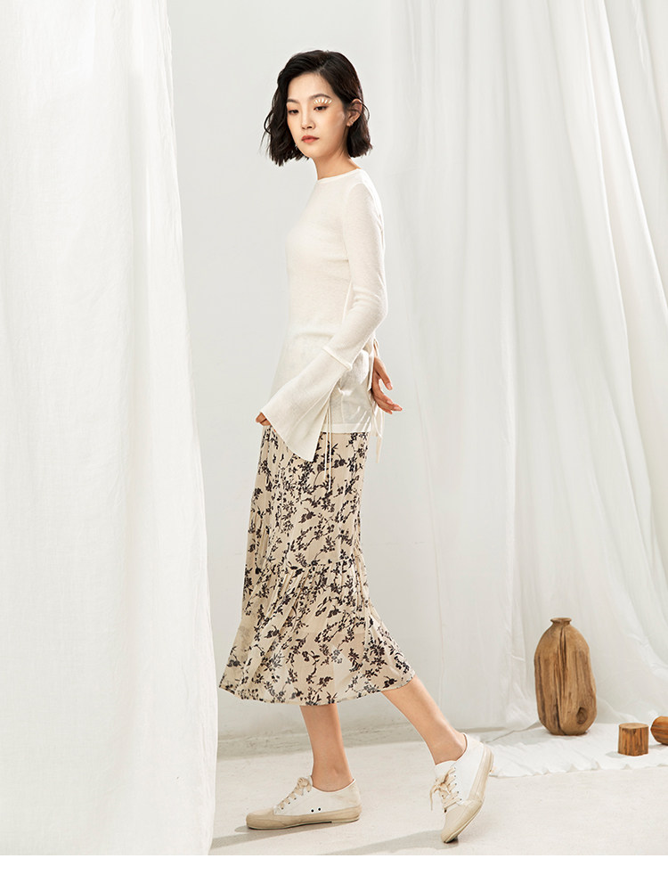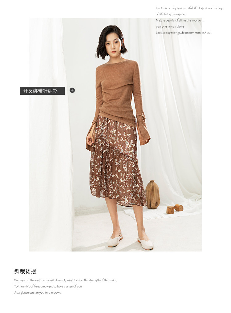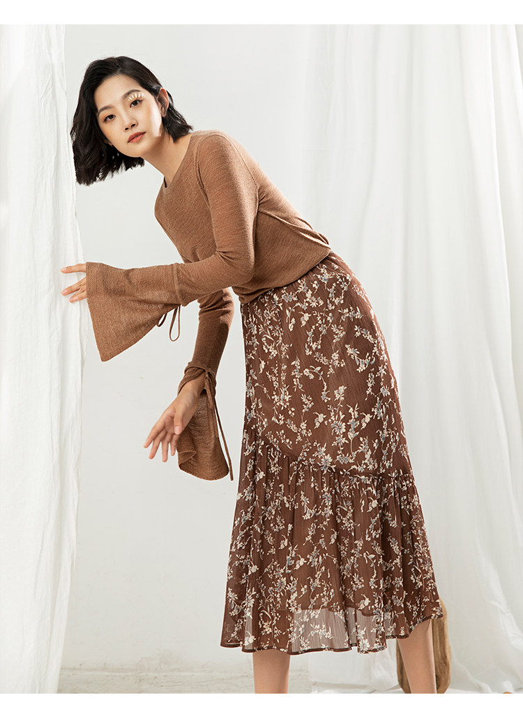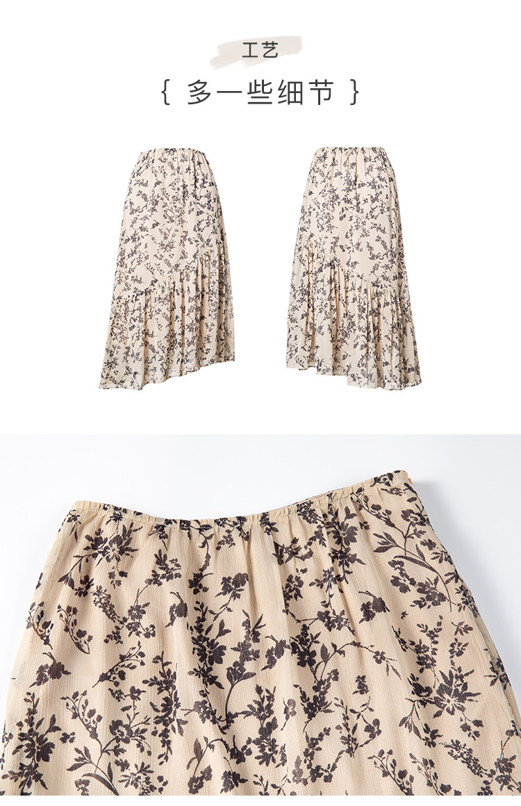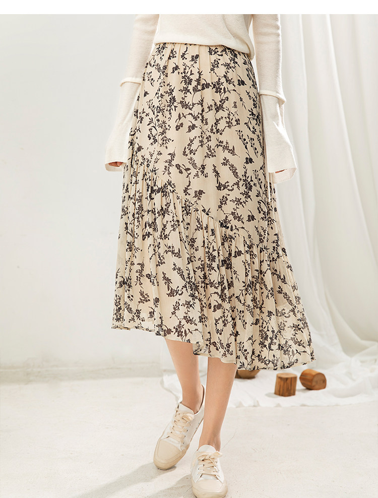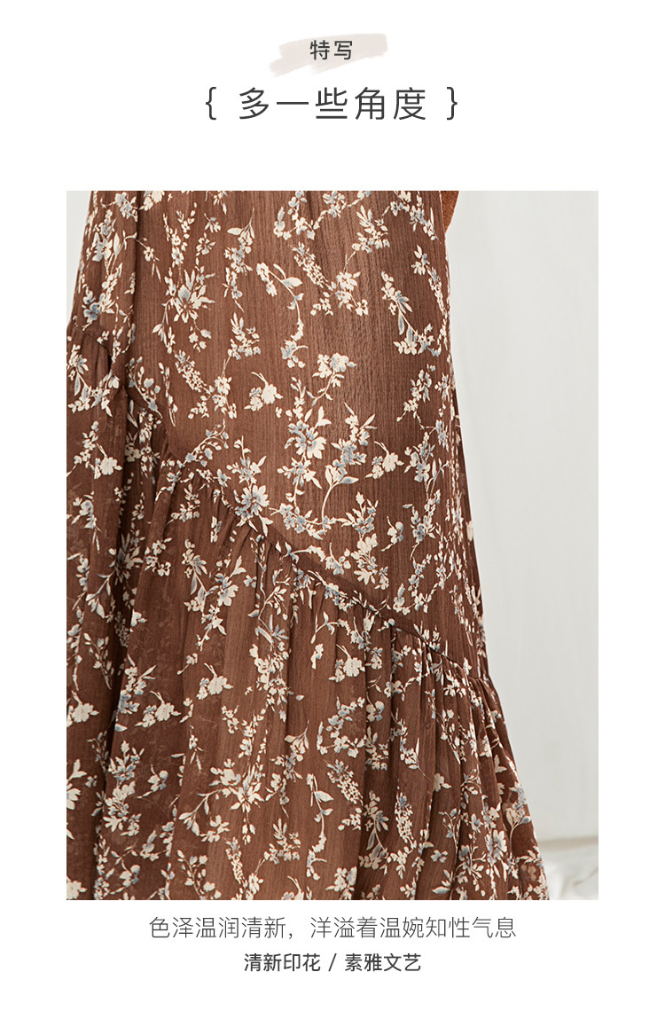 famecoco范可儿碎花半身裙中长款女秋装雪纺印花a字裙F205HA008