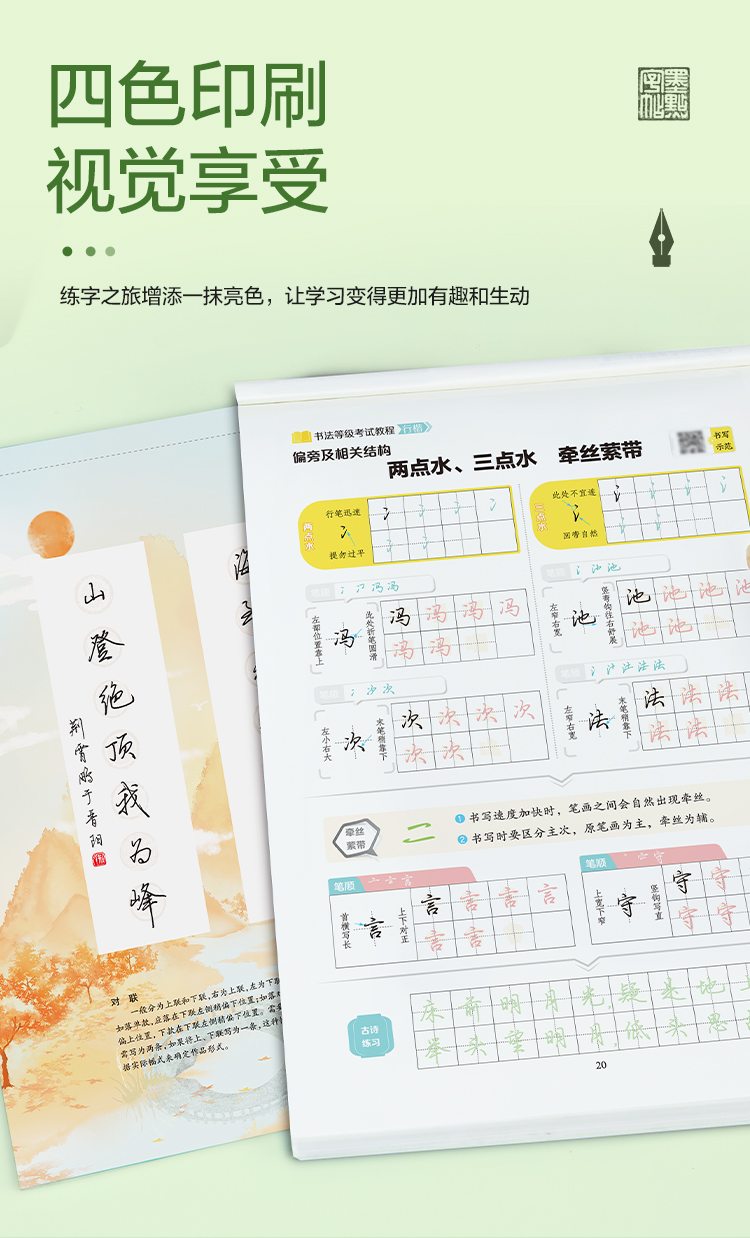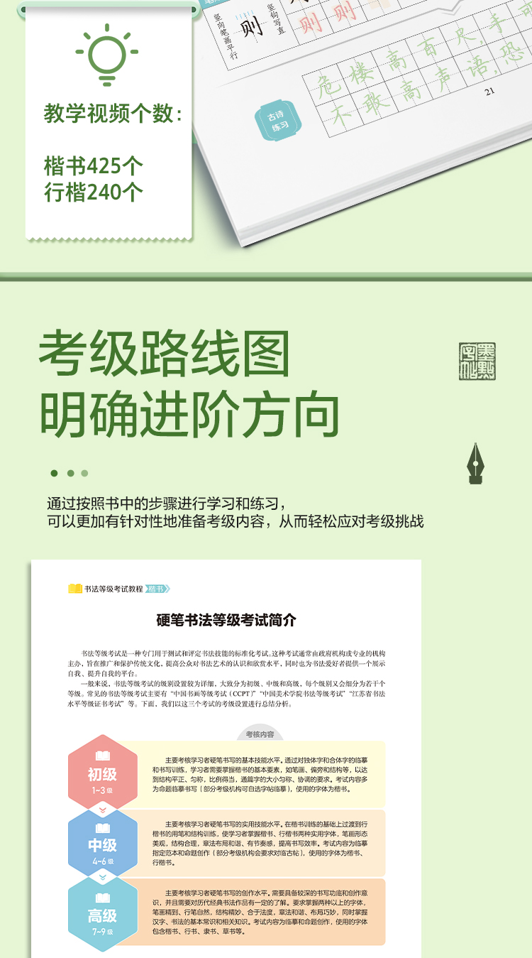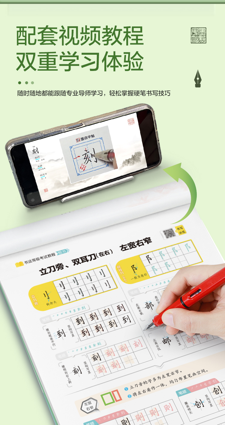 墨点字帖 书法等级考试教程 荆霄鹏楷书字帖学生练字帖成人硬笔书法练字本行楷入门教程初学者笔画偏旁间架结构行楷钢笔临摹正楷行楷