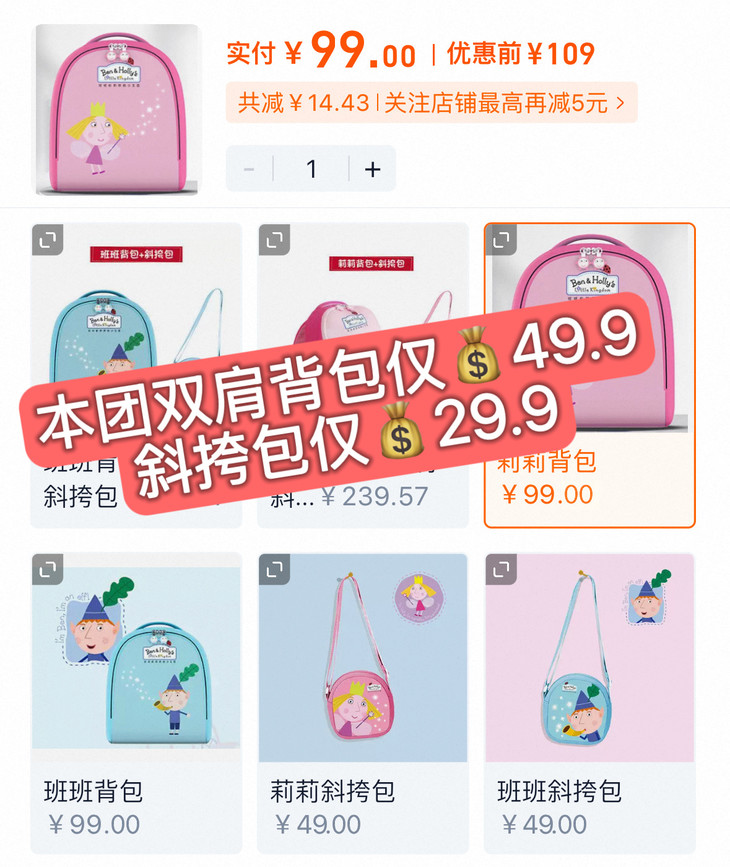 本团年终福利价 ,仅此一团 双肩包💥💰49.9到手 斜挎包💥💰29.9到手 每款库存不多,抢到就是赚到