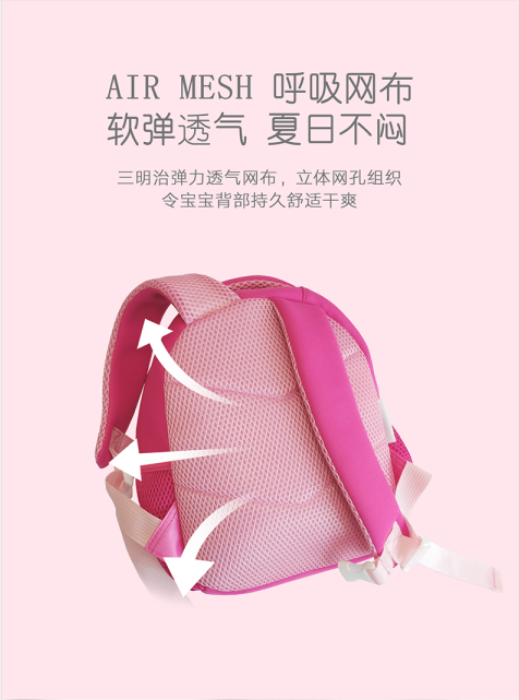 🔻后背采用了AIR MESH呼吸网布 是三明治弹力透气结构 立体网孔组织能让空气自由流通 热气和湿气轻松散出 孩子跑跳玩耍一整天,后背依然干爽舒适