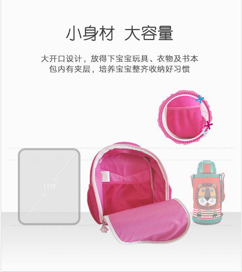 🔻小身材,大容量 里面采用科学的“主次分层”设计 轻松培养孩子收纳好习惯! 侧面都有兜,可以放水杯 让收纳变得简单有序,轻松解决孩子物品混淆的烦恼