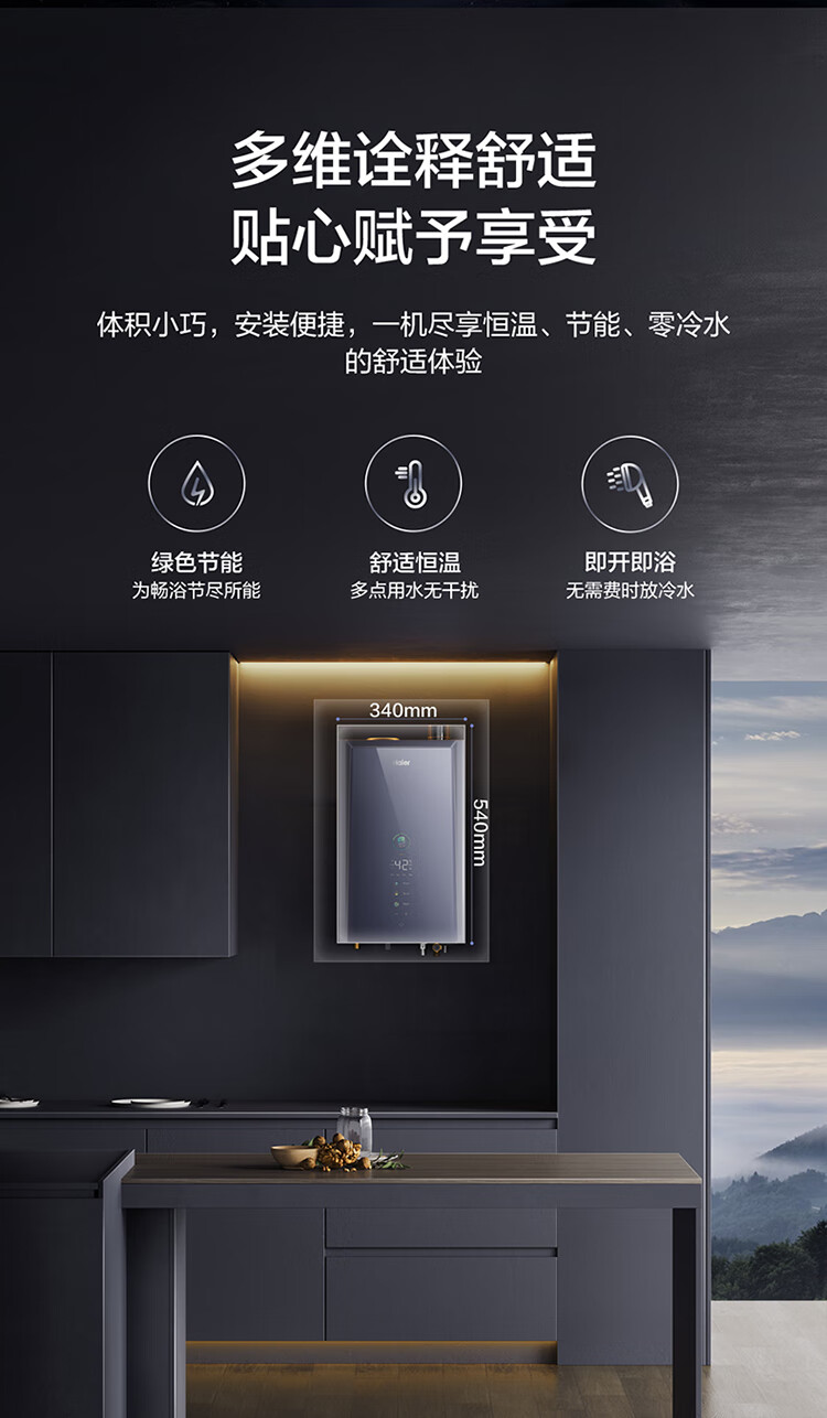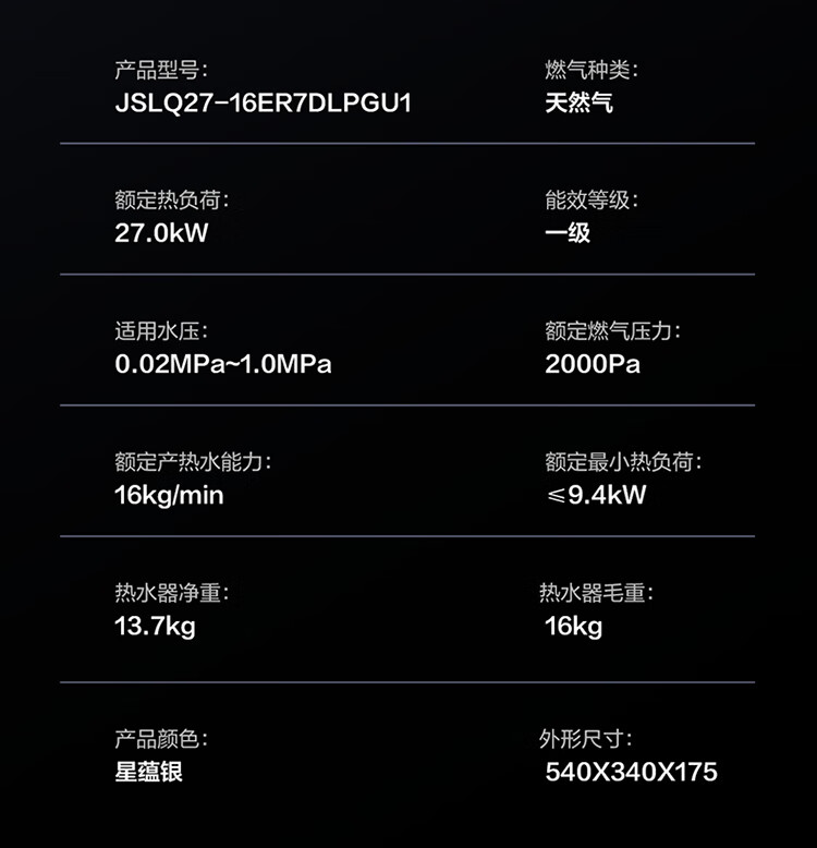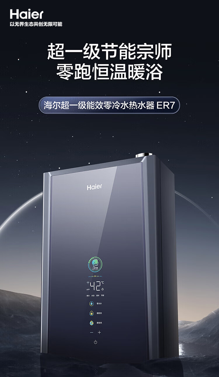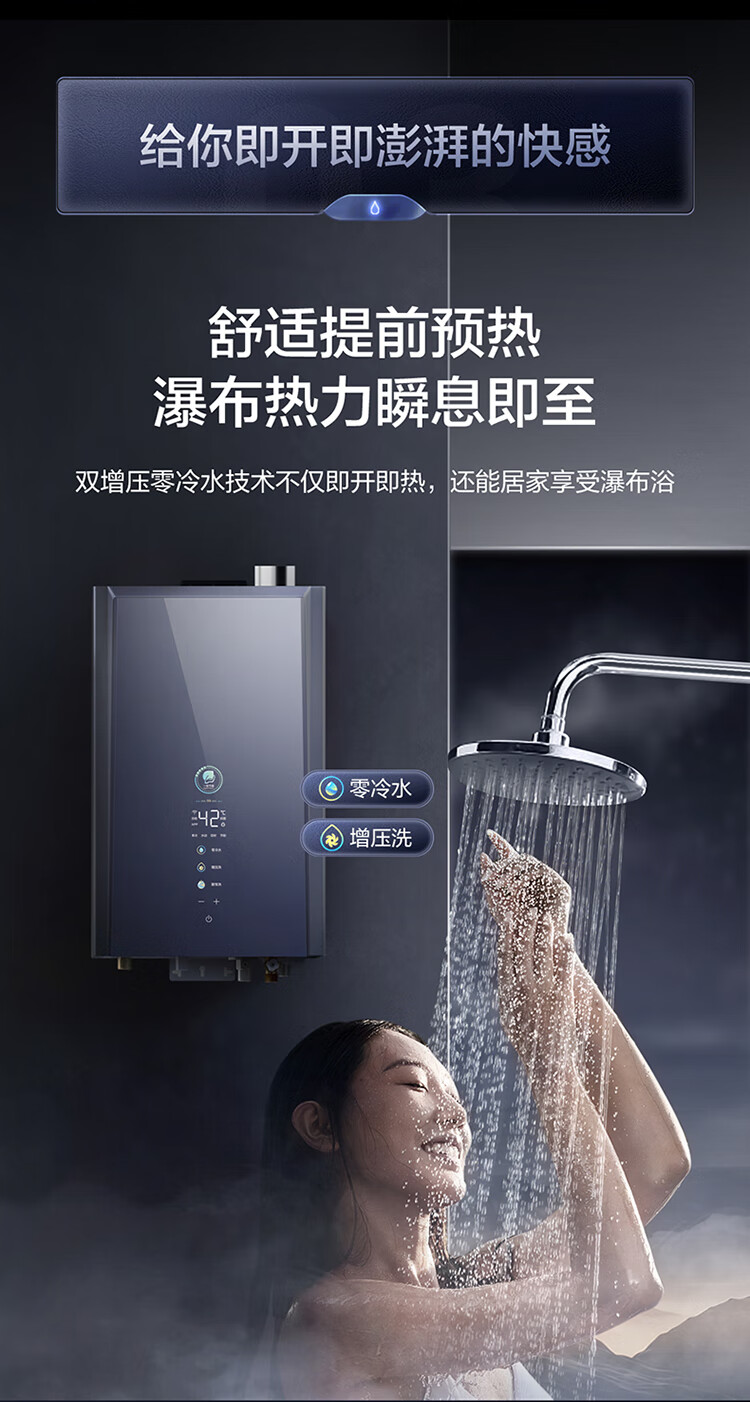 海尔(Haier)16升 零冷水 燃气热水器 一级能效 大水量 水伺服JSLQ27-16ER7DLPGU1天然气