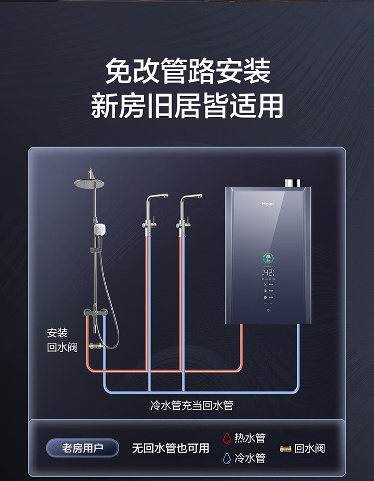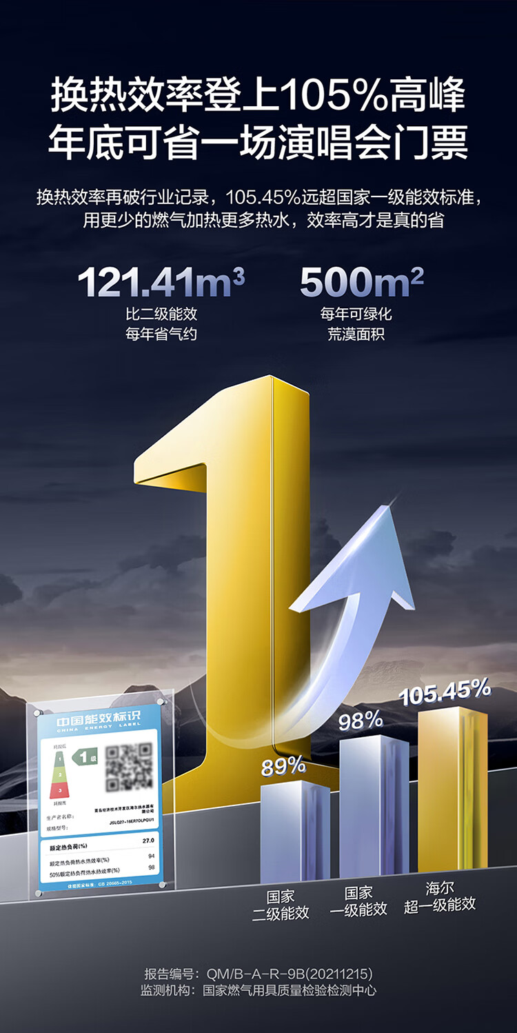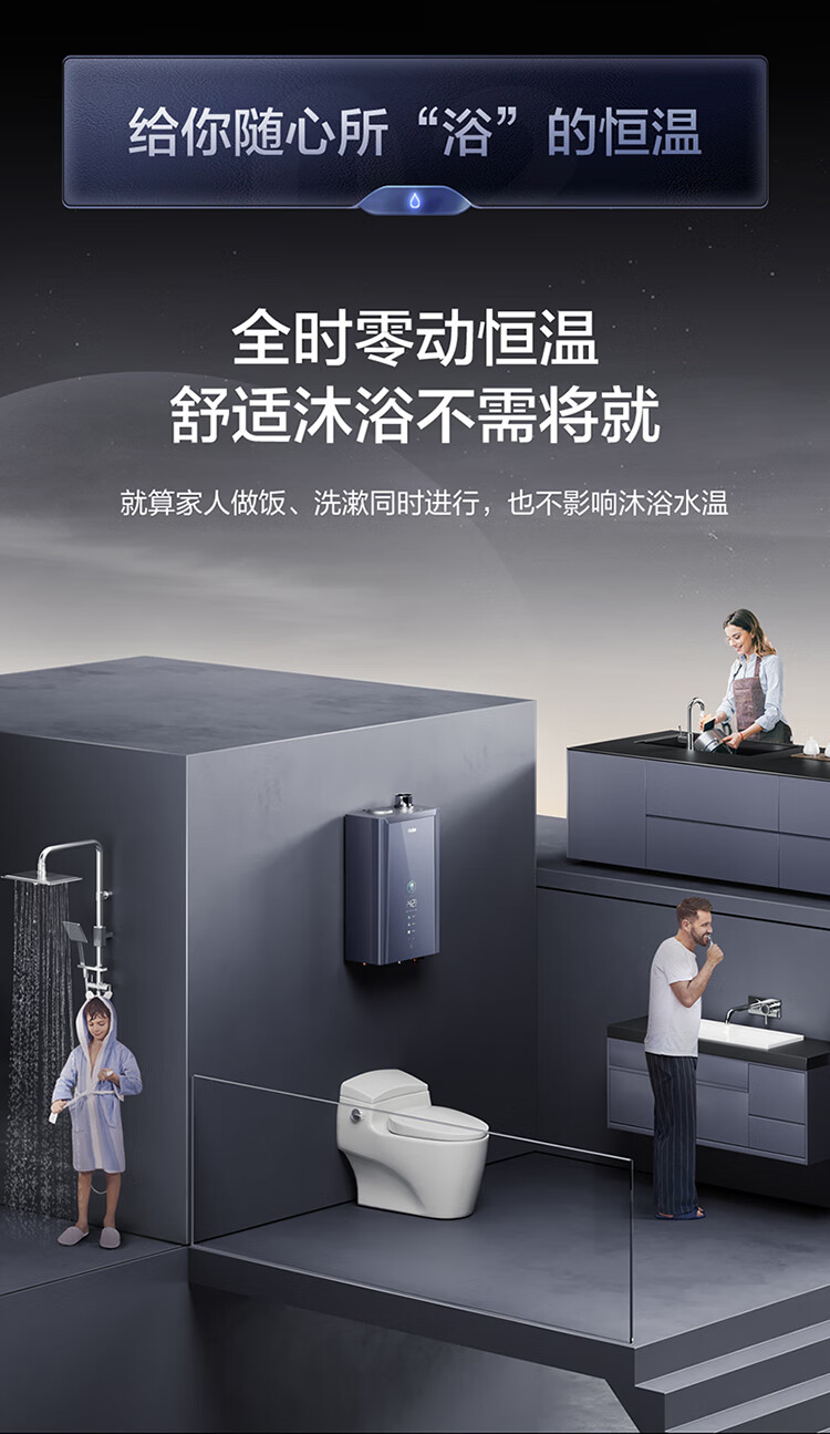 海尔(Haier)16升 零冷水 燃气热水器 一级能效 大水量 水伺服JSLQ27-16ER7DLPGU1天然气
