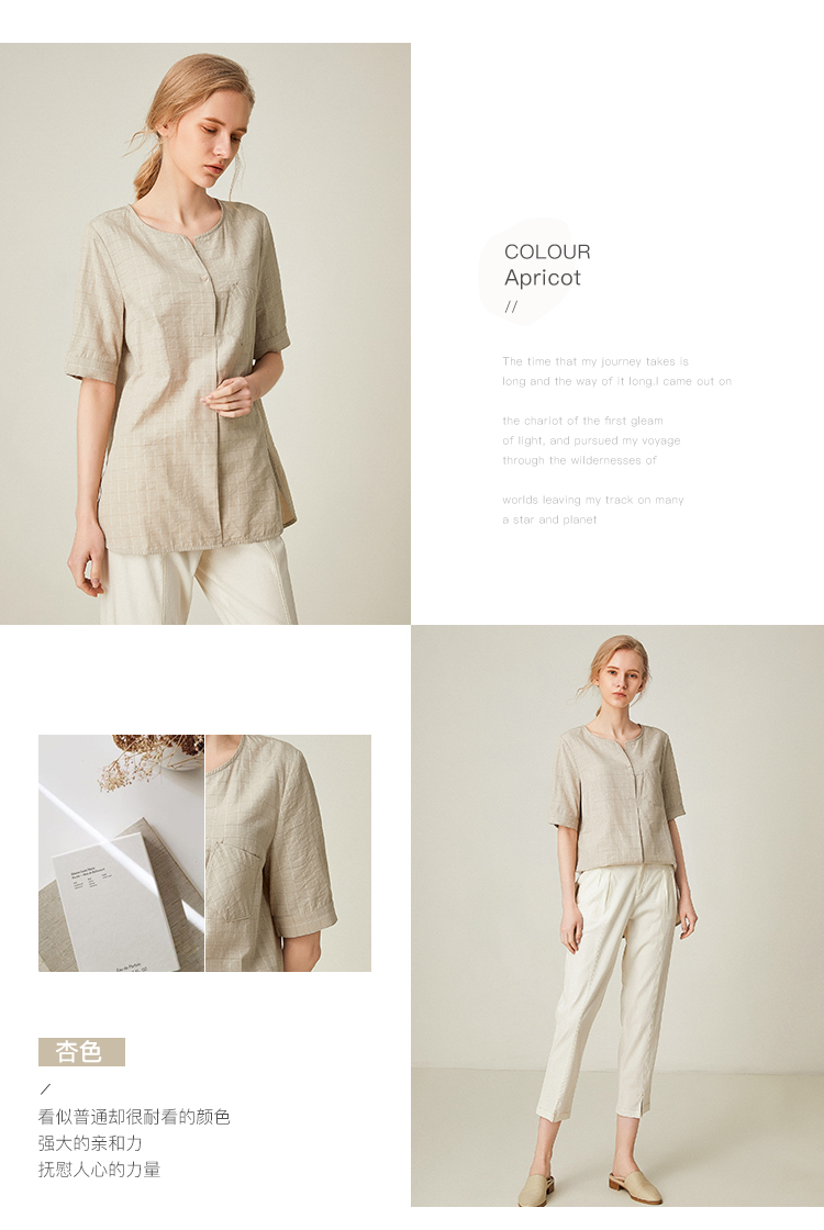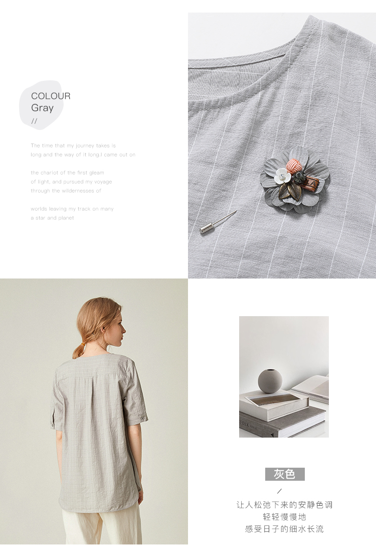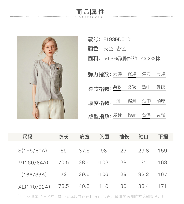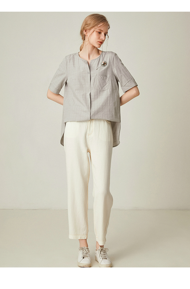 famecoco范可儿女士衬衫新款夏短袖v领外穿宽松百搭上衣F193BD010