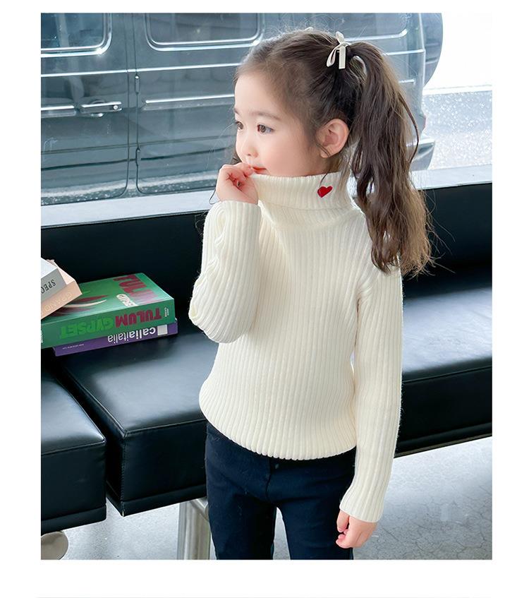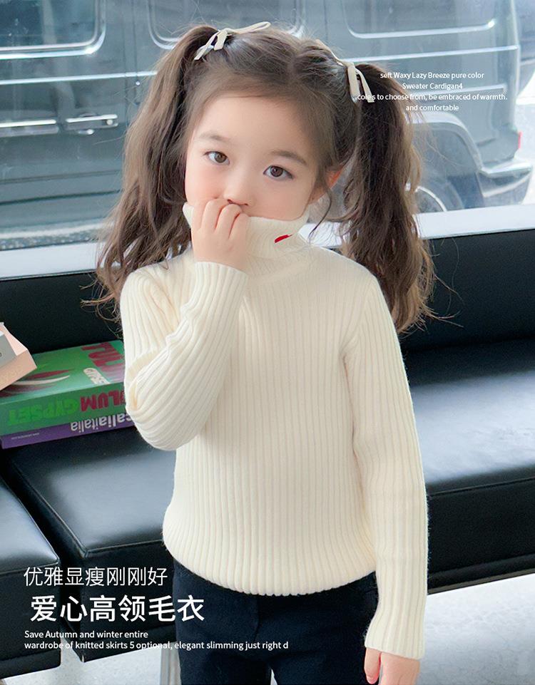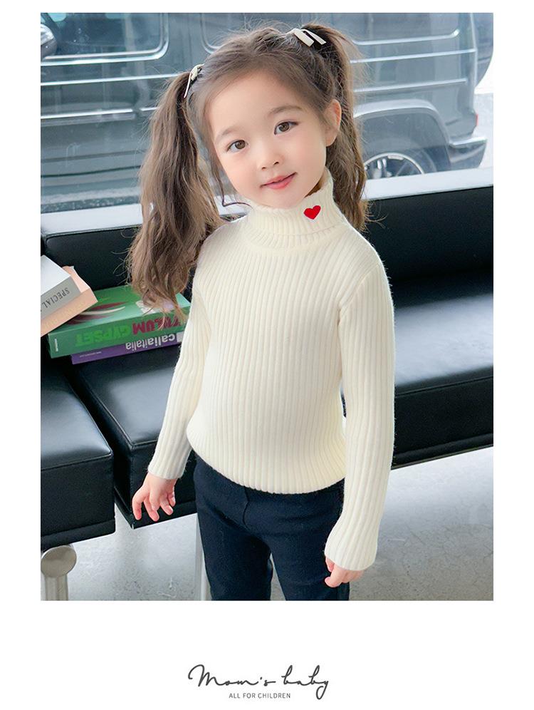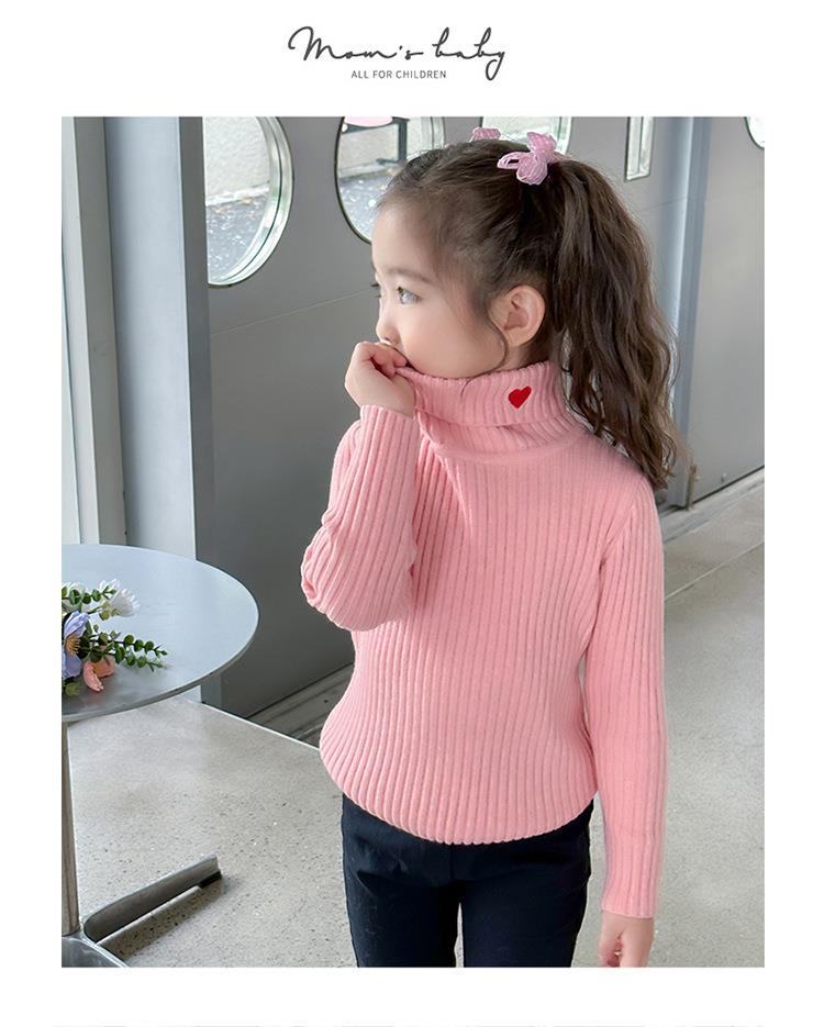 女童爱心高领毛衣冬季2023新款宝宝韩版洋气打底衣童装潮