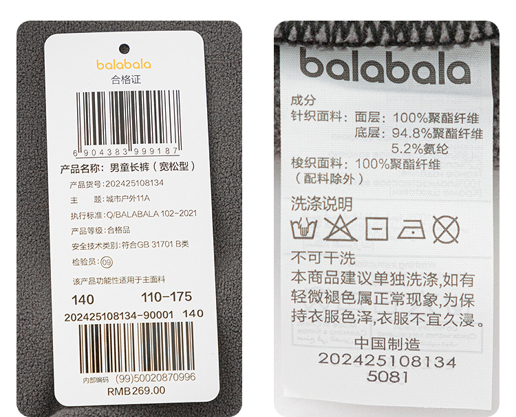 【商场同款】巴拉巴拉童装儿童裤子男童加绒长裤2025冬新款束脚裤