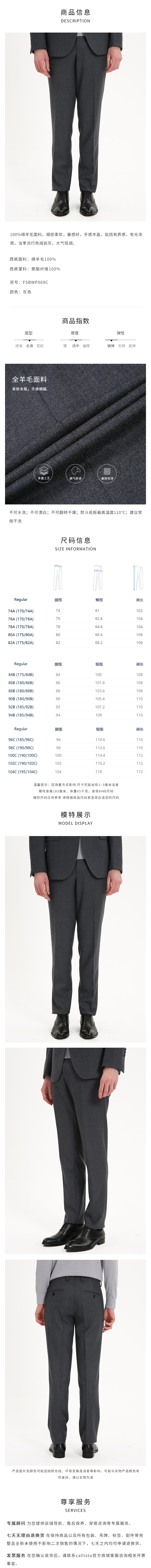callisto熔岩灰全绵羊毛西裤 FTBWP069T