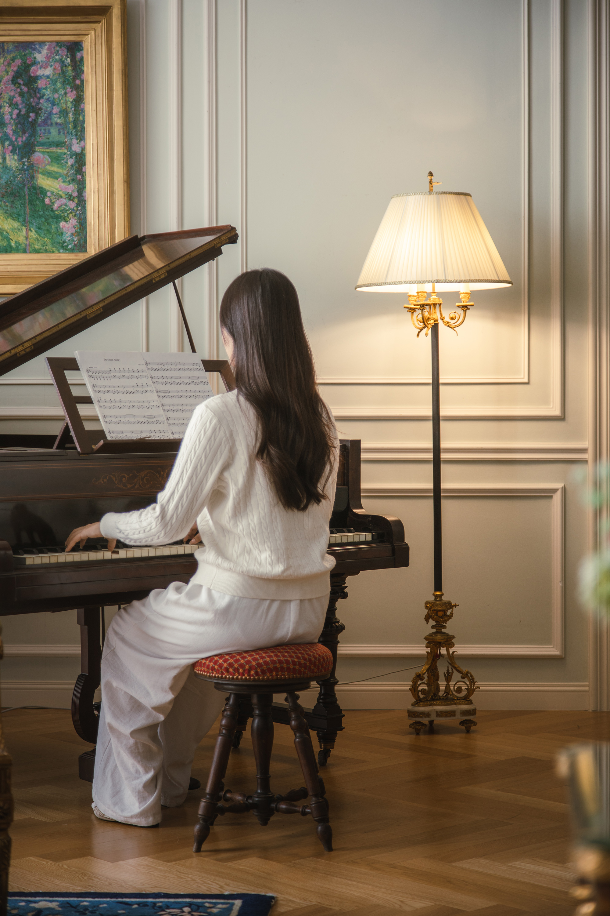 材质:铜鎏金,布面灯罩,大理石等