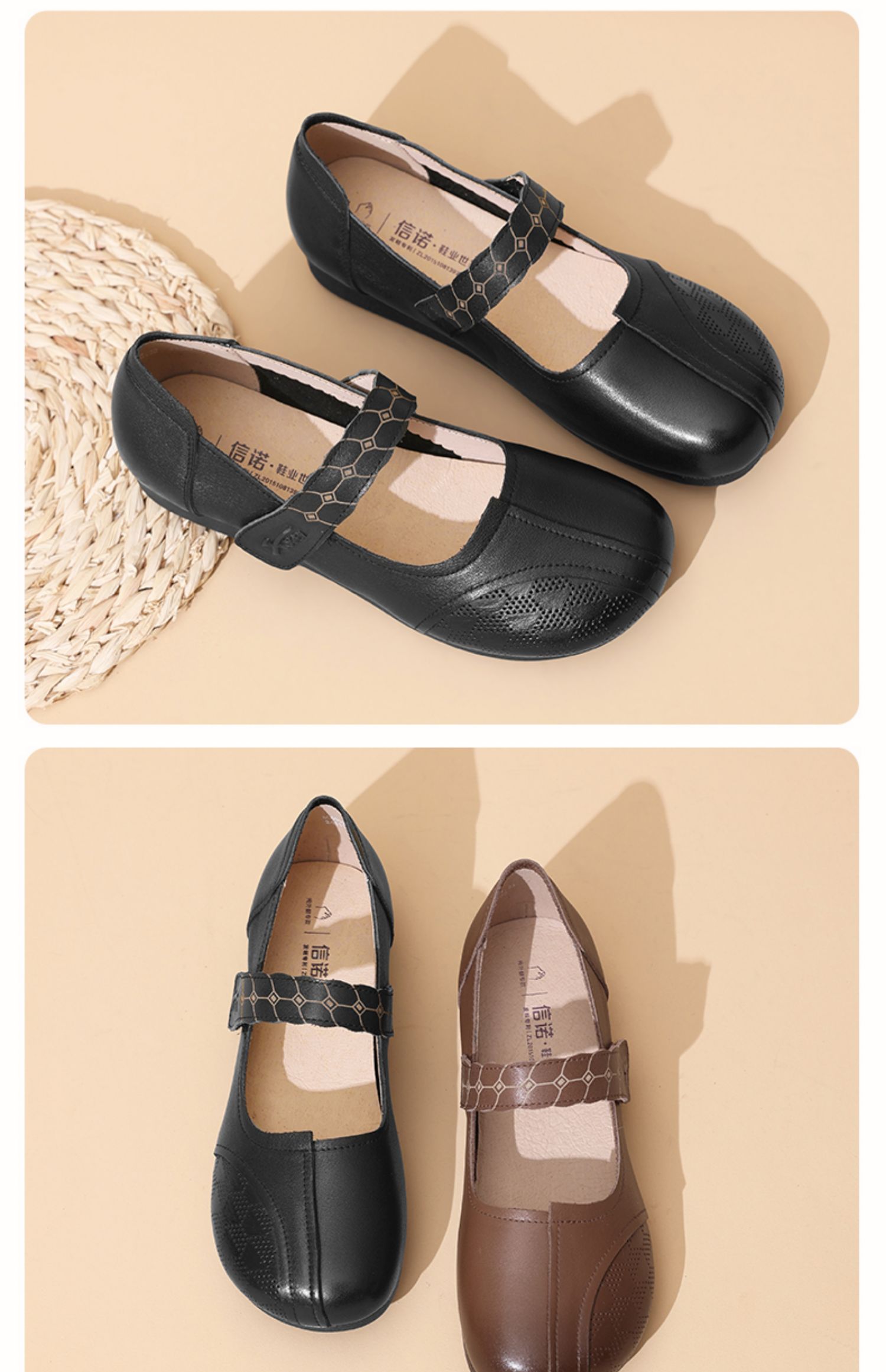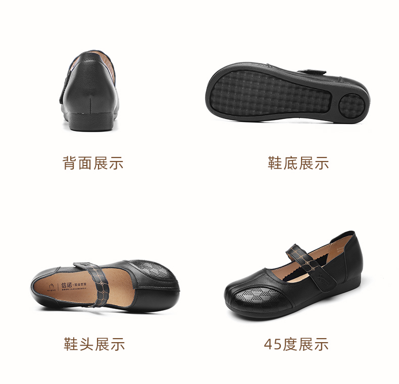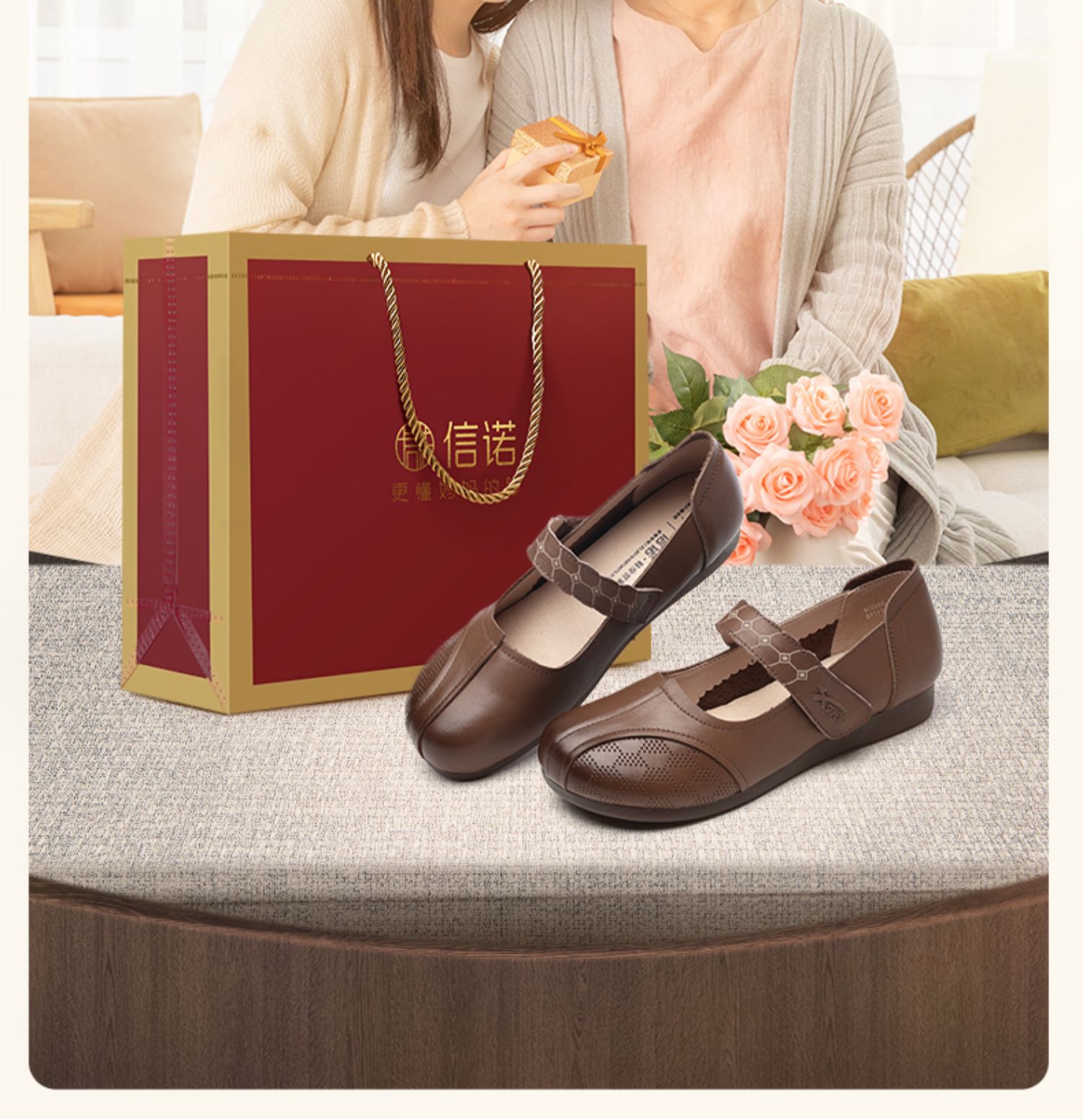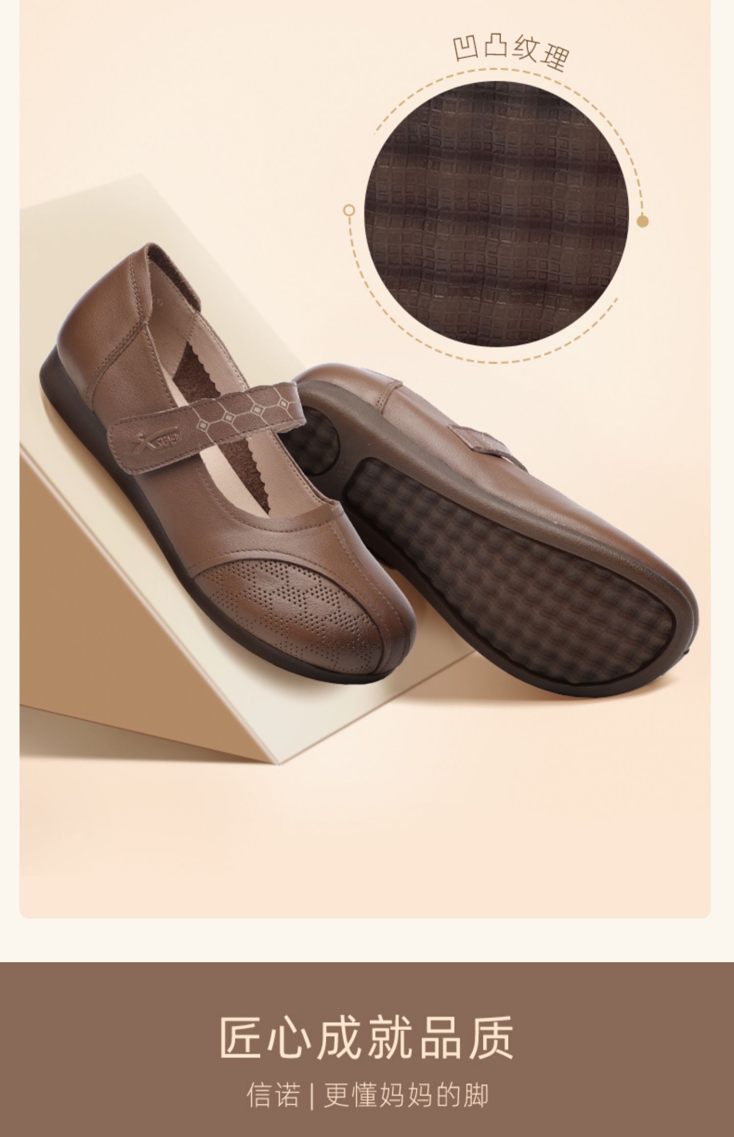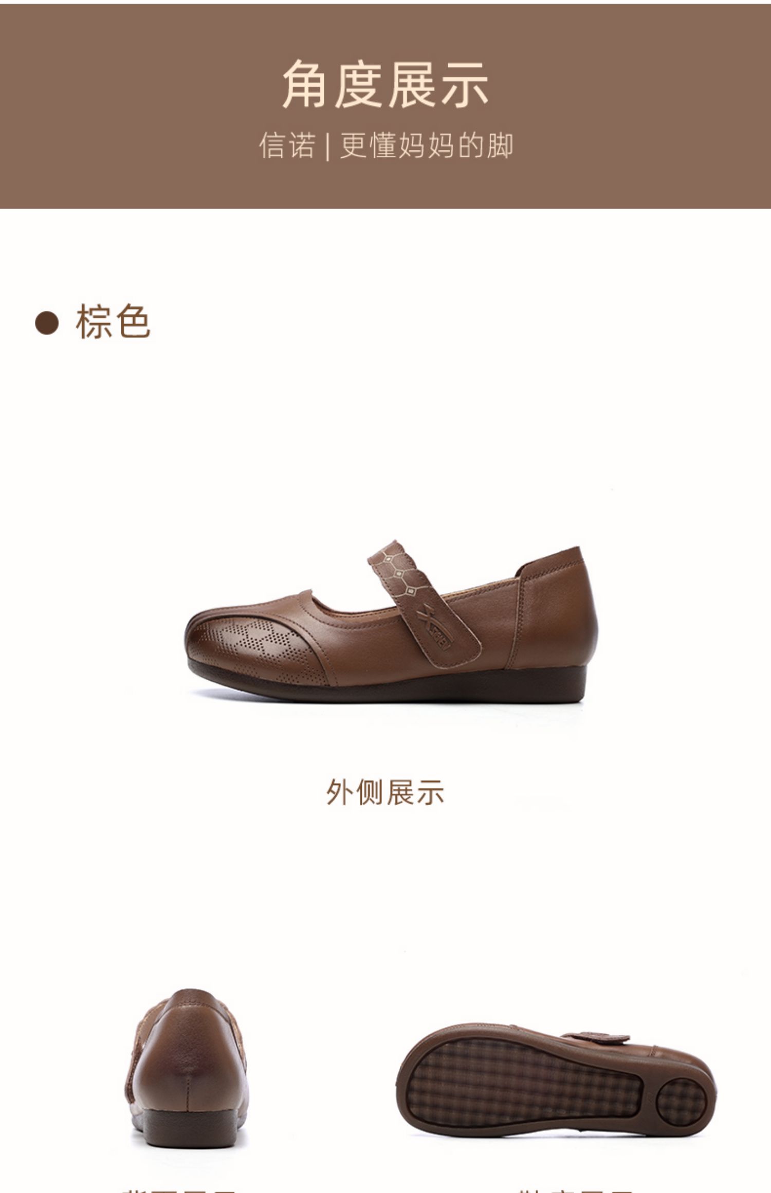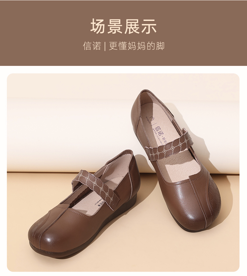 信诺真皮宽脚单鞋女款拇外翻大脚骨妈妈鞋春季新款中老年平底皮鞋5C5998-2