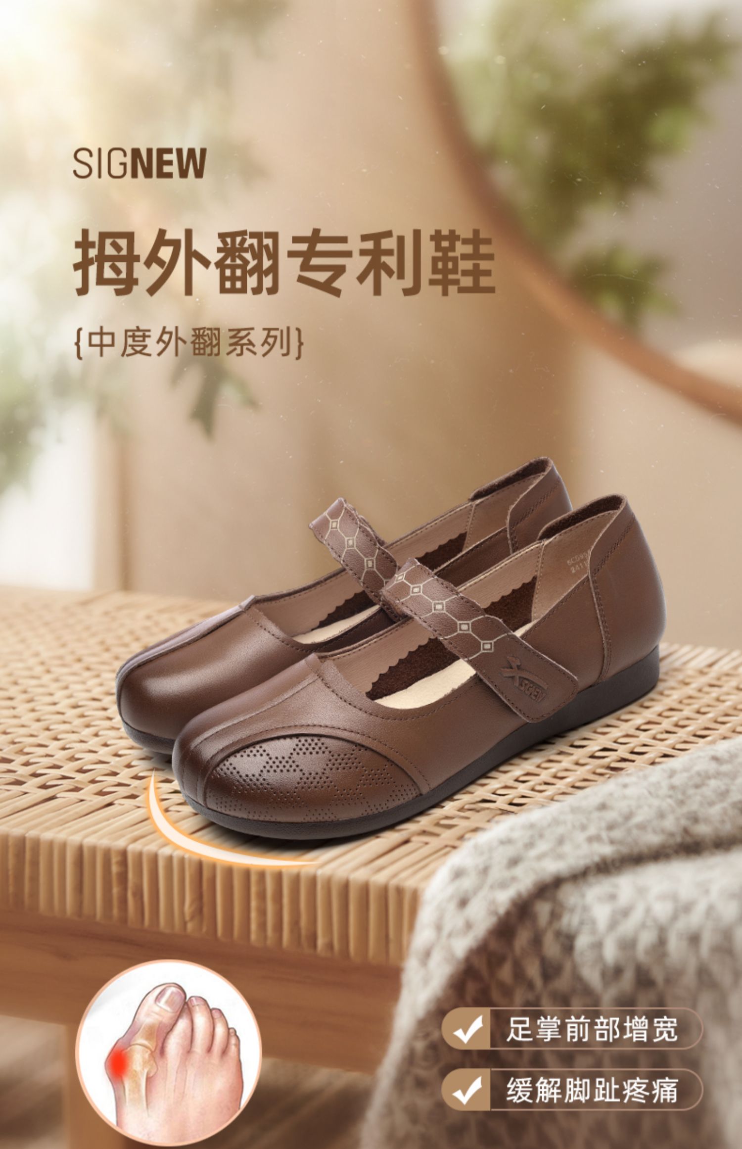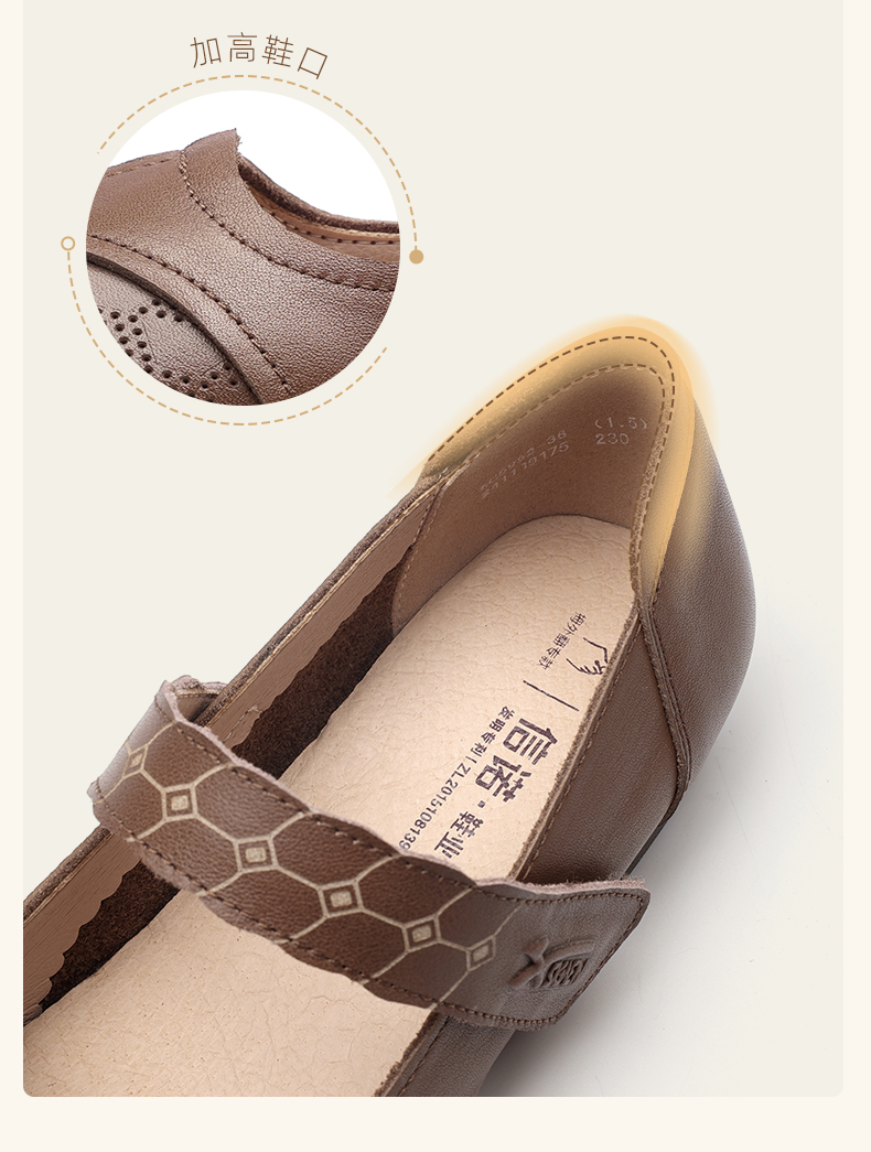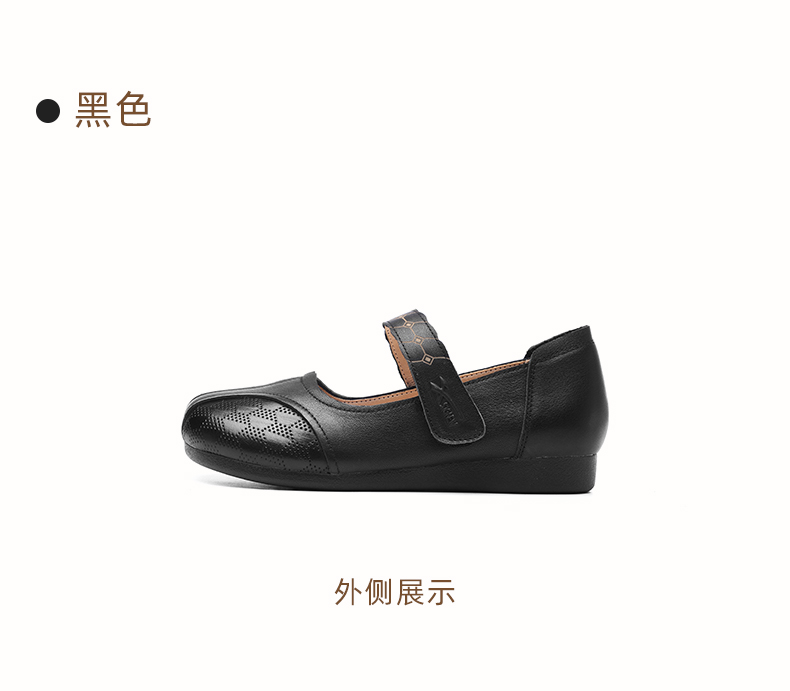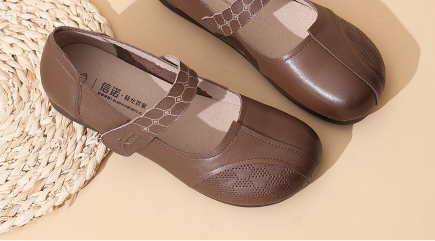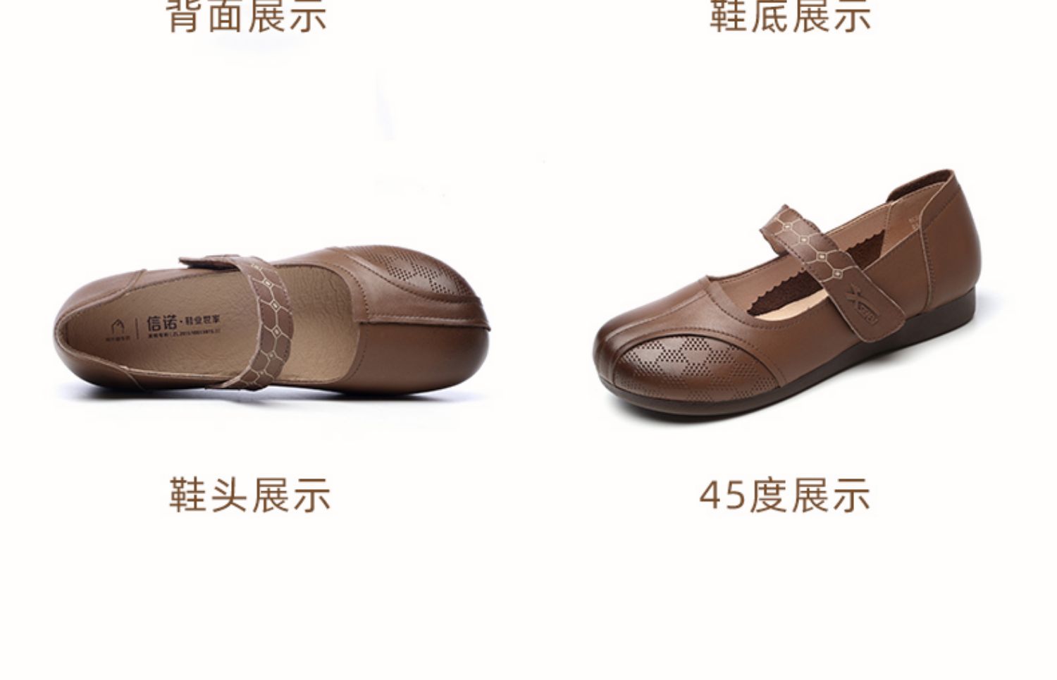 信诺真皮宽脚单鞋女款拇外翻大脚骨妈妈鞋春季新款中老年平底皮鞋5C5998-2