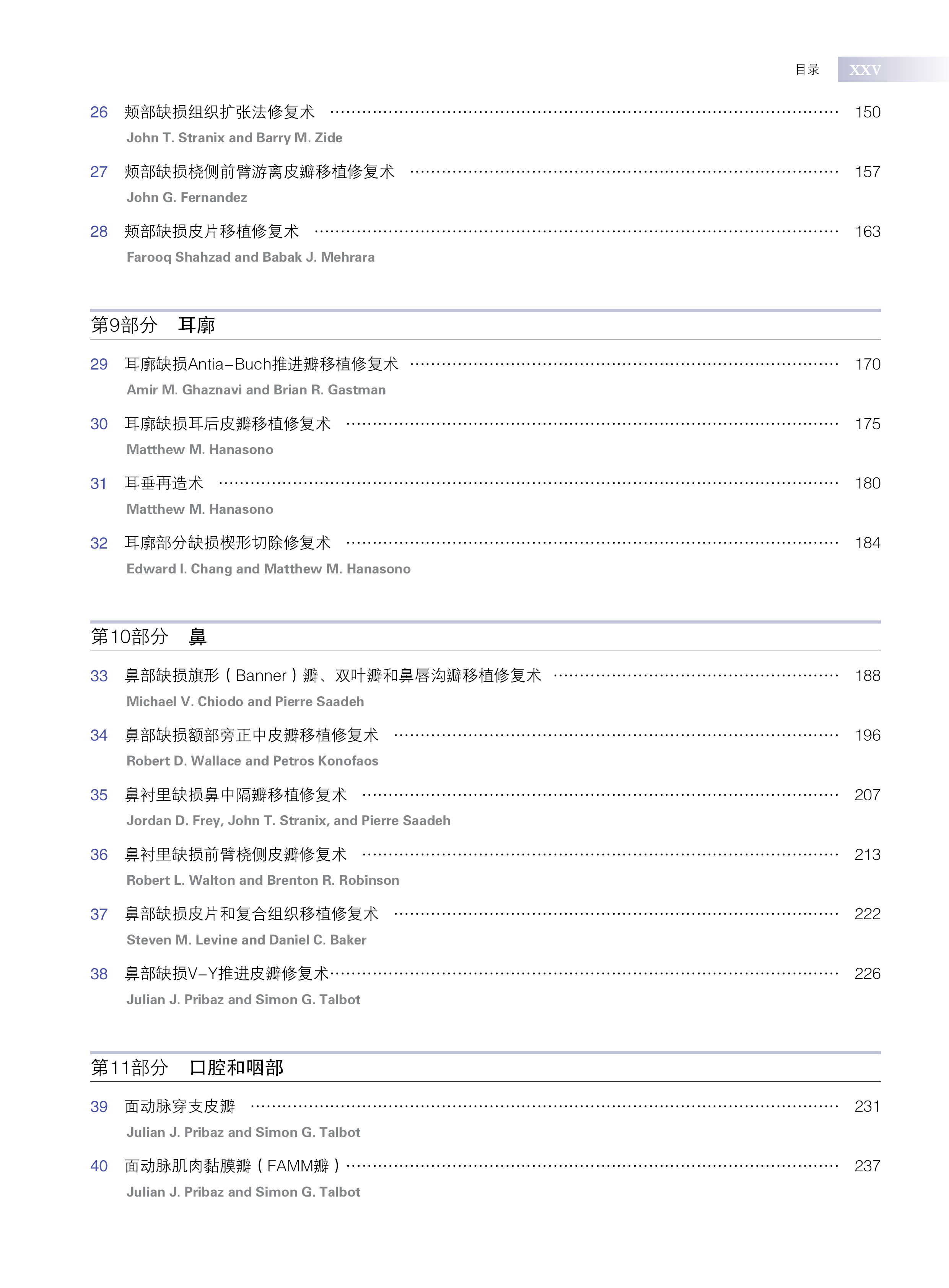 本系列图书是威科出版社刚刚出版的新书,涵盖了整形外科领域的方方面面。有密歇根大学的专家Kevin C.Chung担任主编。全世界500余名整形专家参与编写。本书是系列三,由美国纽约斯隆凯特琳癌症纪念中心整形科主任Babak J. Mehrara主编,主要介绍了面颈部美容整形的各种方法,共12章53小节,包括了面部手术、头皮和颅骨损伤、颅底和中面部损伤、唇眼腮耳鼻和咽喉损伤的美容整形方法,内容非常全面,以图文结合的方式阐述医疗技术的操作,是目前非常全面的一本整形外科学参考书。
