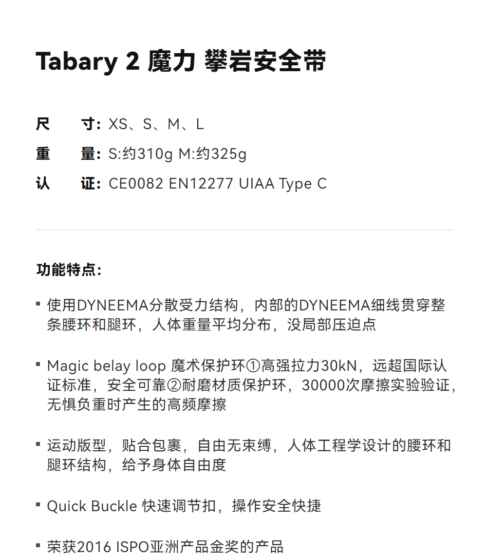 KAILAS凯乐石 户外运动 Tabary II 魔力 攀岩安全带 EH106