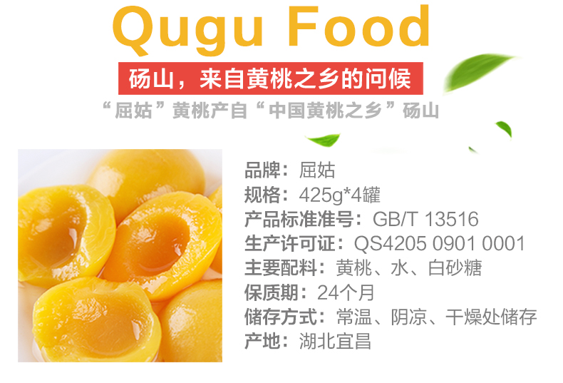 宜昌 屈姑 黄桃罐头425g*4罐体验装