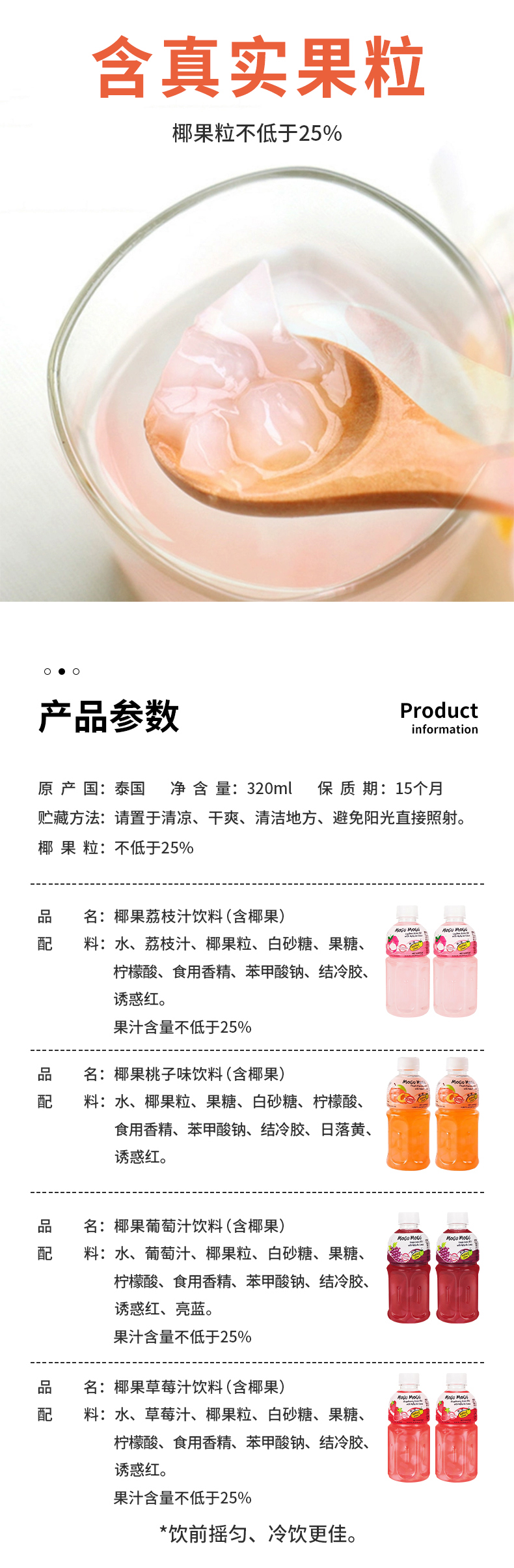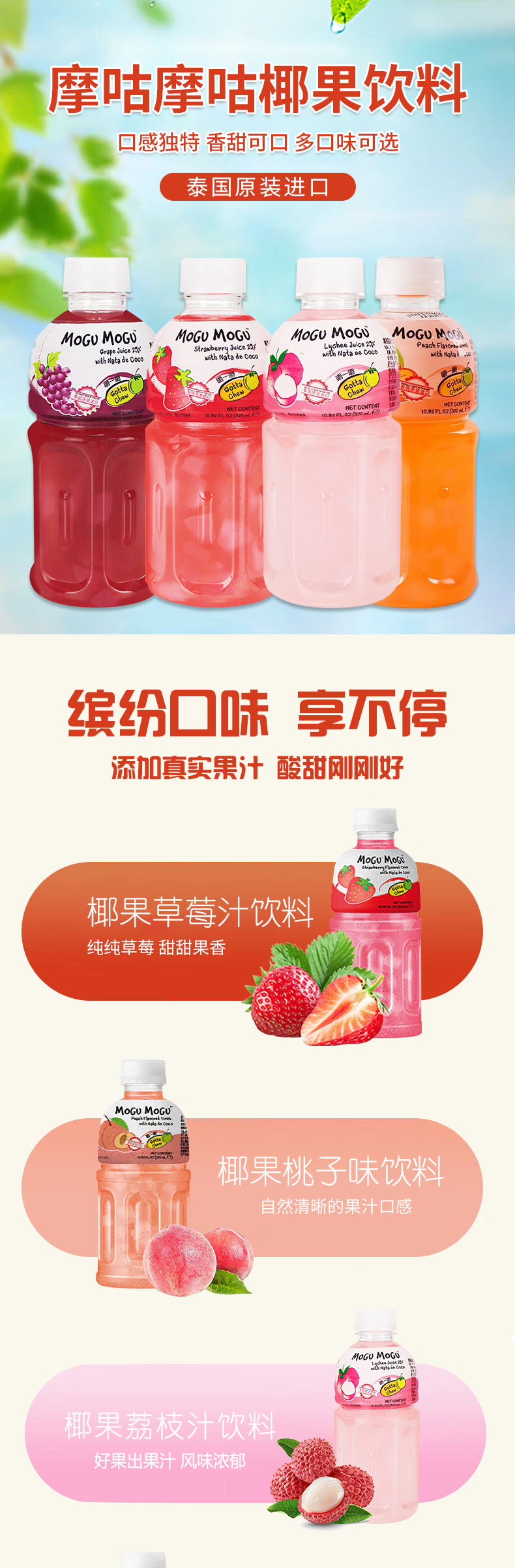 泰国进口摩咕摩咕椰果饮料(含椰果)320ml 【多口味】