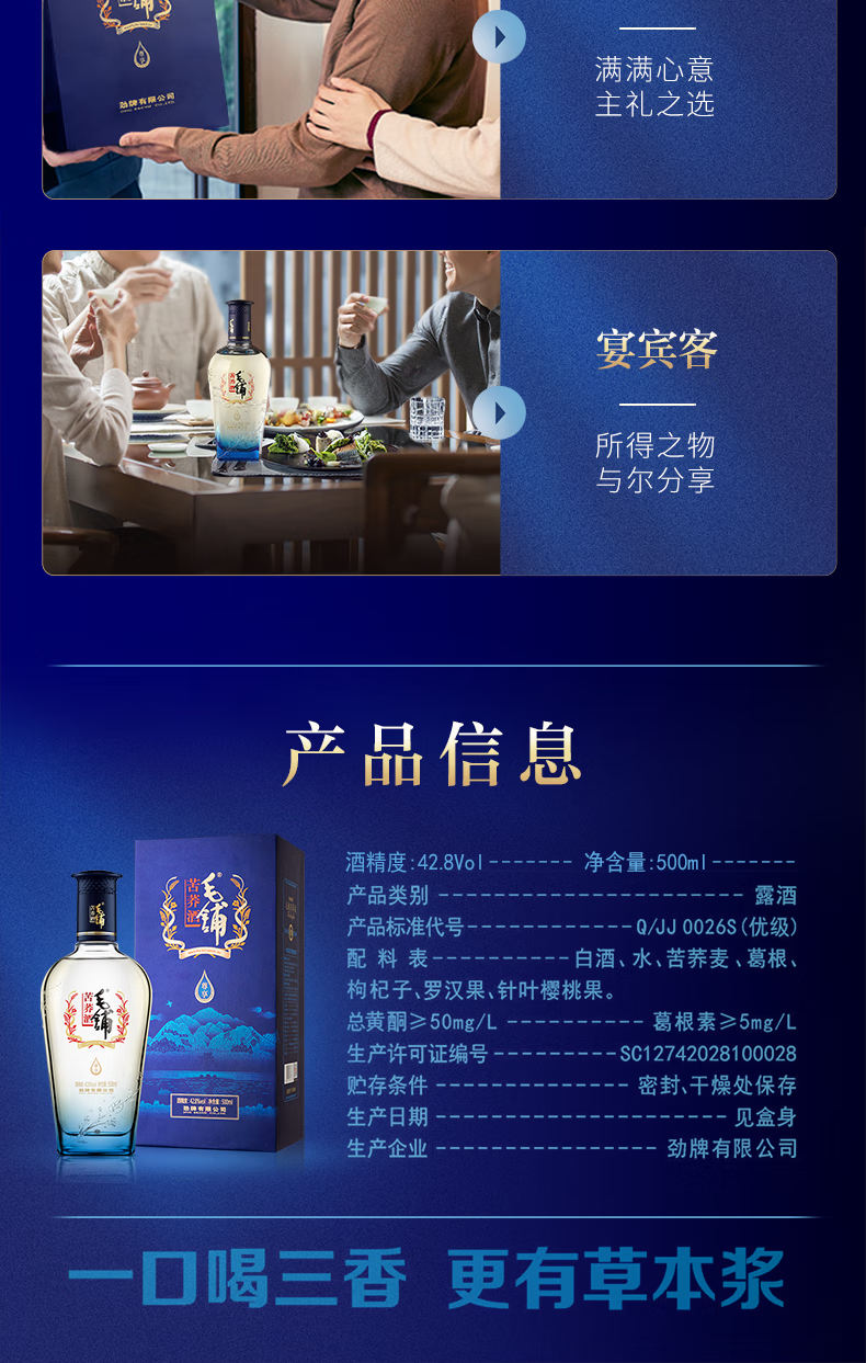 42.8°毛铺苦荞酒(尊享) 500ml(新老包装随机发)