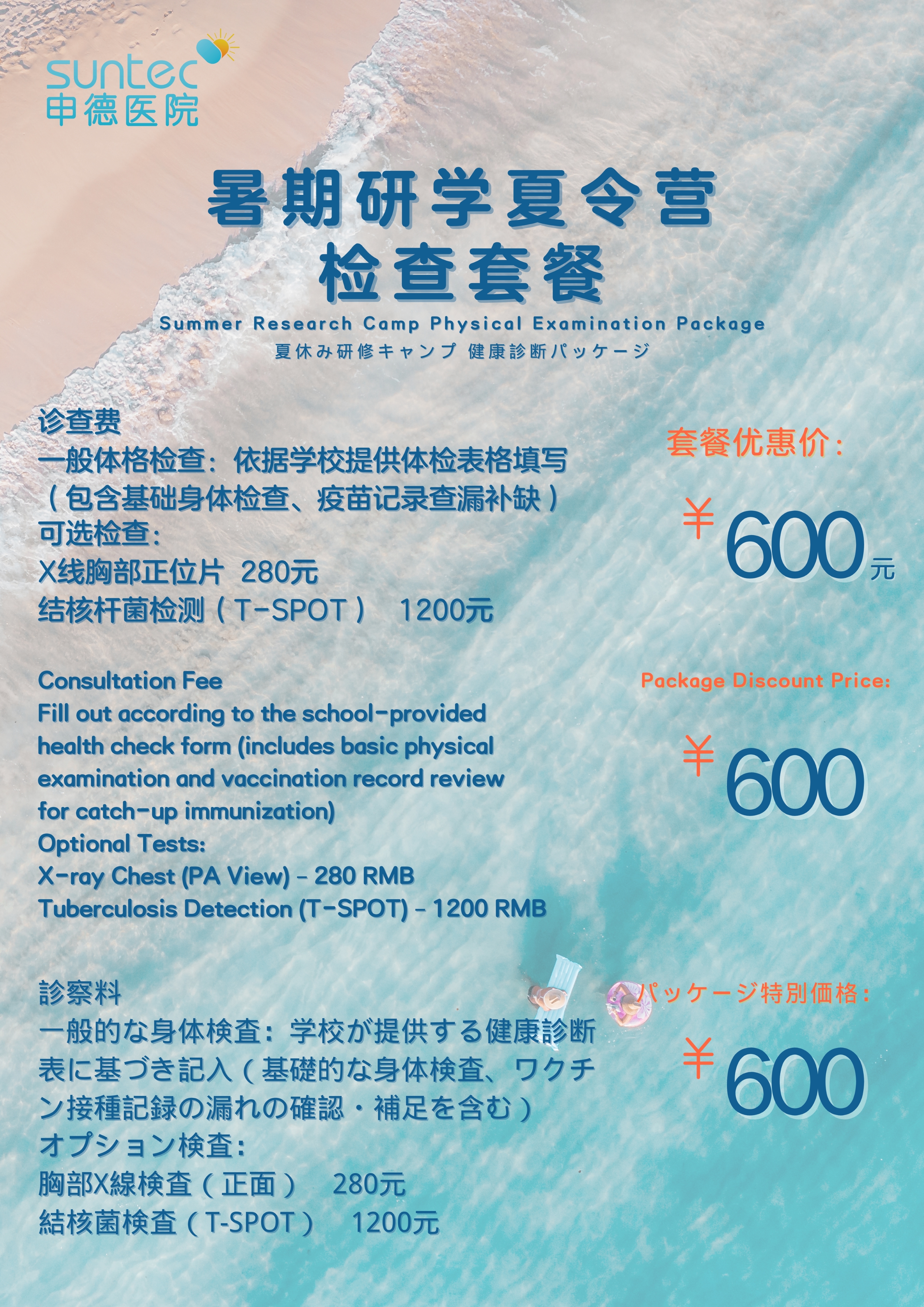 暑期研学夏令营检查套餐(可选结核杆菌检测 )