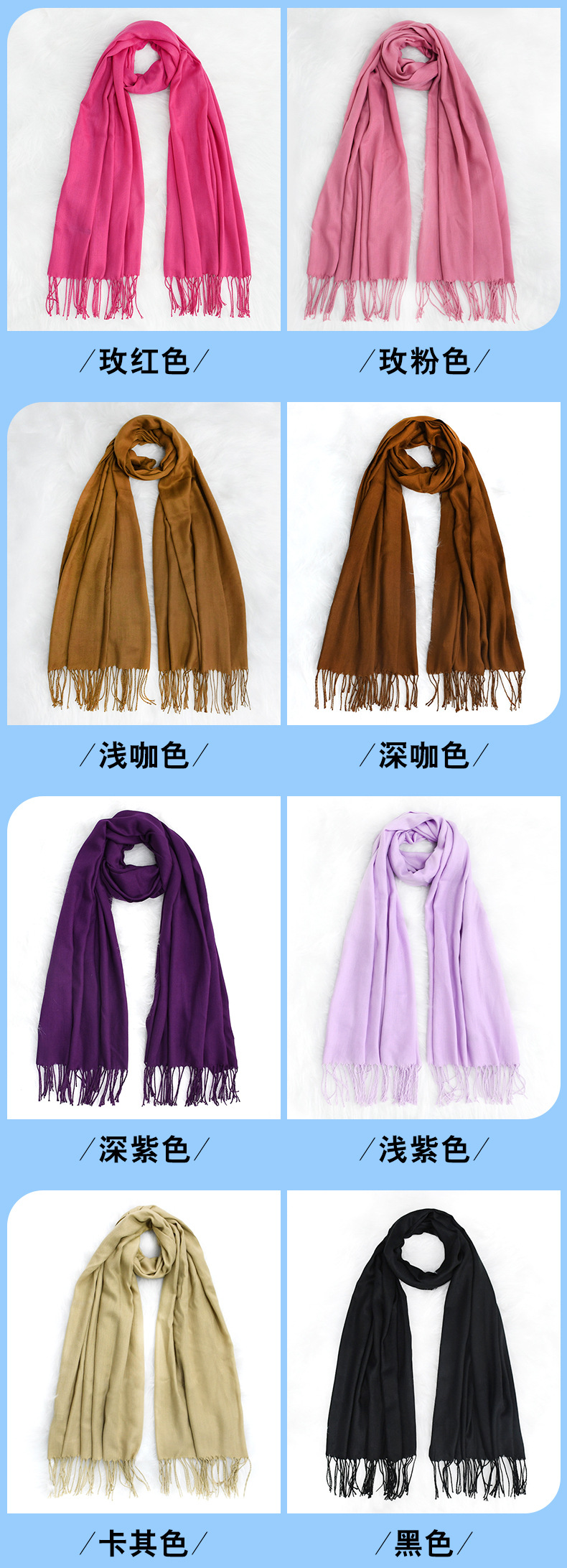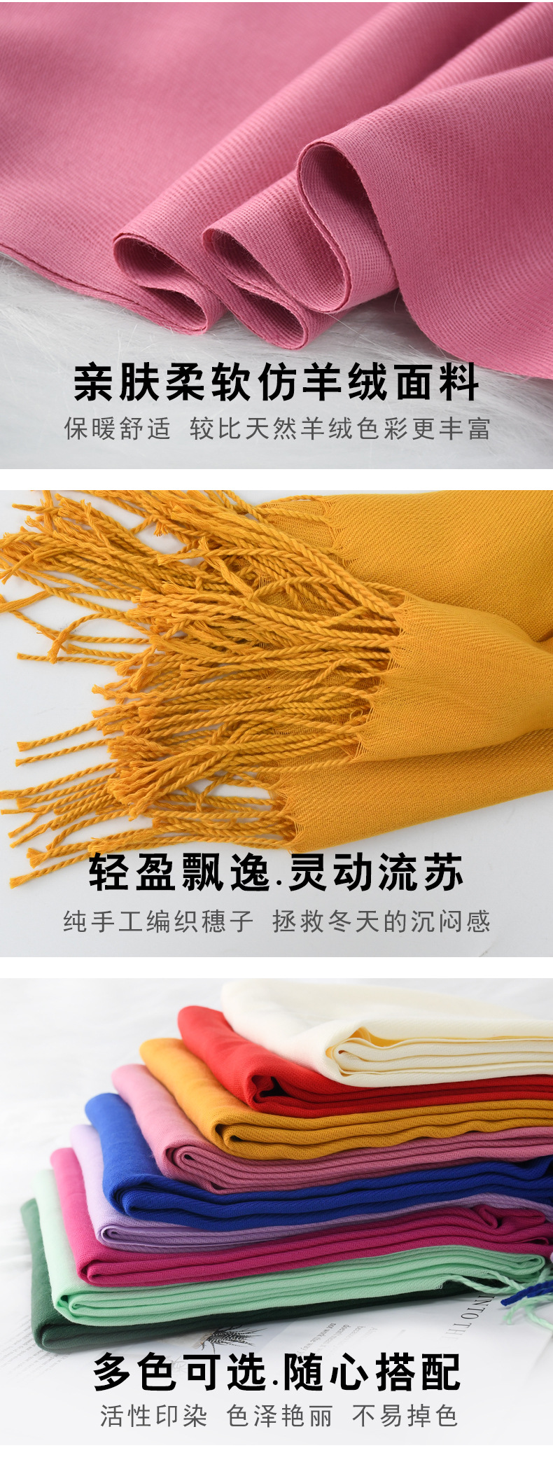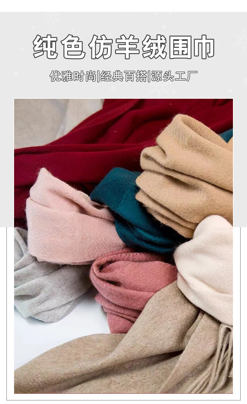 「数色可选!纯色围巾」秋冬纯色围巾女红色年会刺绣200g保暖披肩围脖配饰