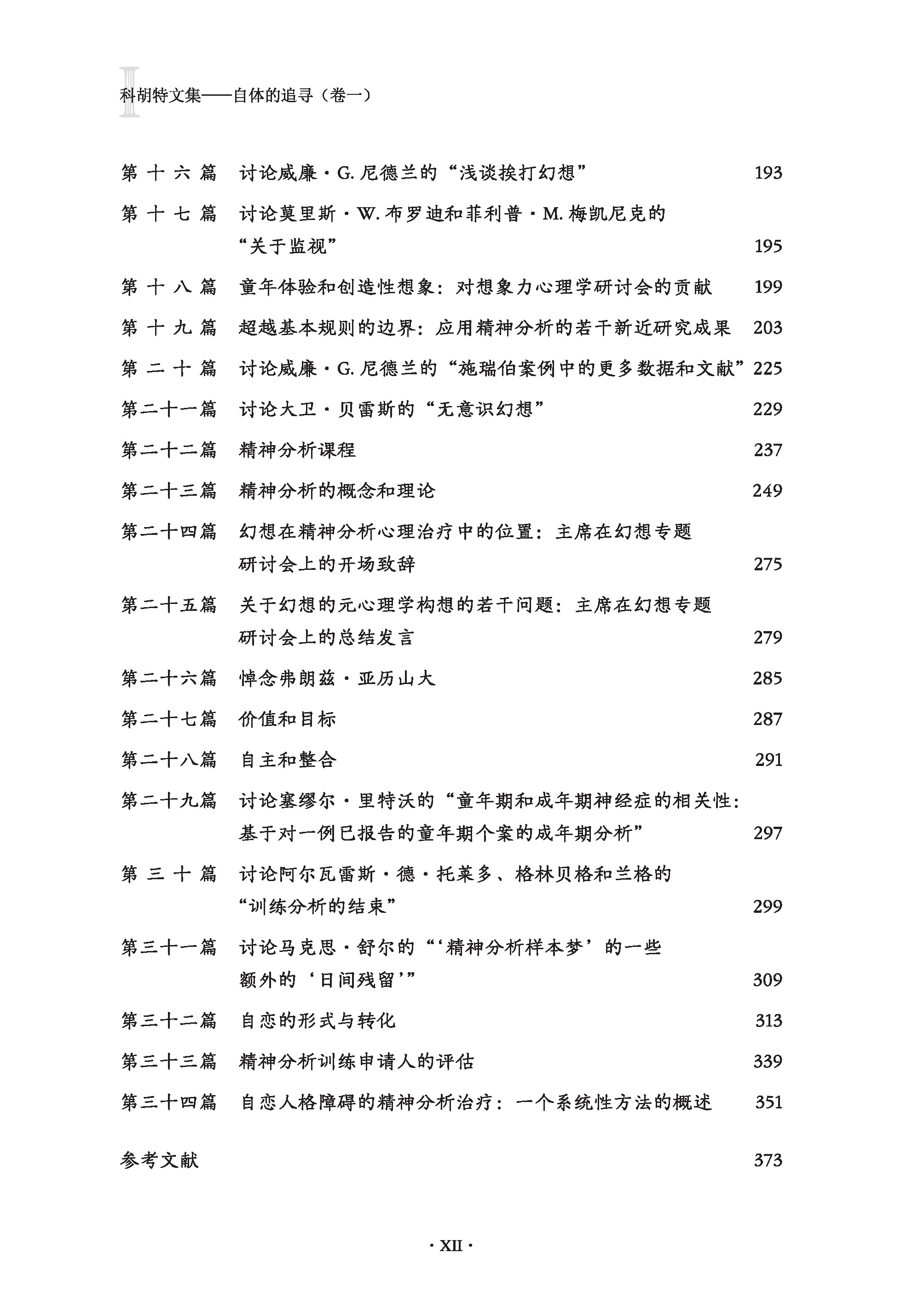 “这套文集的读者,会比在这些文章最初发表时阅读它们或在原初的背景下听到相关讨论的人有明显优势。拥有了按年代顺序汇编的完整作品集,读者能看出过去难以从孤立的‘片段’中看出的意义和关联。读者也能发现科胡特的思考模式和当前观点的雏形。”