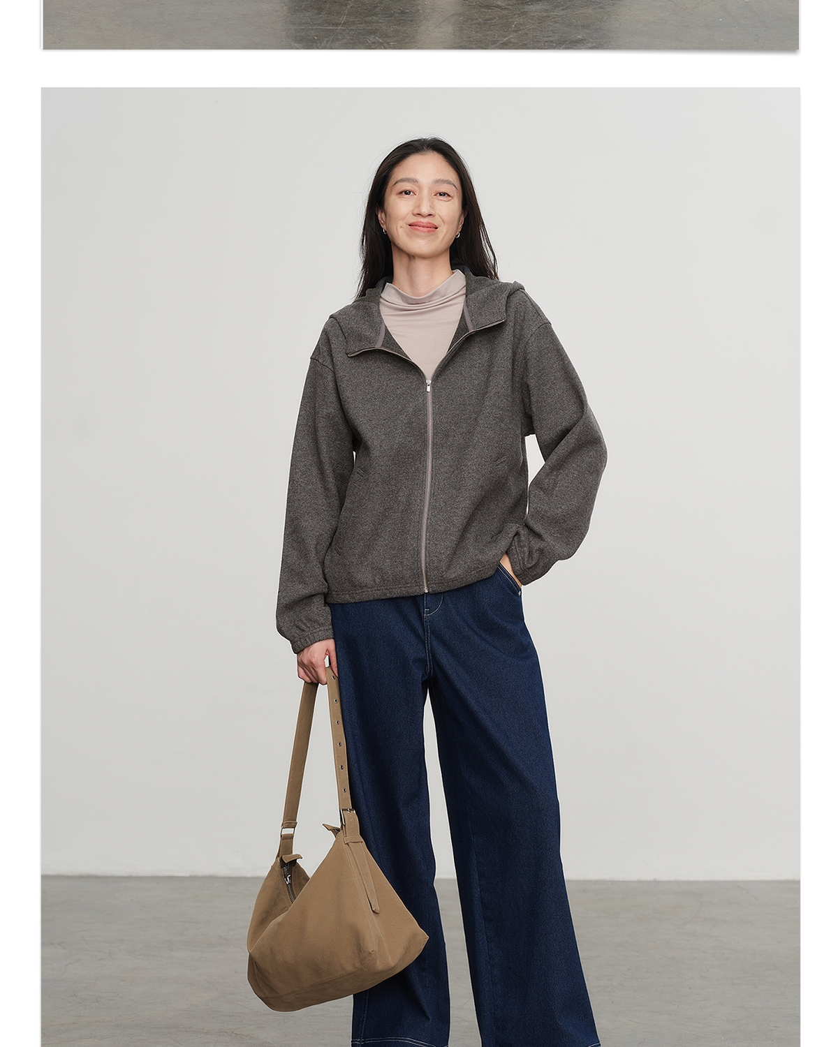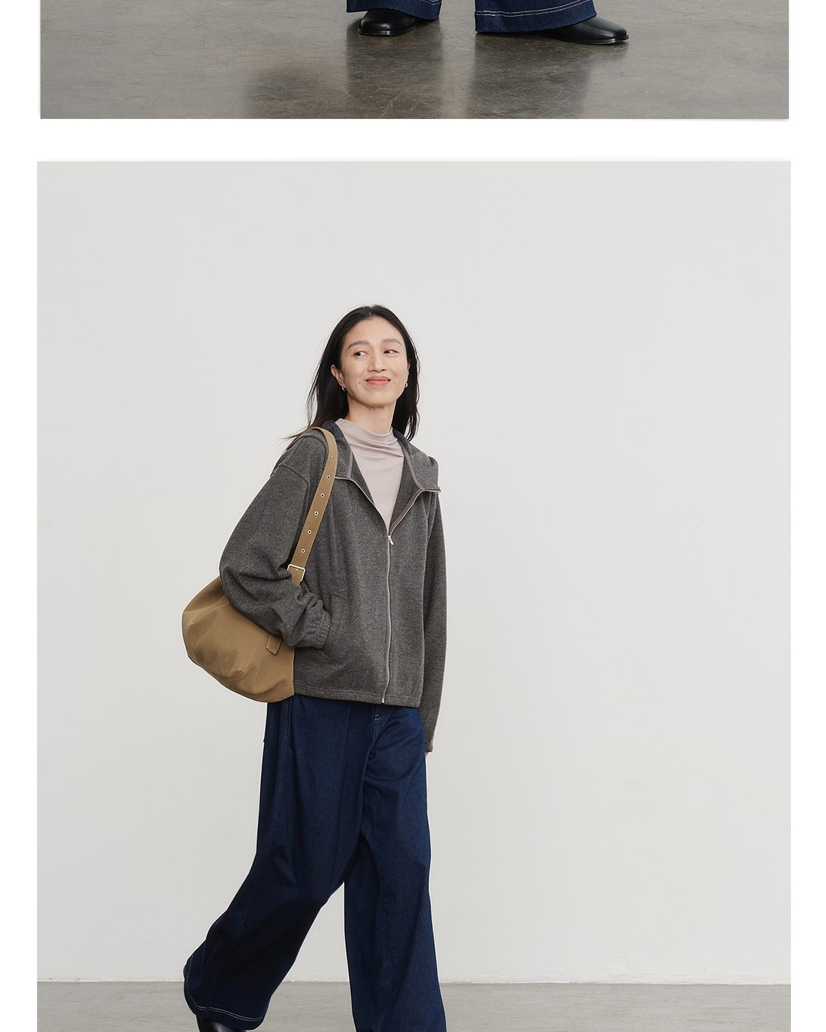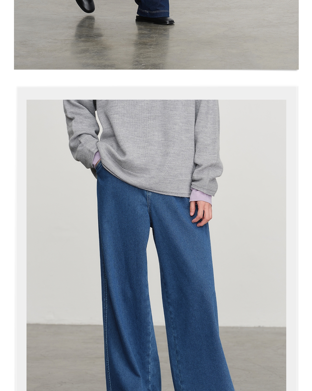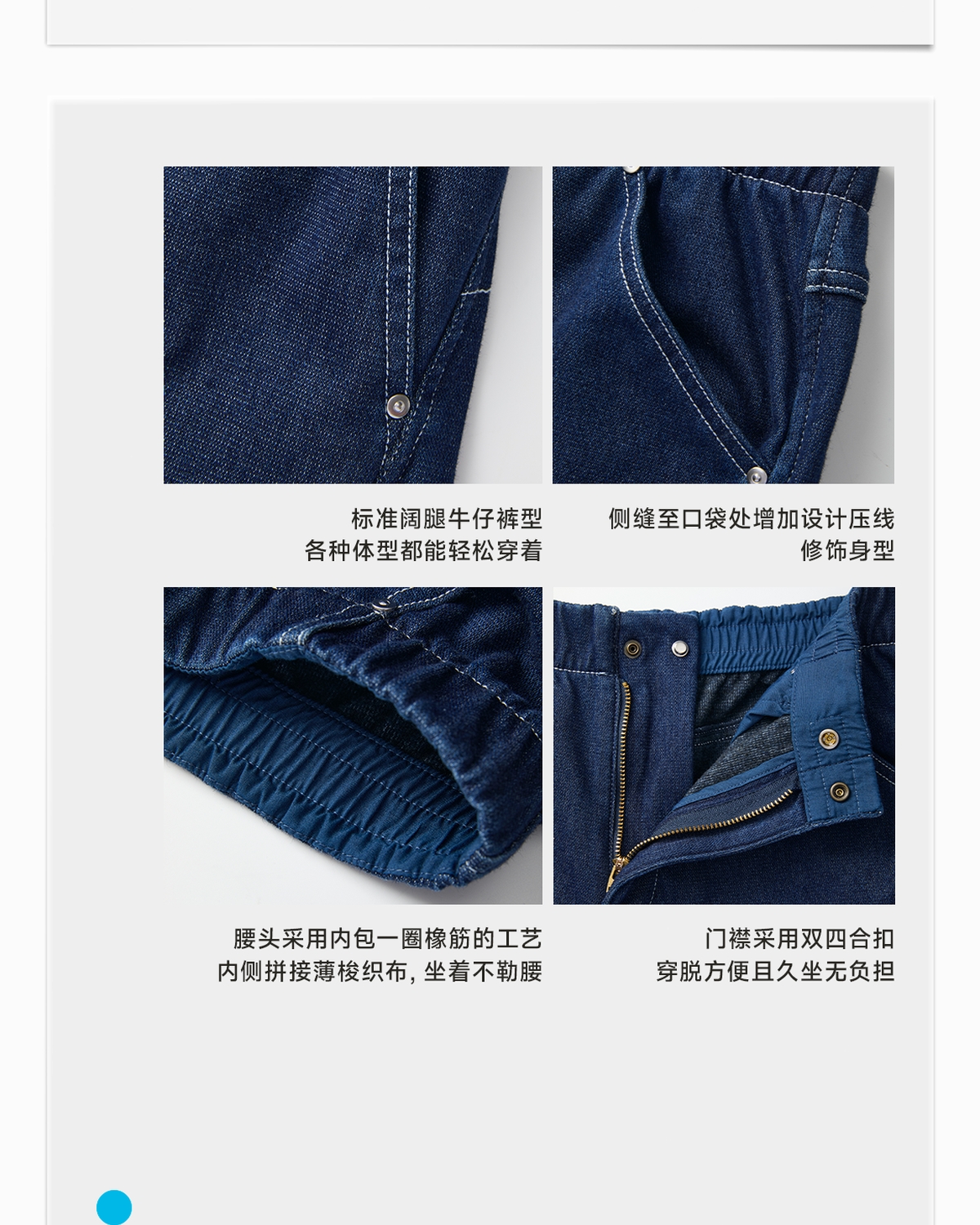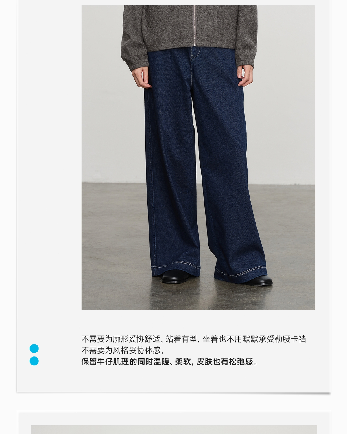 allblu幼岚女装舒服牛仔抓绒阔腿裤,柔软保暖,挺括有型 商品图2