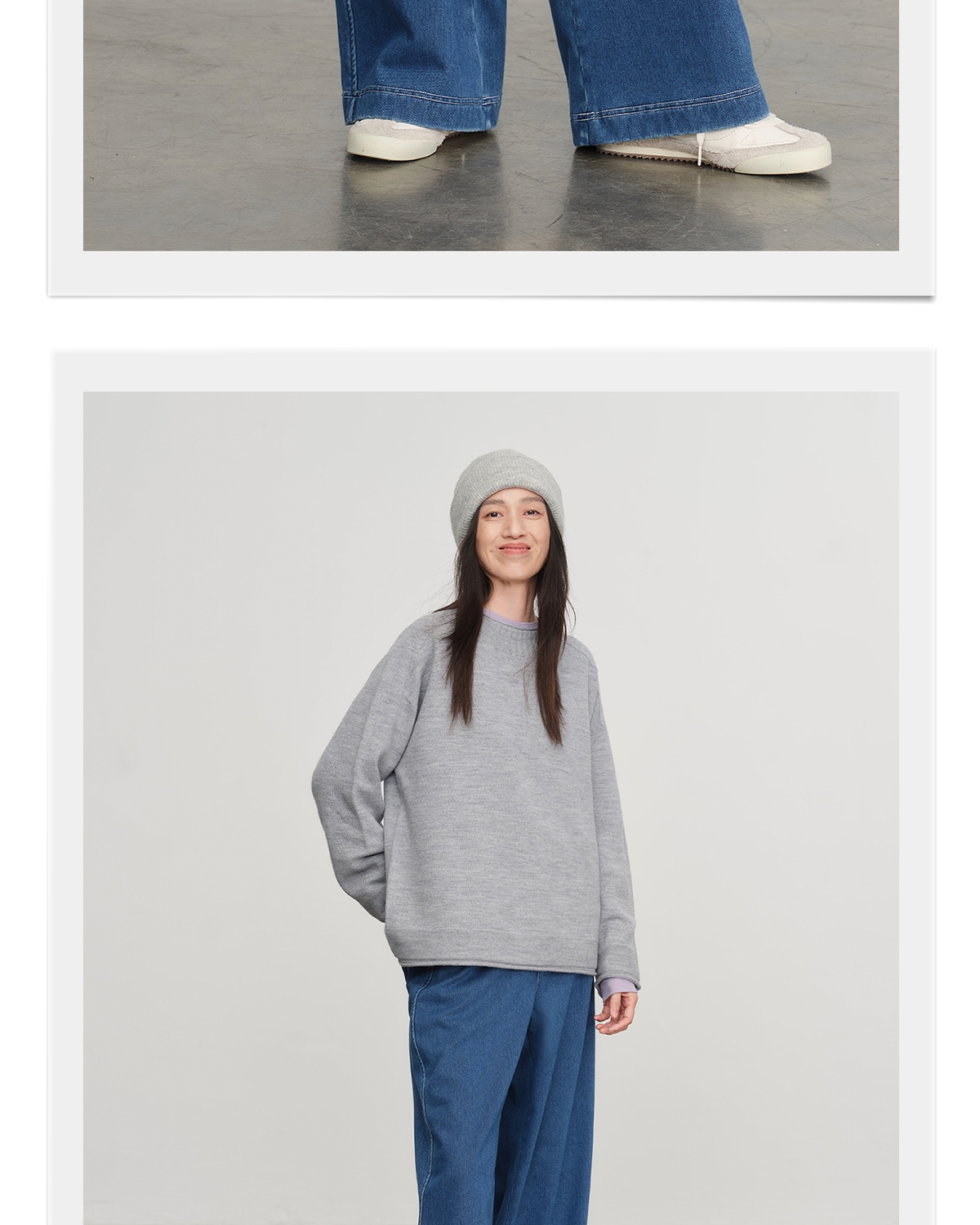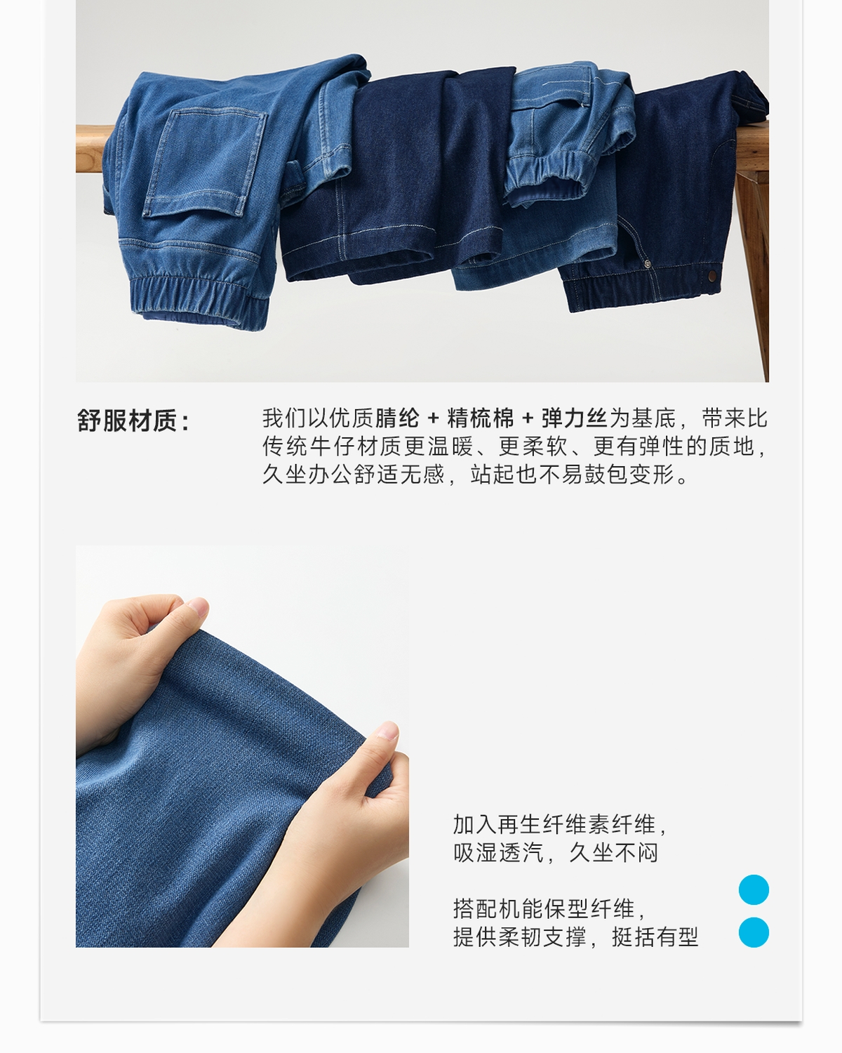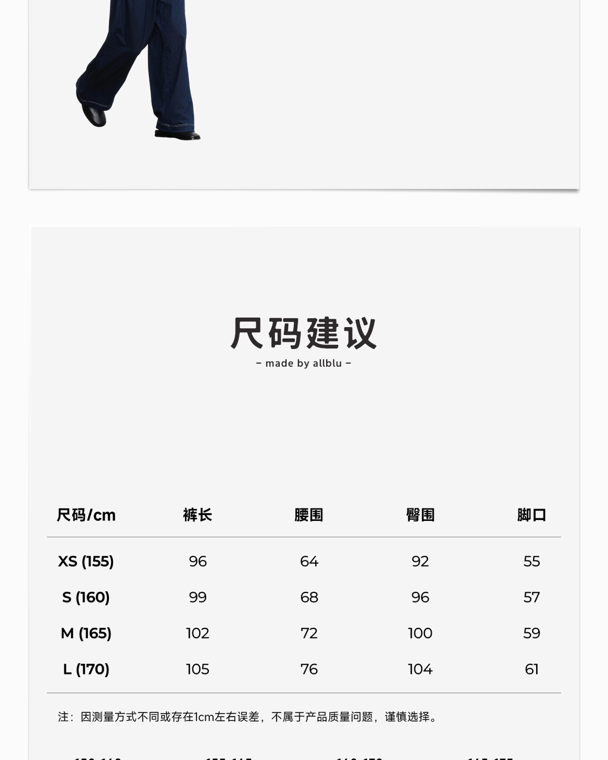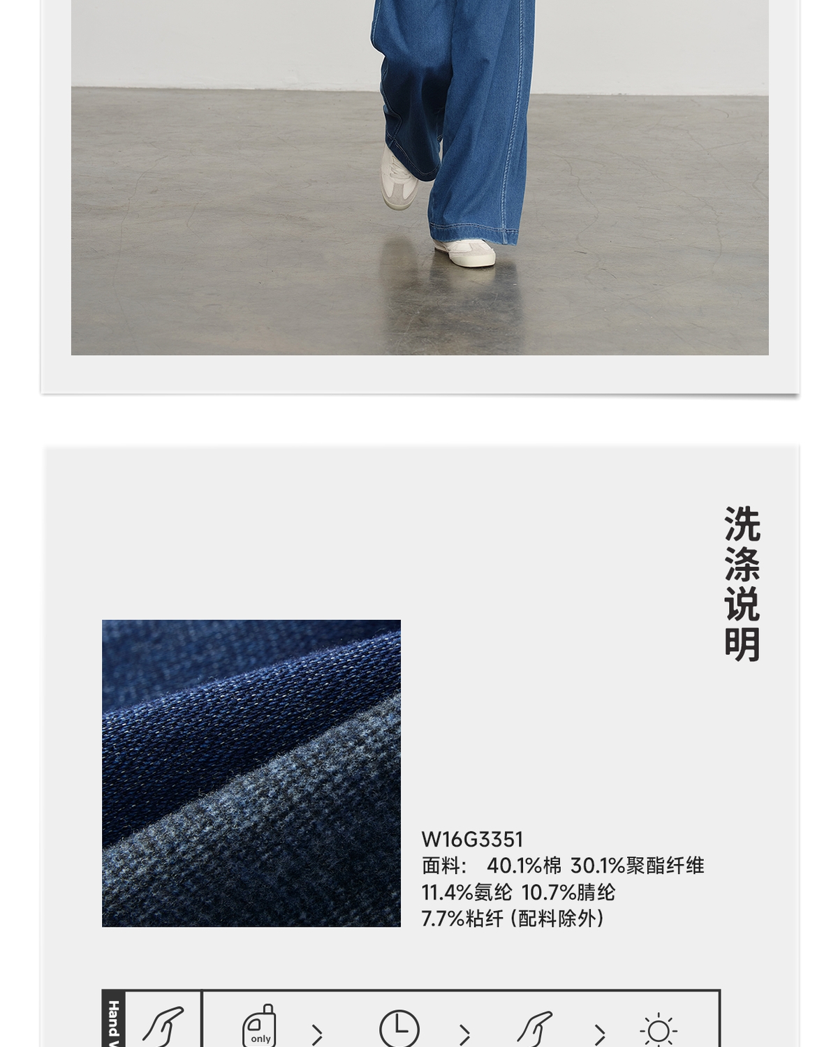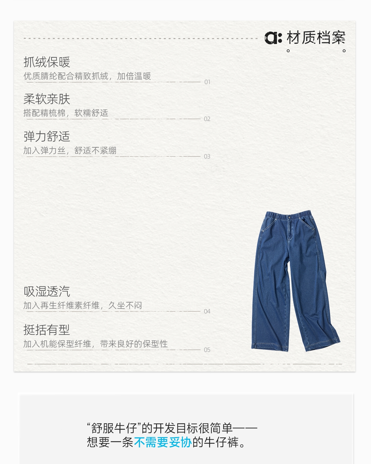allblu幼岚女装舒服牛仔抓绒阔腿裤,柔软保暖,挺括有型 商品图4