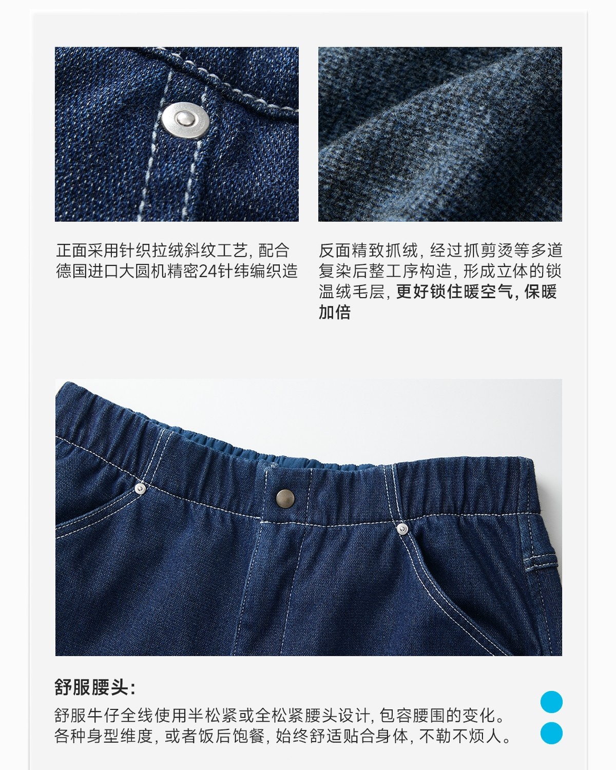 allblu幼岚女装舒服牛仔抓绒阔腿裤,柔软保暖,挺括有型 商品图3