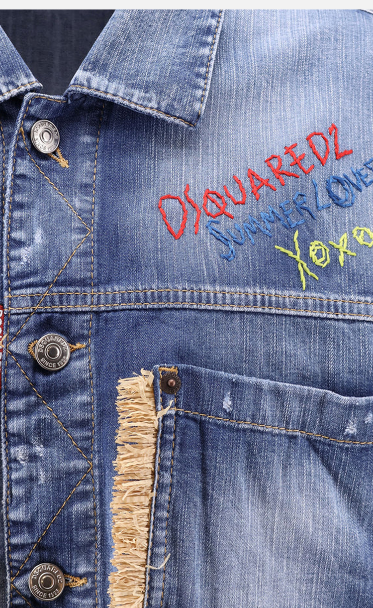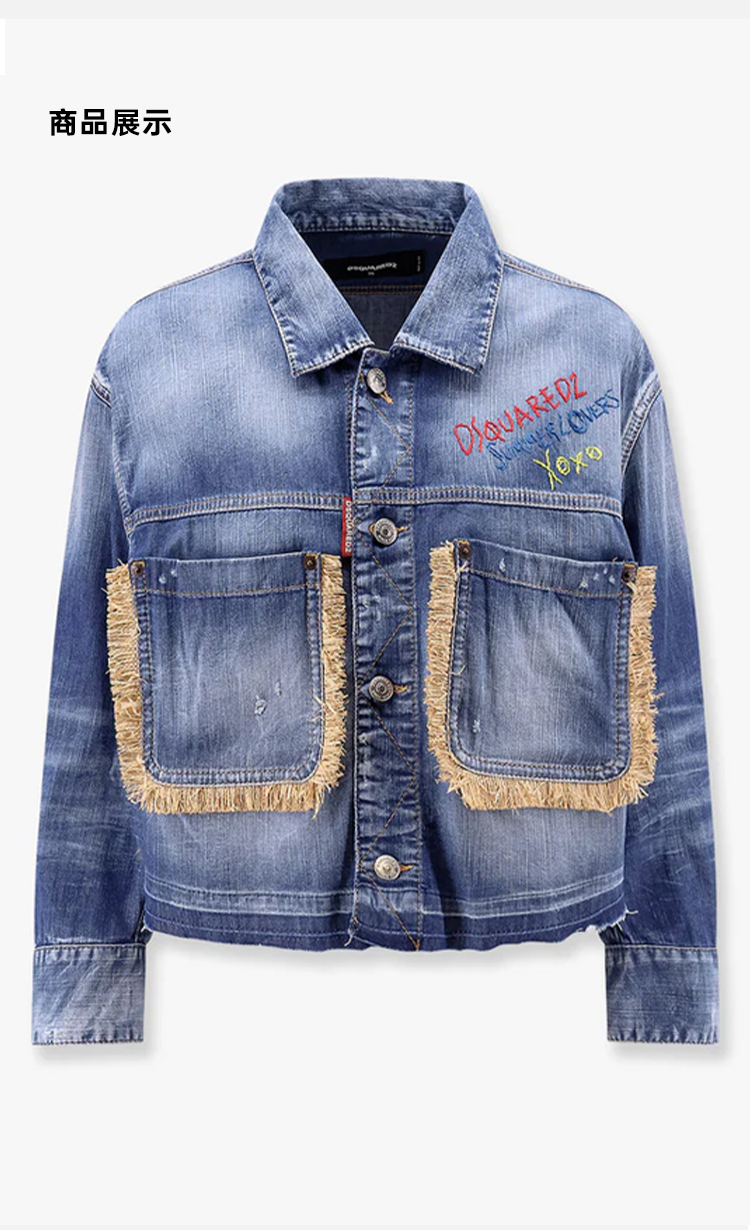 DSQUARED2 女士拉菲草轮廓字母徽标刺绣牛仔夹克外套 浅蓝色 S73AM0358 S30341 470