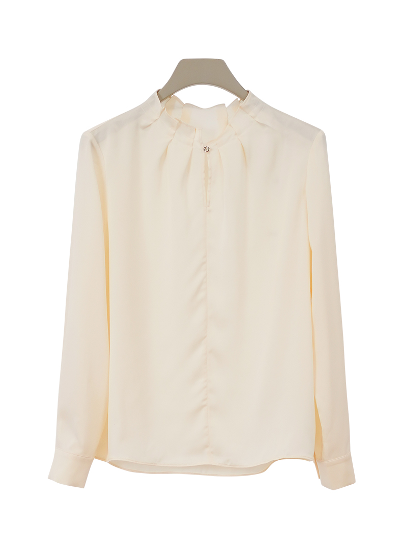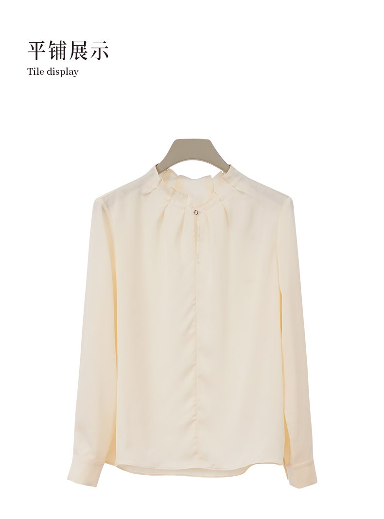 oldcolour欧珂2024春季时尚纯色荷叶领长袖衬衫女Q110110A1