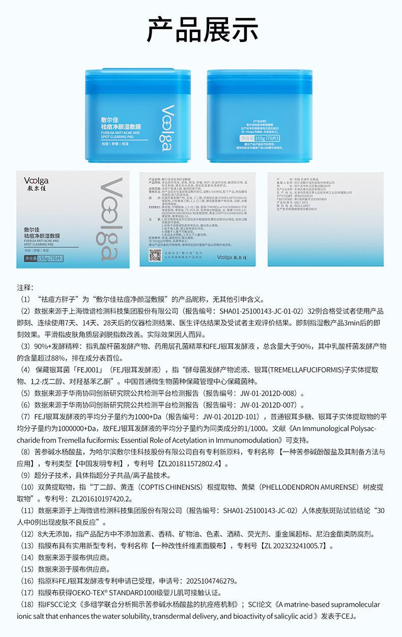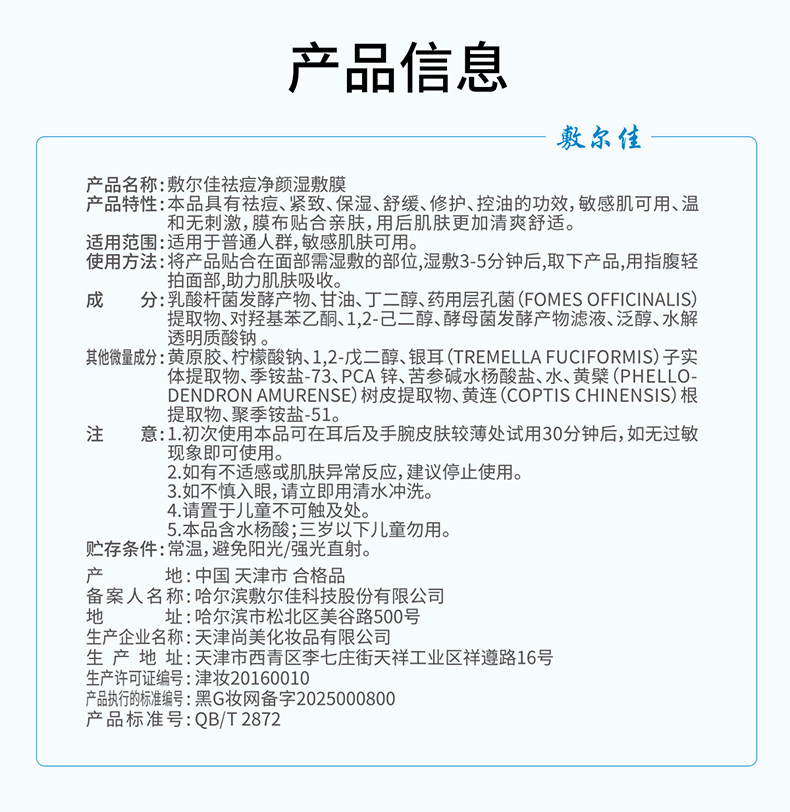 敷尔佳祛痘净颜湿敷膜 70片/盒 分区净痘 3min速修红