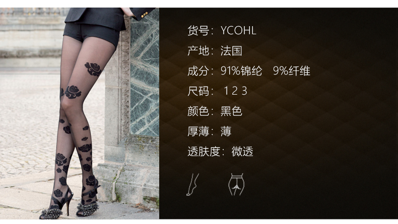 Gerbe格伯 100%法国原装进口女士连裤袜 时尚欧美花朵女丝袜YCOHL