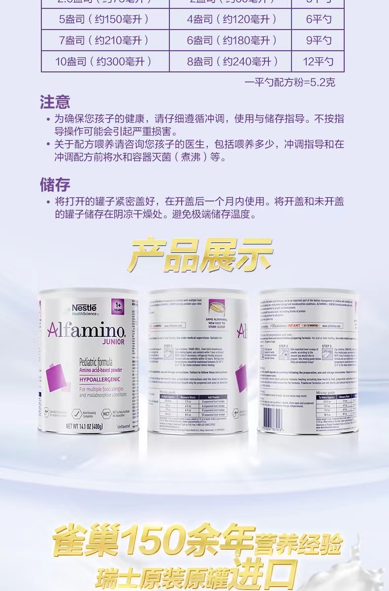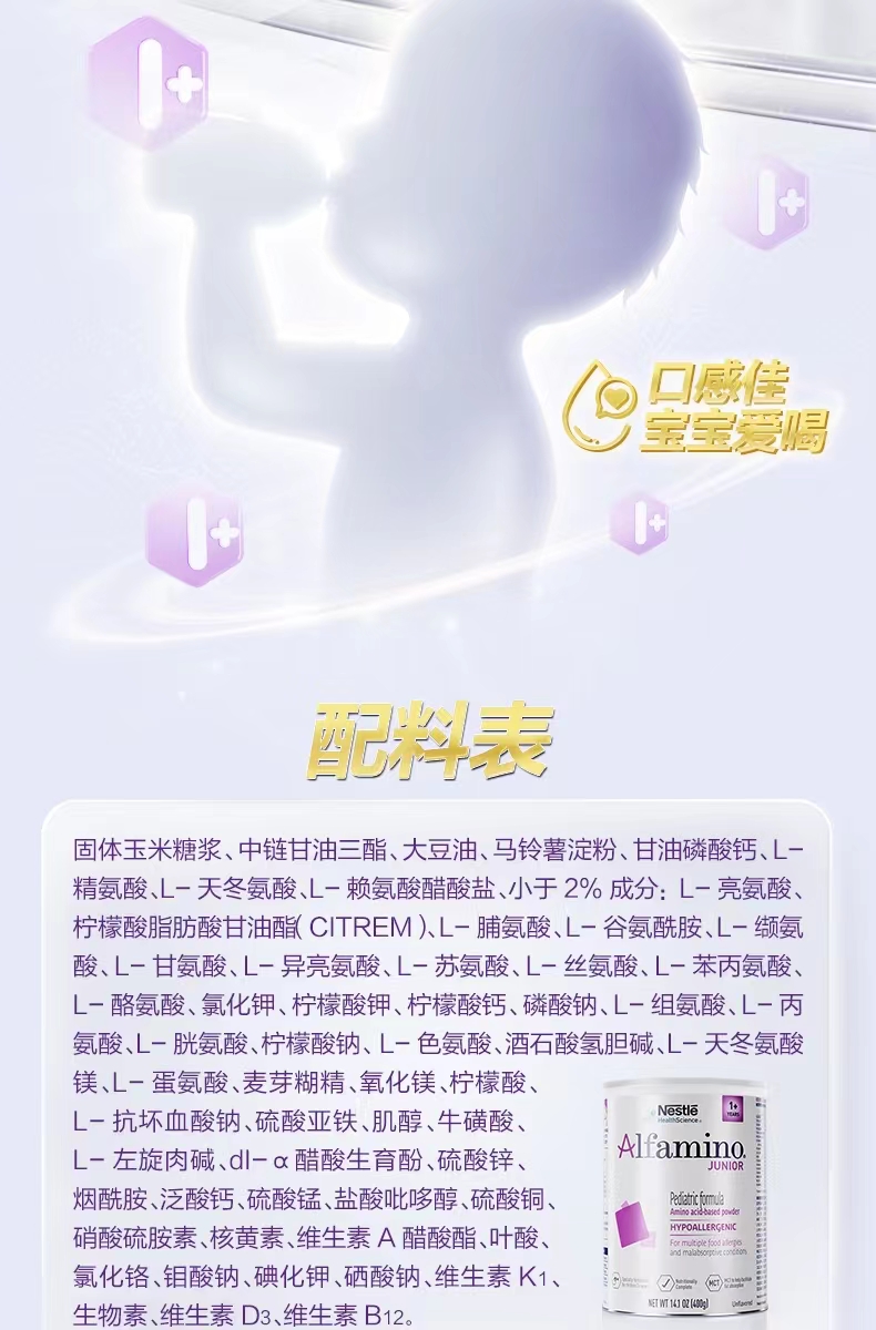 瑞士雀巢健康科学恩敏舒1+ 400g一岁以上氨基酸配方
