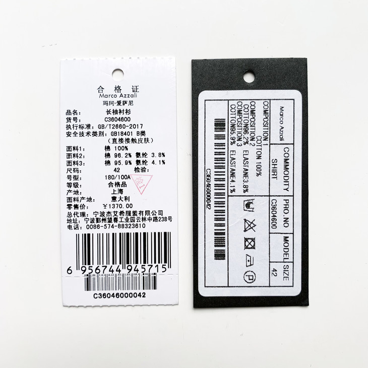 Marco Azzali 浅蓝三色拼接长袖衬衫 C3604600