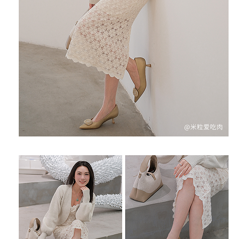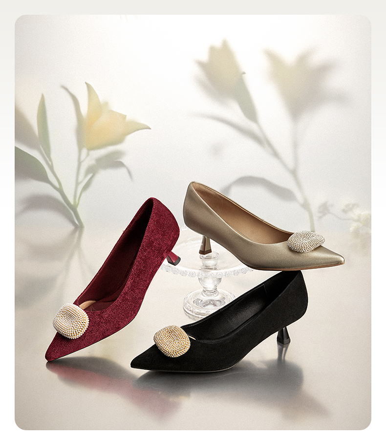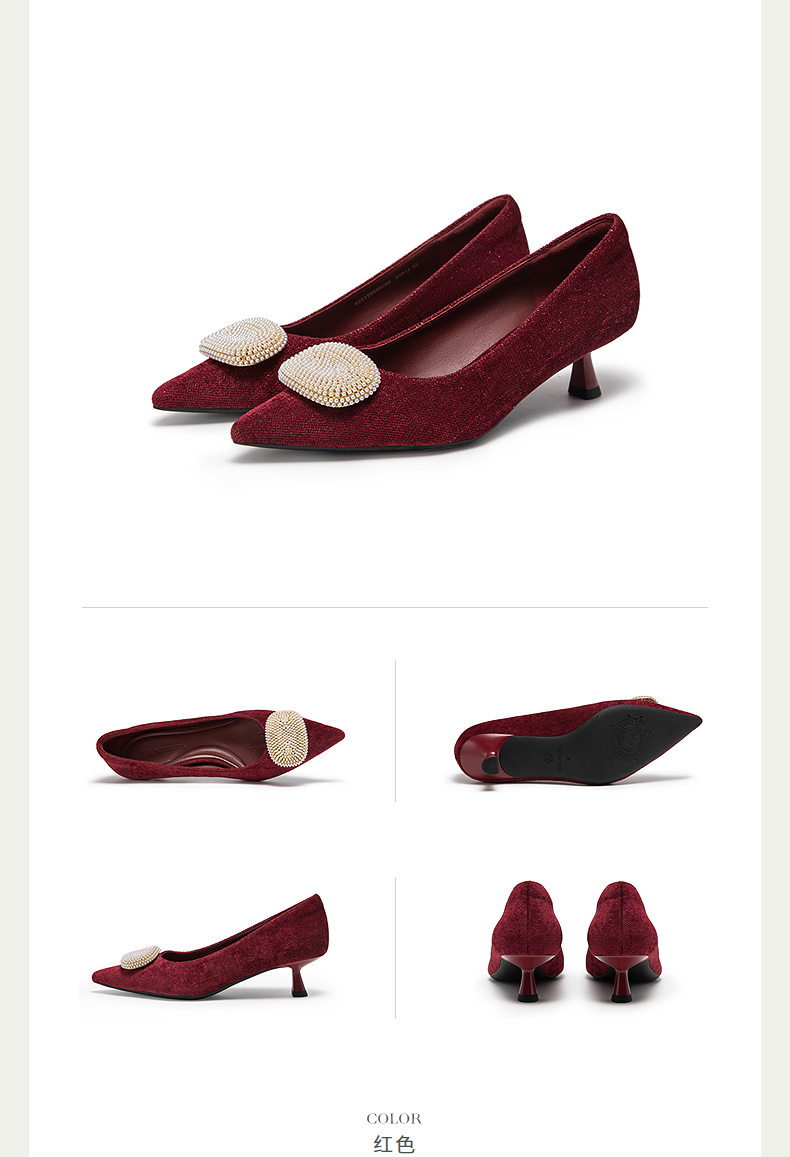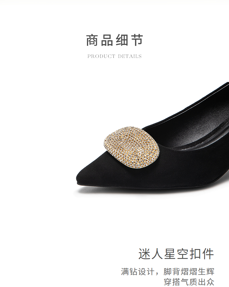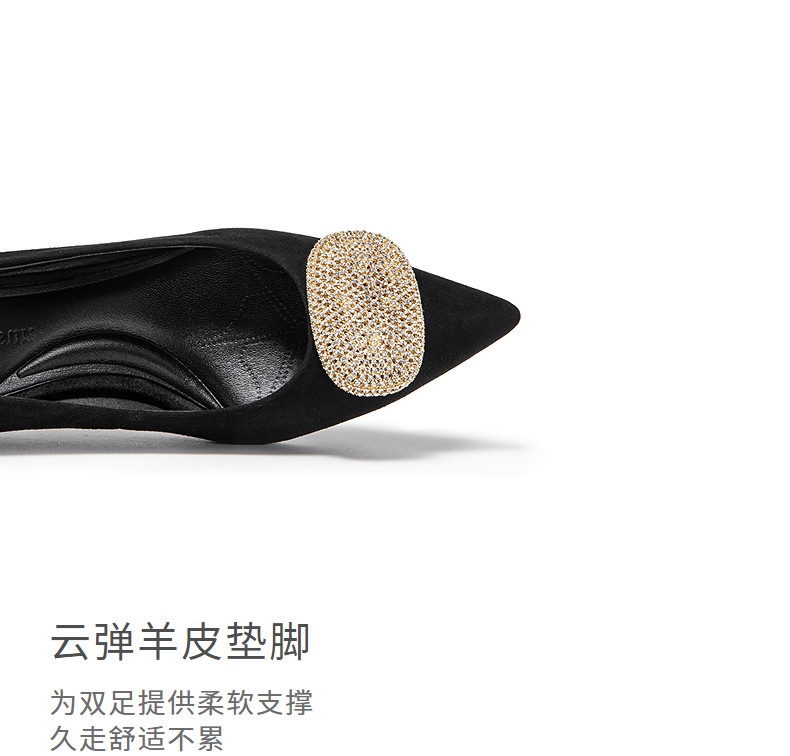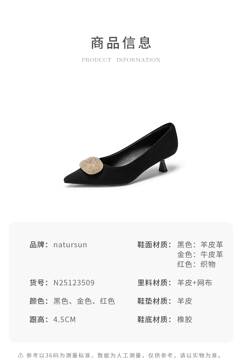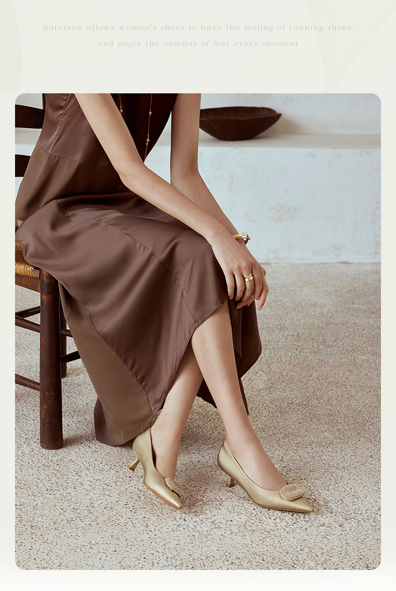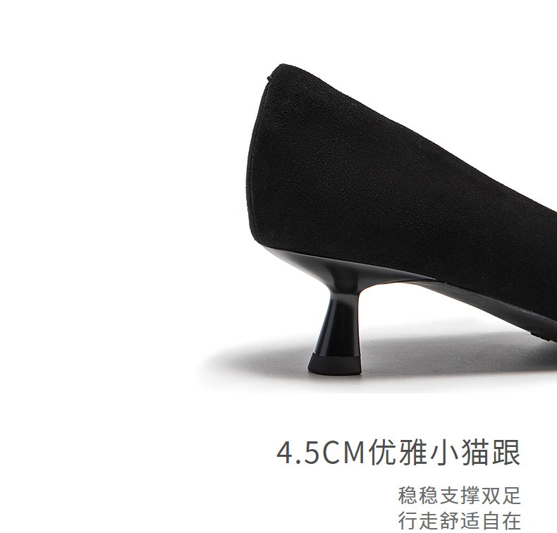 natursun小猫跟高跟鞋绒面尖头鞋超软羊皮不累脚单鞋N25123509