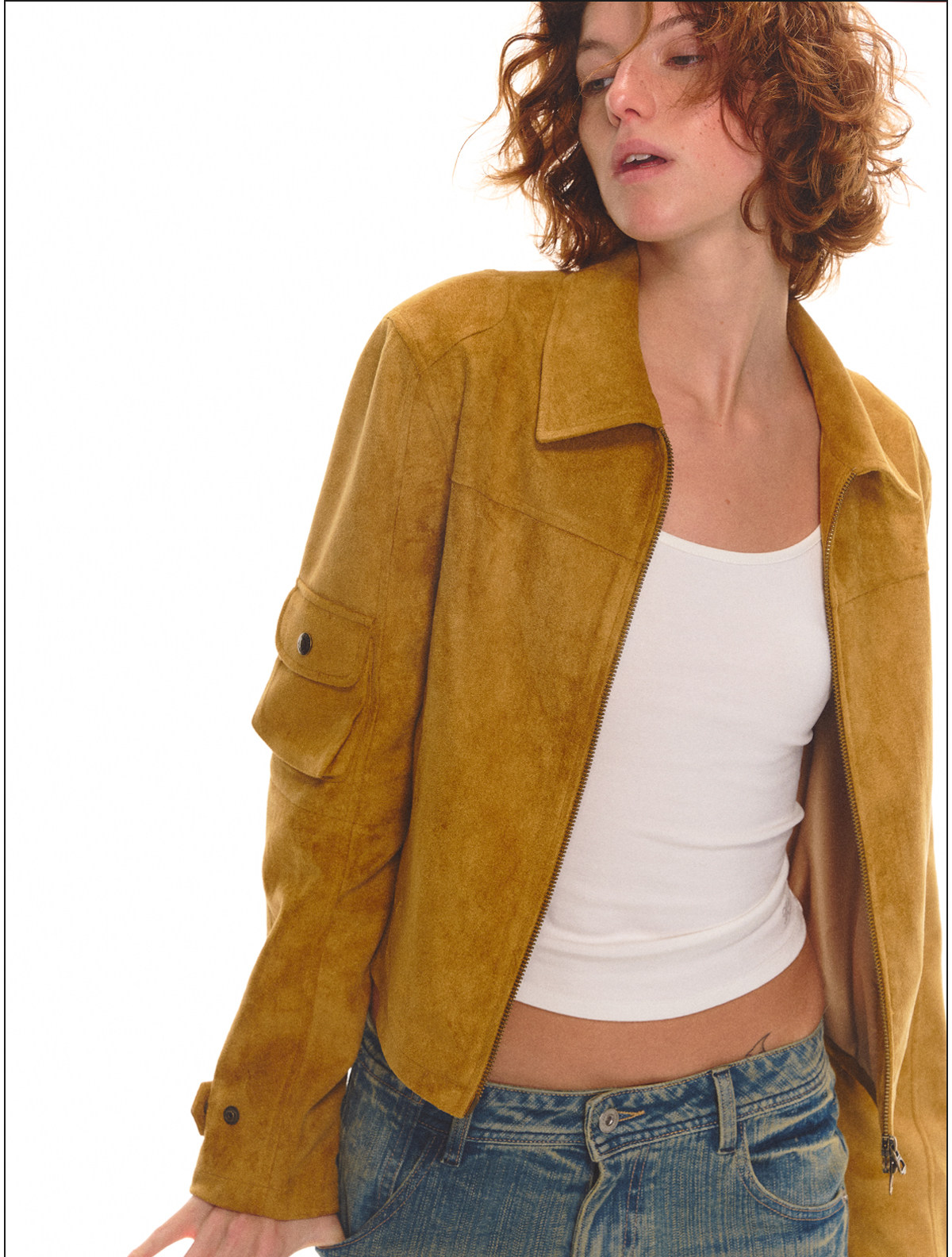 Evistub girls/E-6CWT1915/复古麂皮美式正肩短夹克