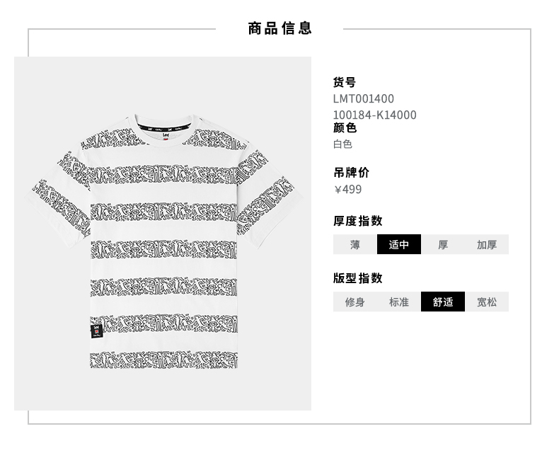 【Keith Haring联名】Lee21秋新品舒适多色男短袖T恤潮LMT001400100184A00232/K14000