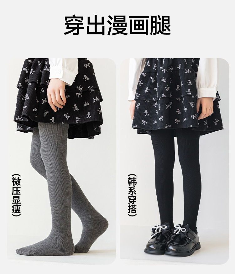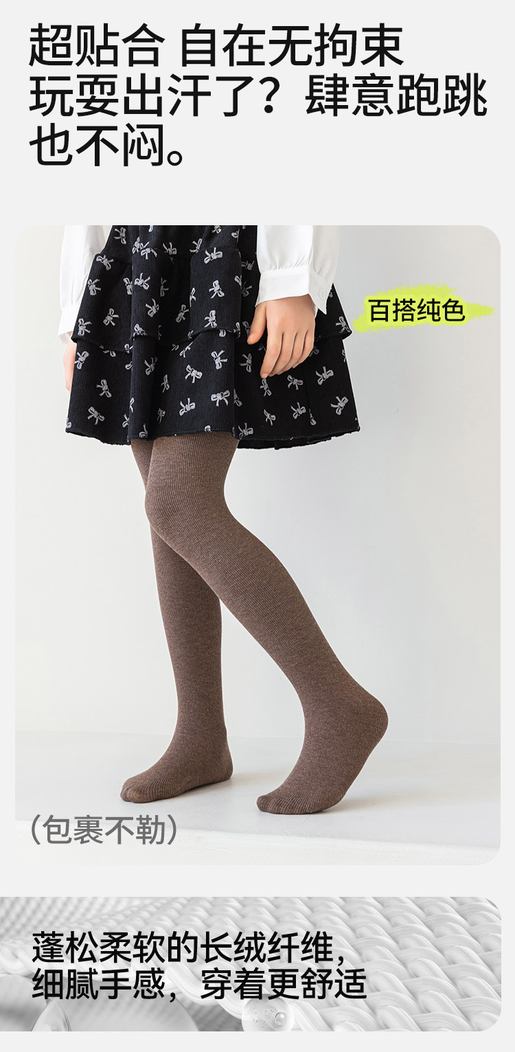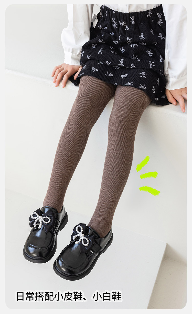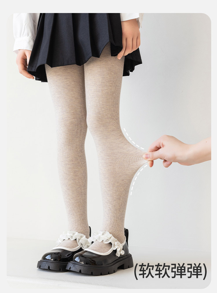 【精梳棉面料,云朵绒绒触感~】女童打底裤 2025秋季新款 素色抽条纯色 女童连裤袜 儿童舞蹈裤-QB