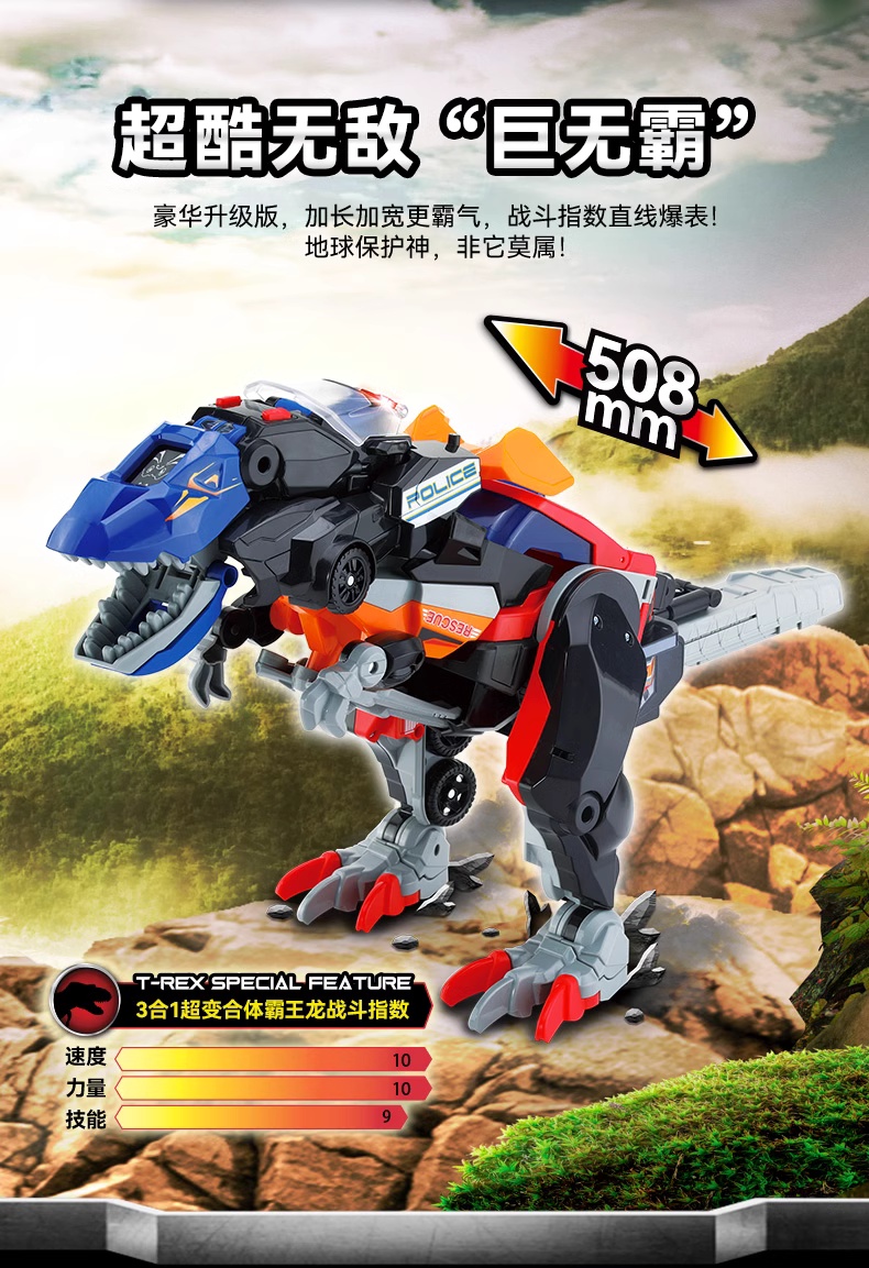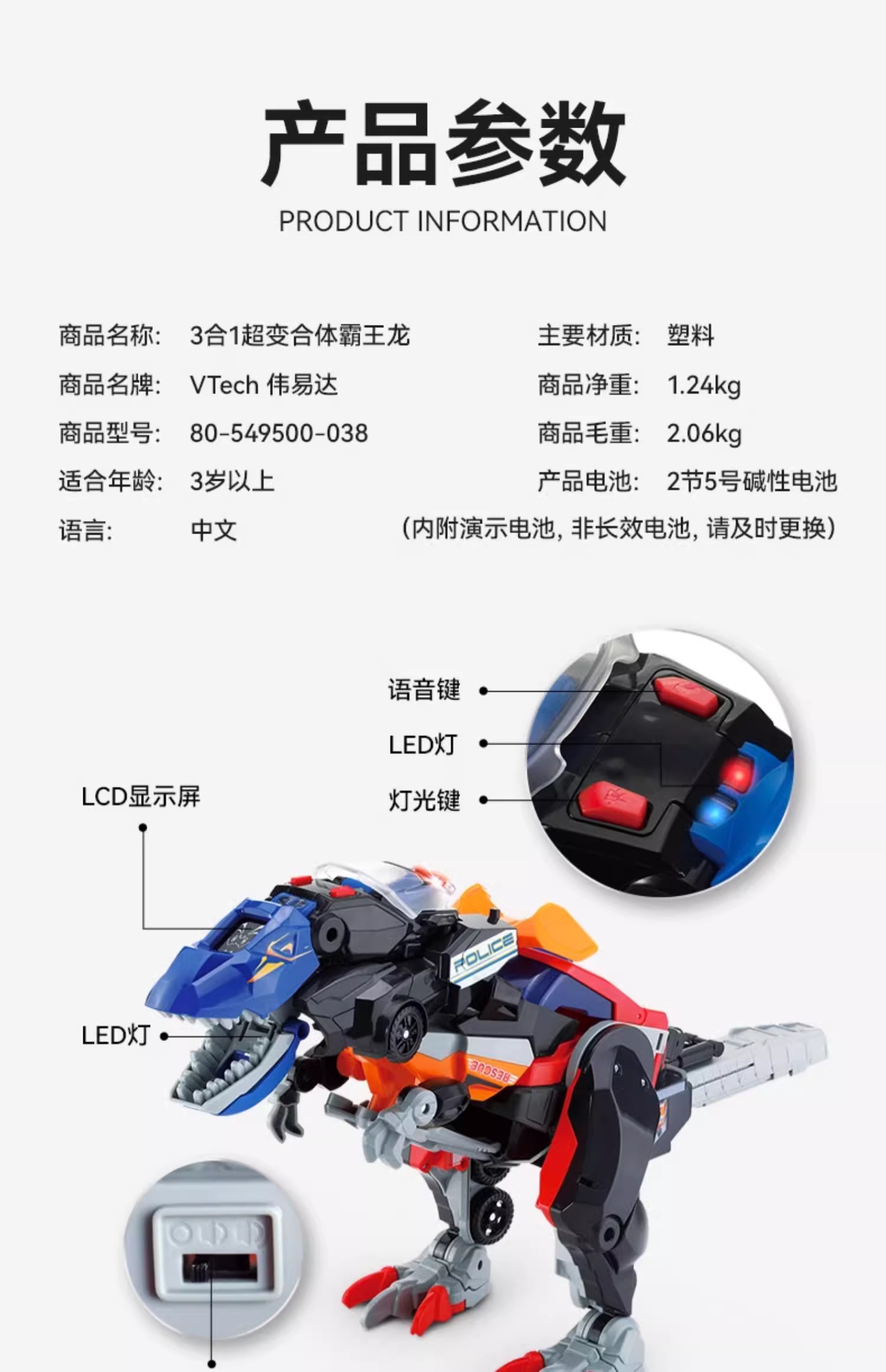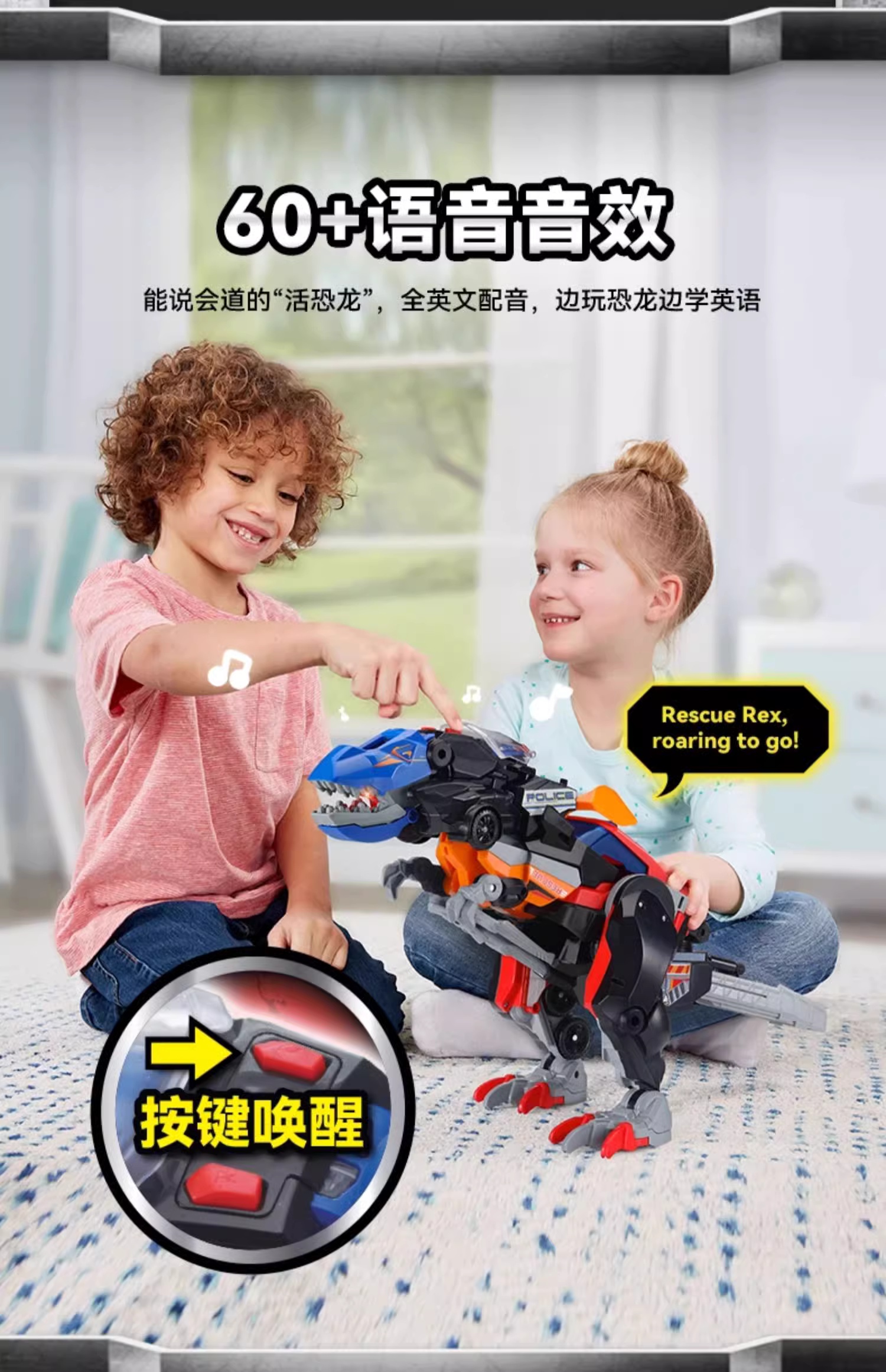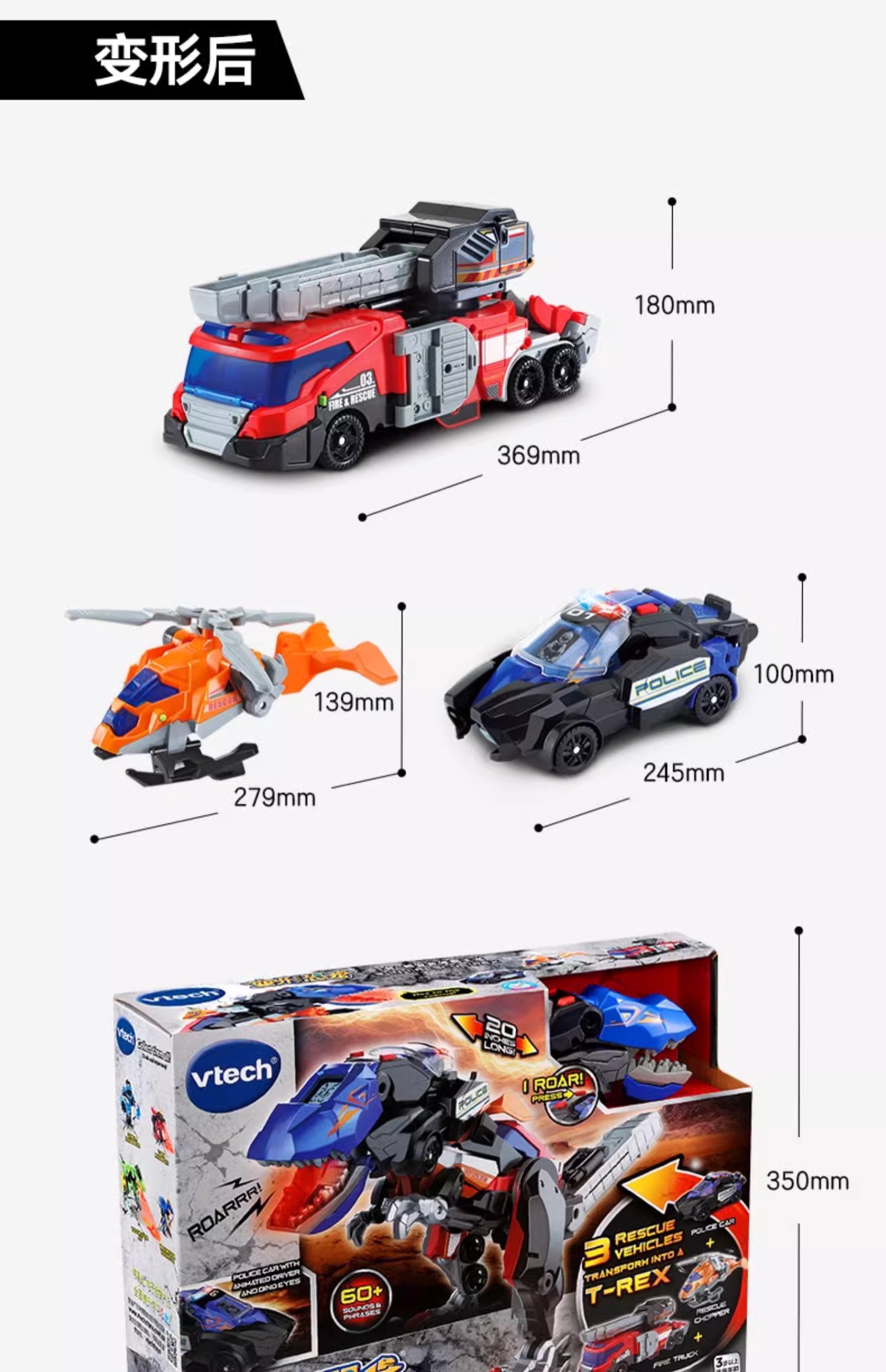 VTech伟易达 | 变形恐龙3合1超变合体霸王龙消防警车直升机男孩童送礼套装 | 3-7岁