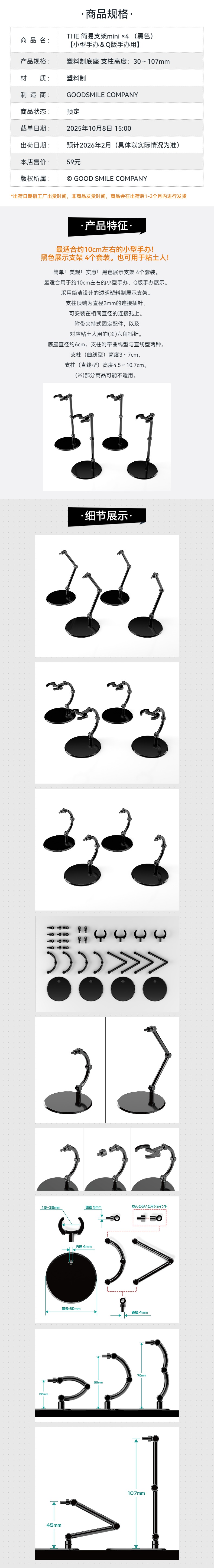 【GSC现货】THE 简易支架mini ×4 (黑色)【小型手办&Q版手办用】